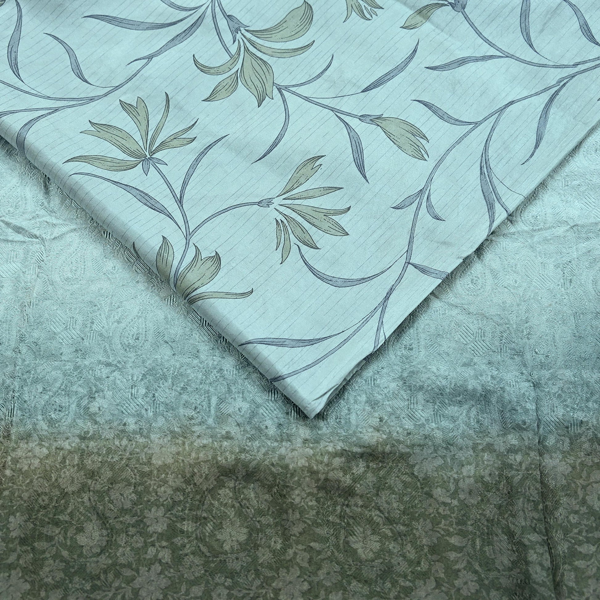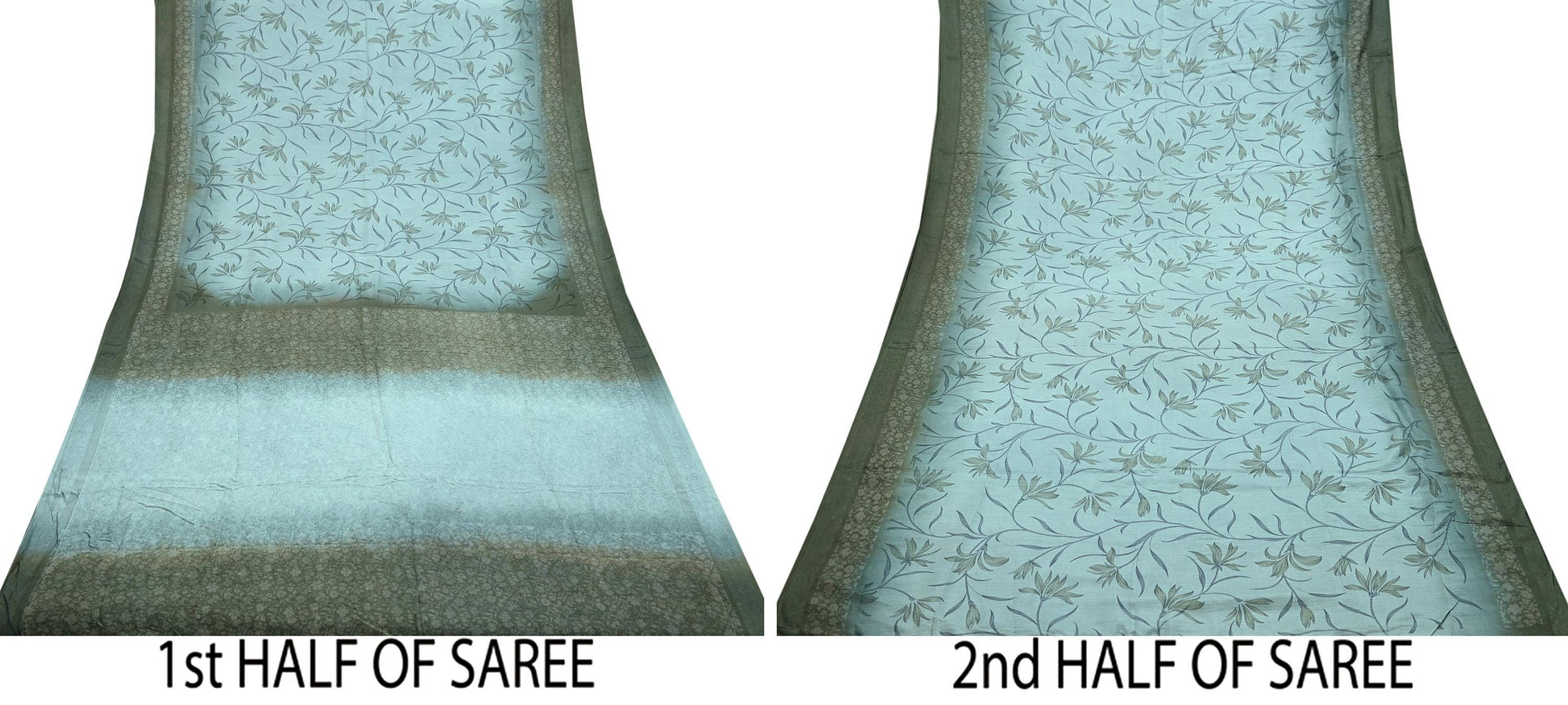 Indian Vintage Sari Green & Gray Pure Silk Woven Printed Sarees Craft Fabric 5yd Sewing Dress Making Floral Crafting Quilting Upcycle Used
