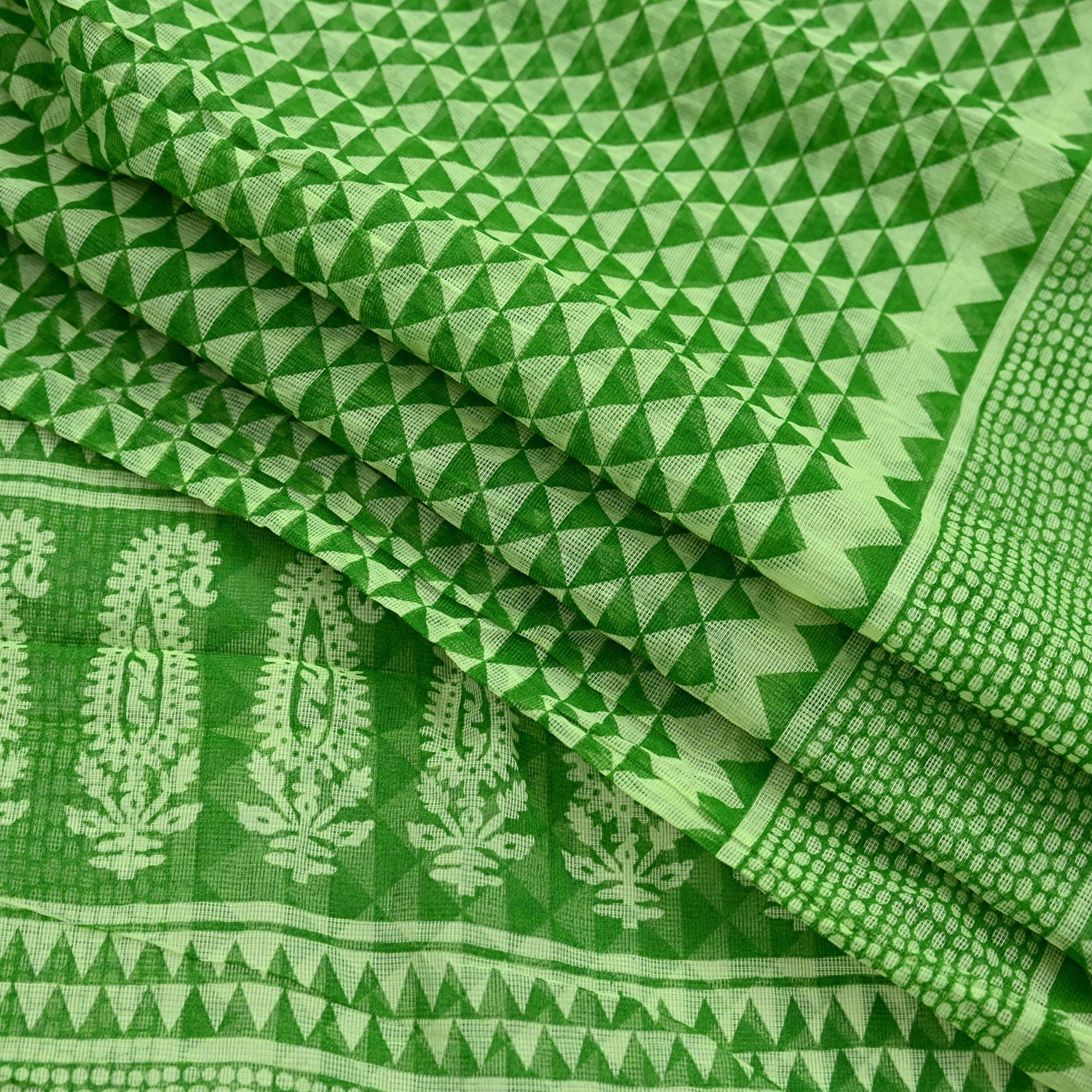 *Beautiful Green & Ivory Colored Printed Pure Cotton Saree.
