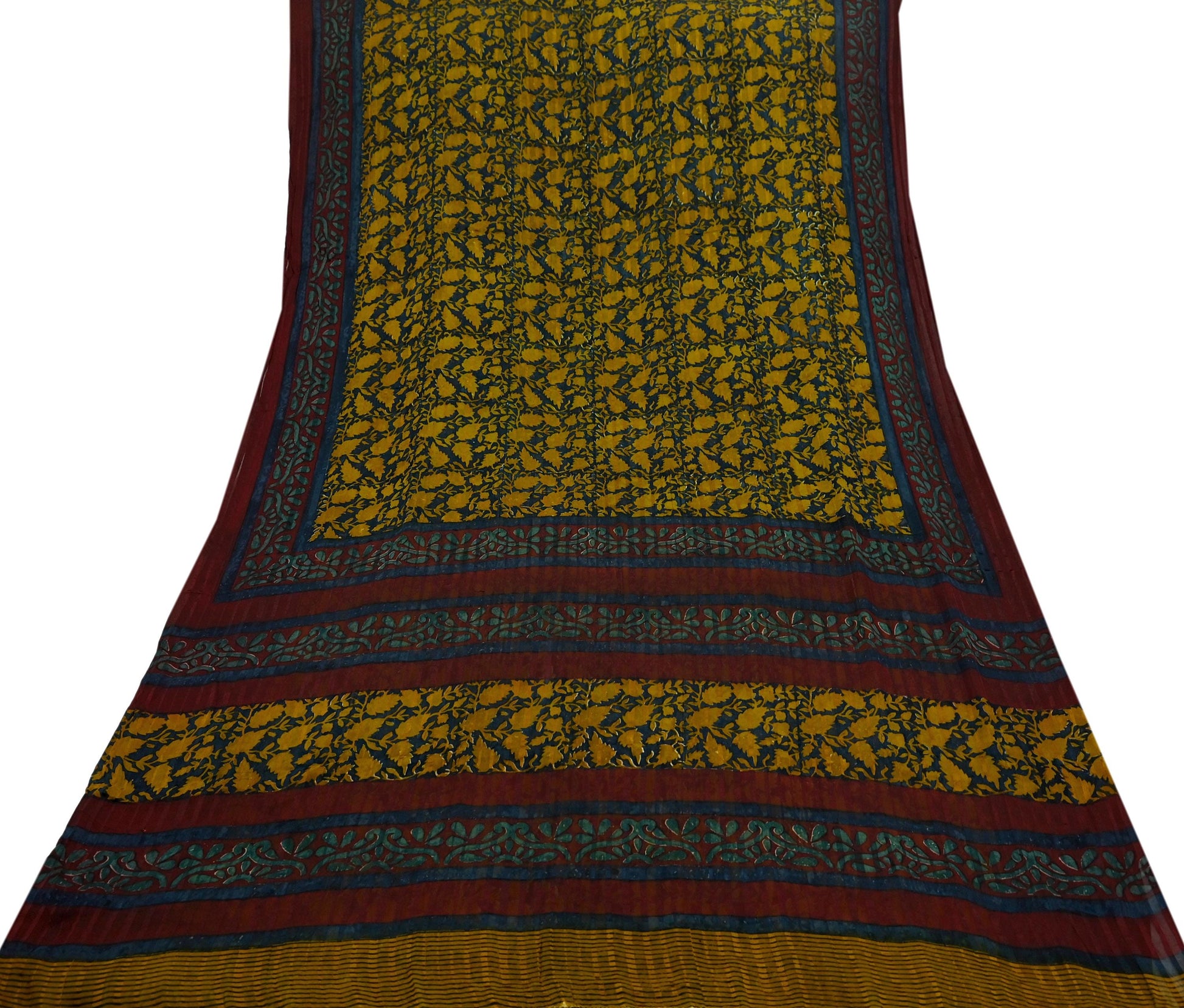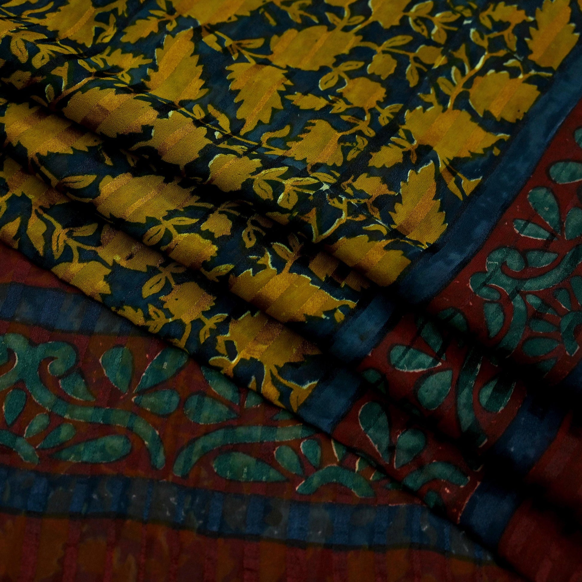 Indian Vintage Sari Green & Maroon Pure Georgette Silk Printed Sarees 5Yd Craft Fabric Sewing Soft Dress Making Floral Quilting Used Upcycle