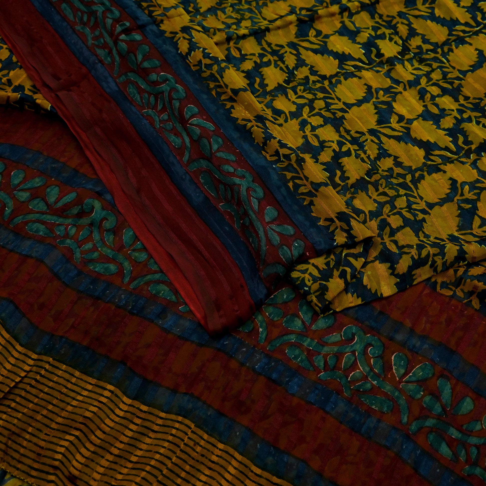 * Attractive Green, Mustard & Maroon Colored Pure Georgette Silk Printed Saree .