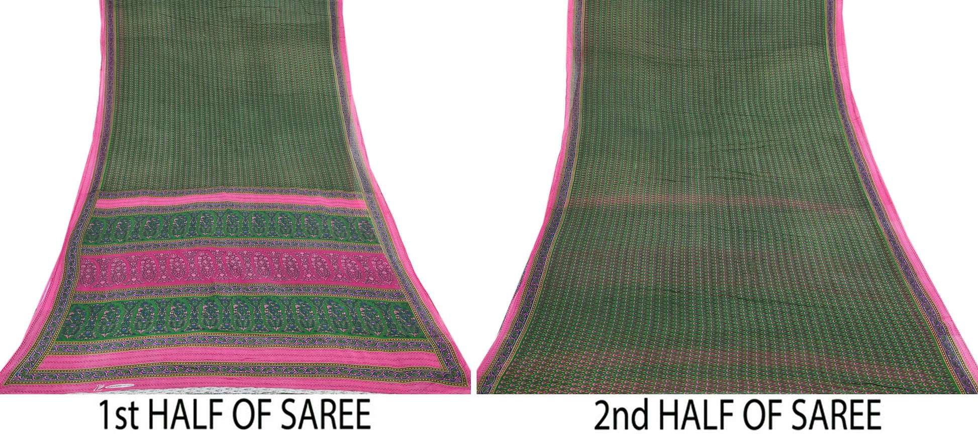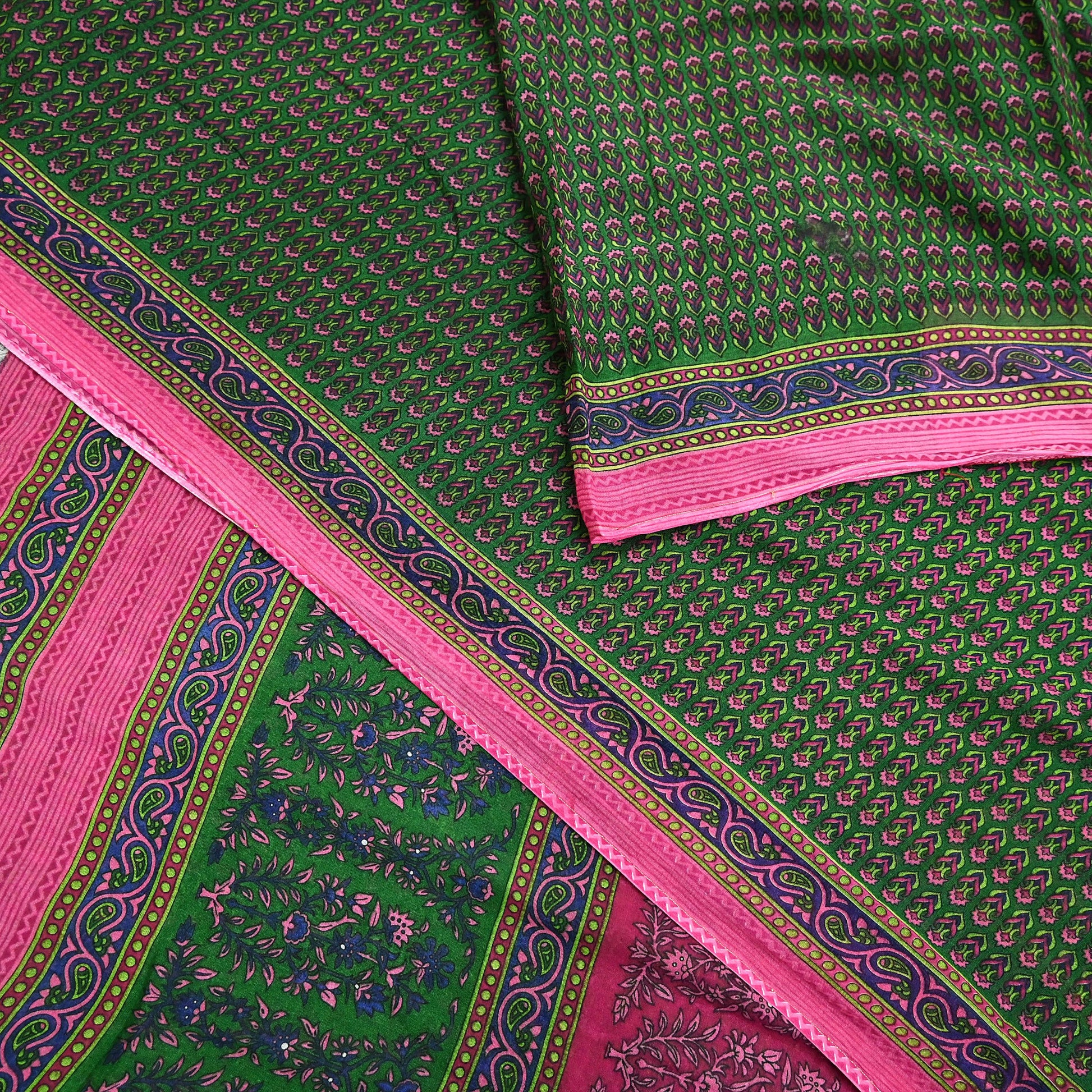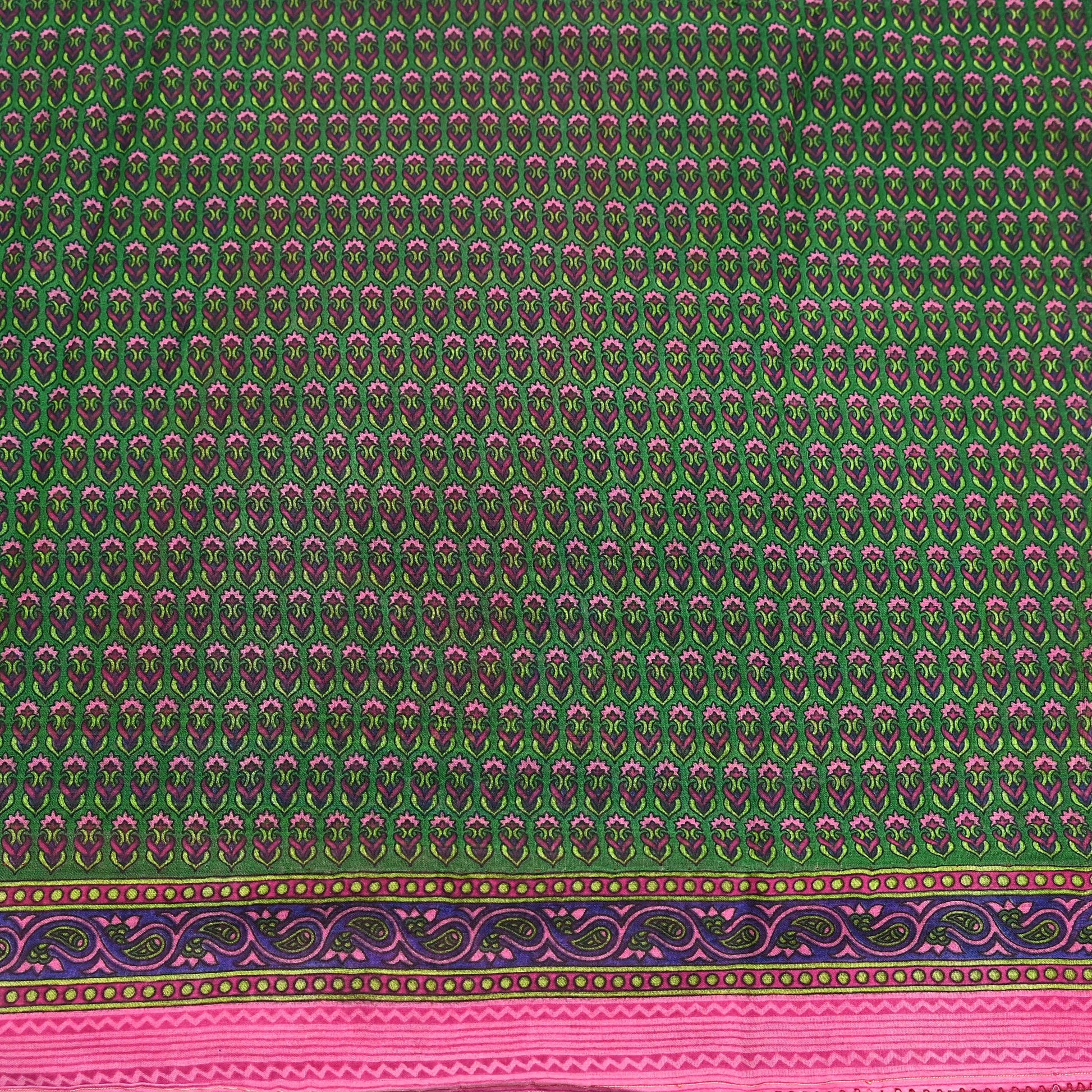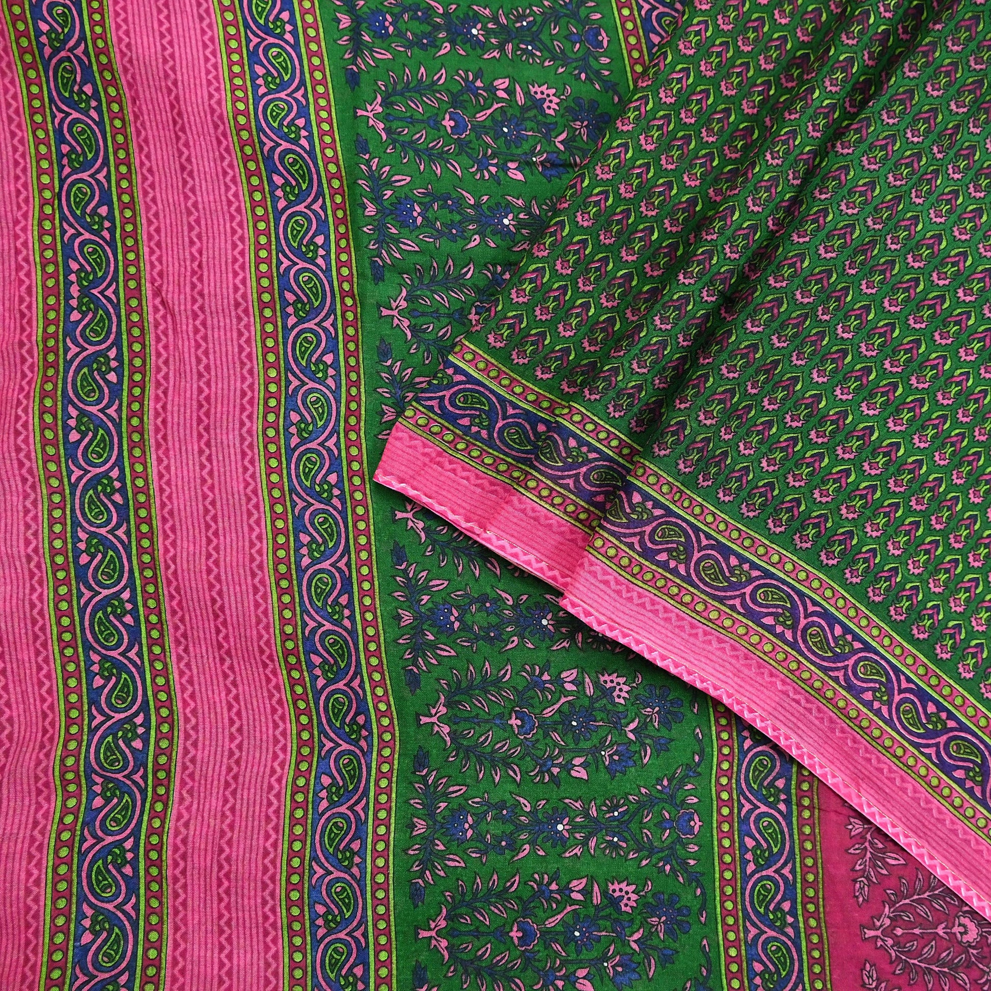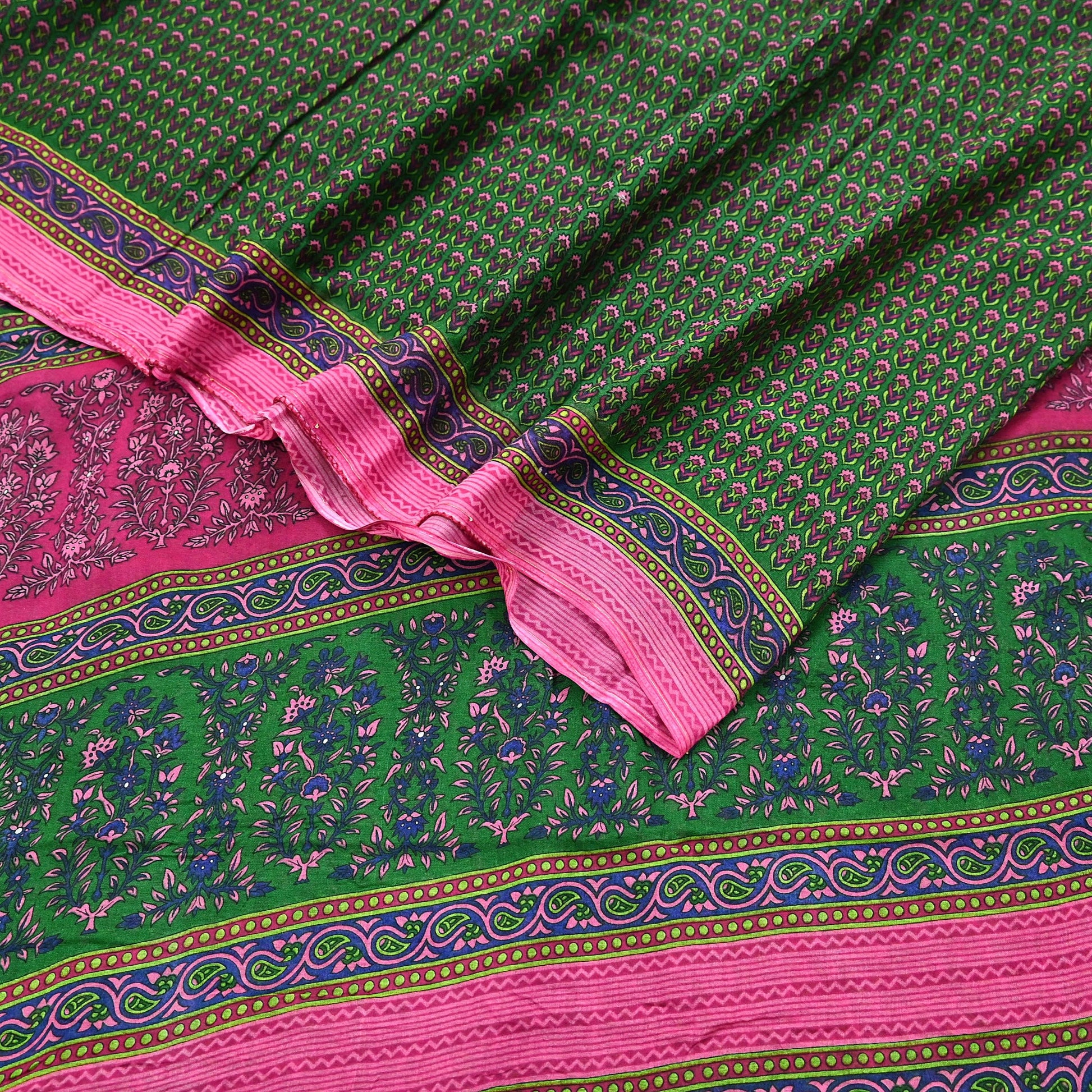 Indian Vintage Sari Green Pure Cotton Printed Sarees Craft Fabric 5Yd Soft Sewing Sarong Wrap Boho Floral Quilting Upcycle Crafting