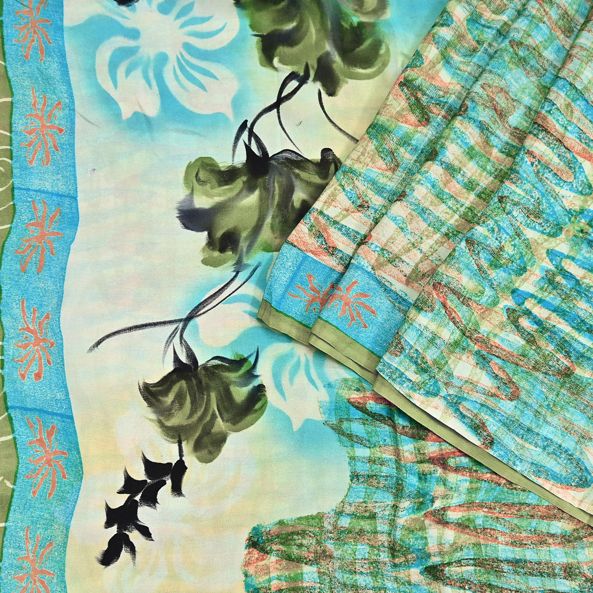 *Floral Design In Center Part Of Sari.