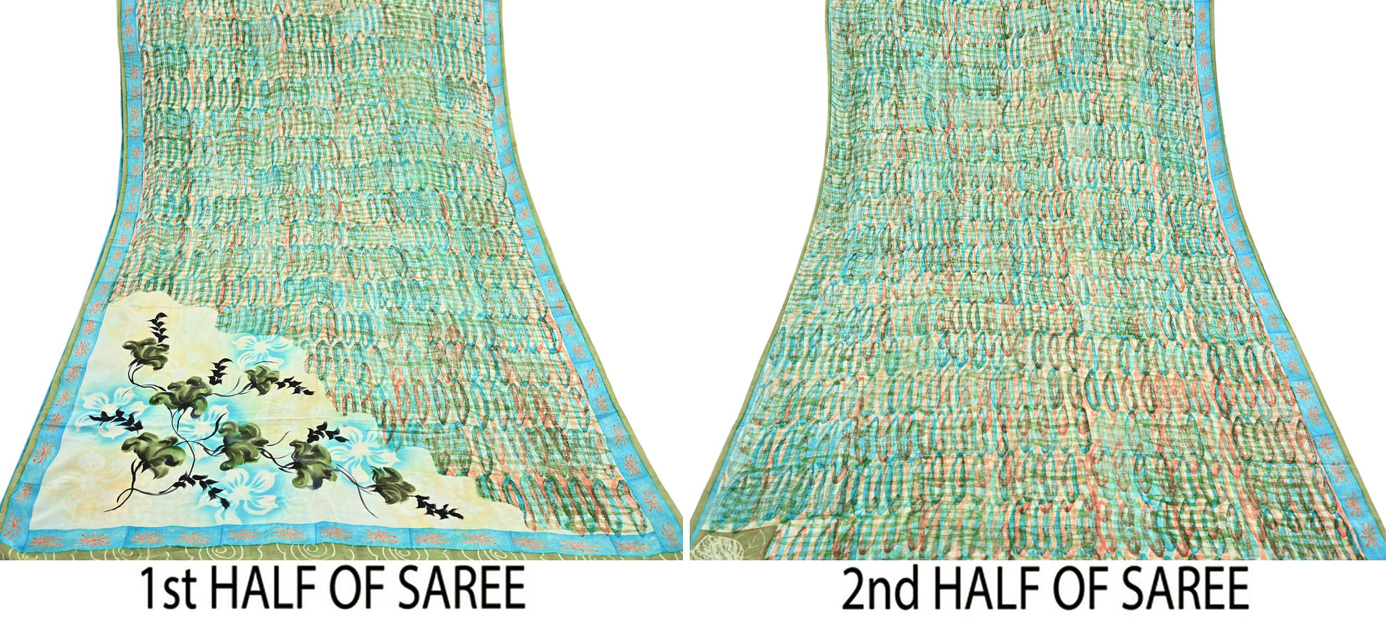 Indian Vintage Sari Green Pure Crepe Silk Block Printed Sarees 5yd Sewing Floral Craft Fabric Wrap Dress Making Crafting Quilting Upcycle