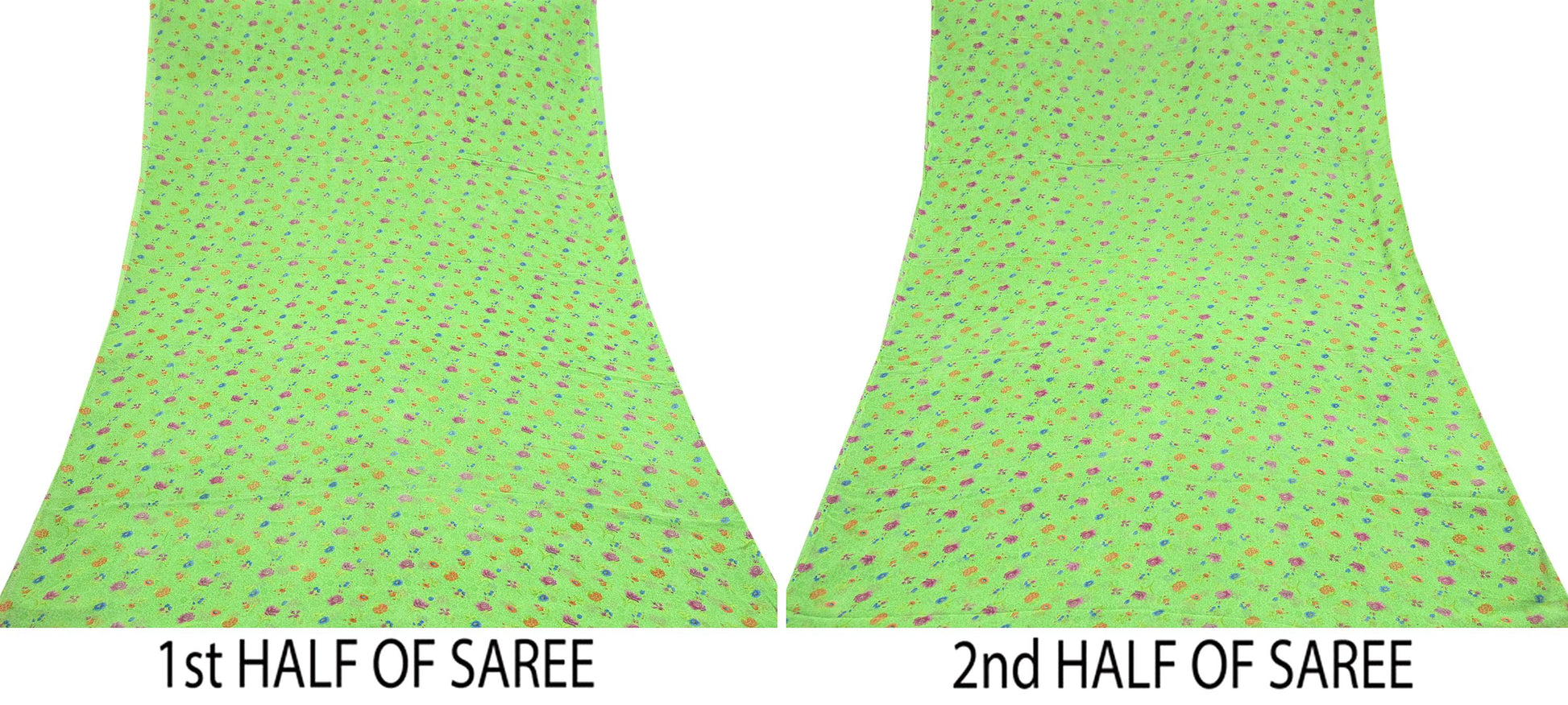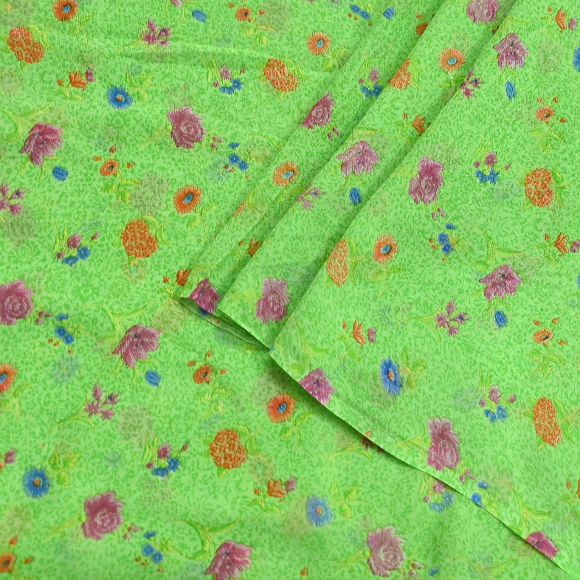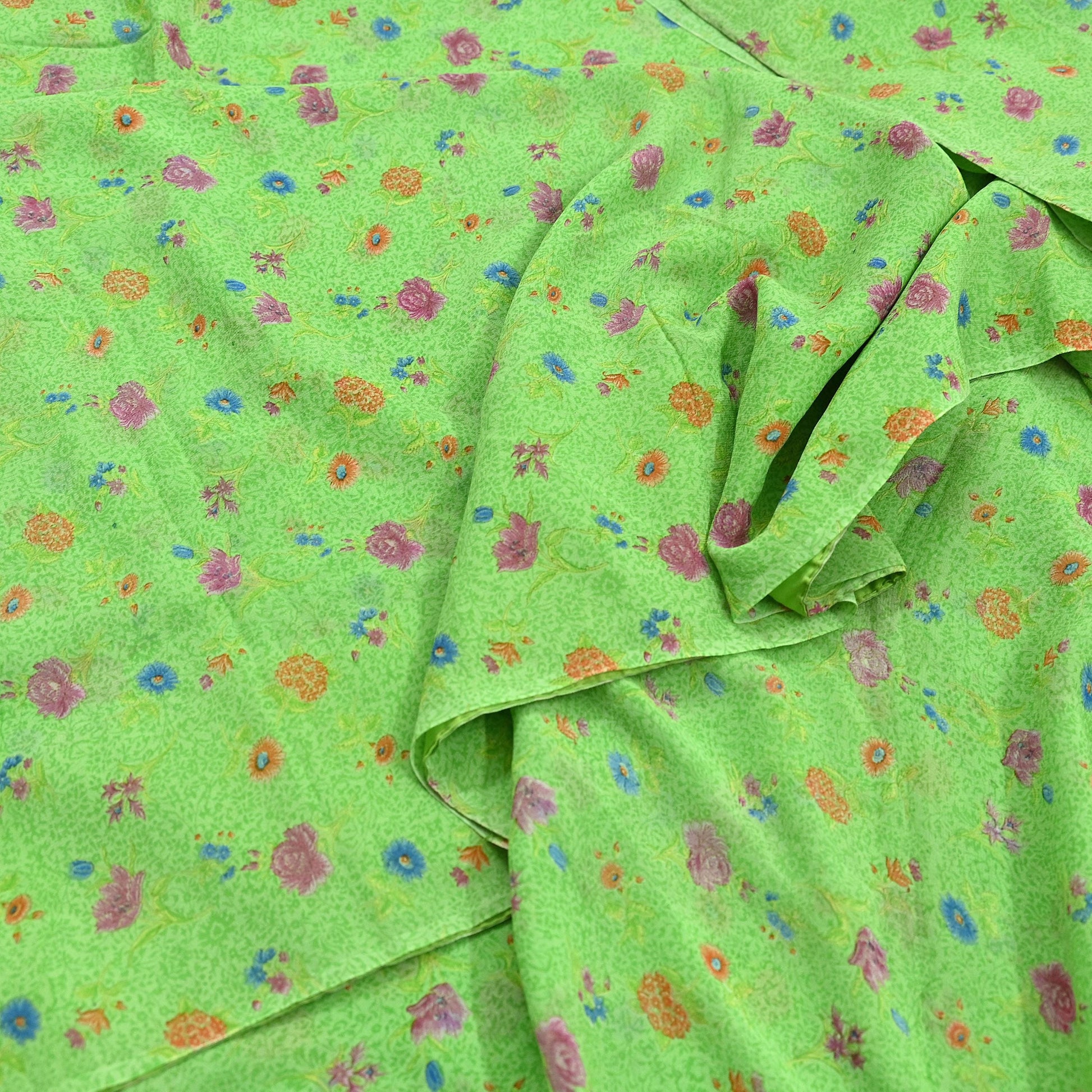 Indian Vintage Sari Green Pure Georgette Silk Printed Sarees Craft Fabric Sewing 6Yd Soft Sari Dress Making Crafting Quilting Upcycle