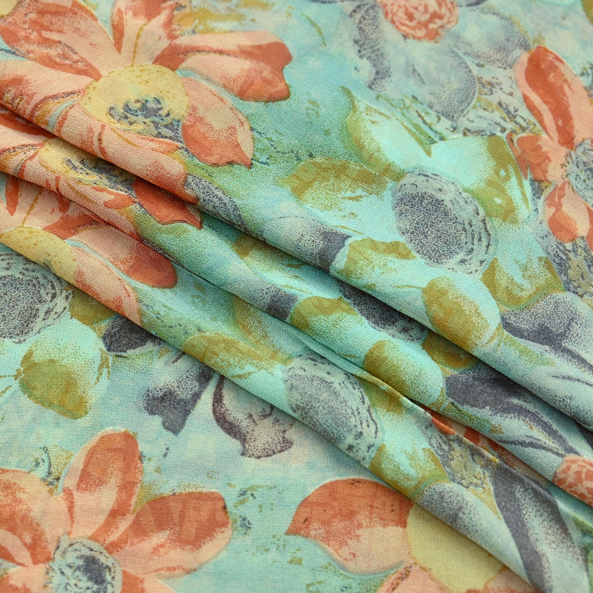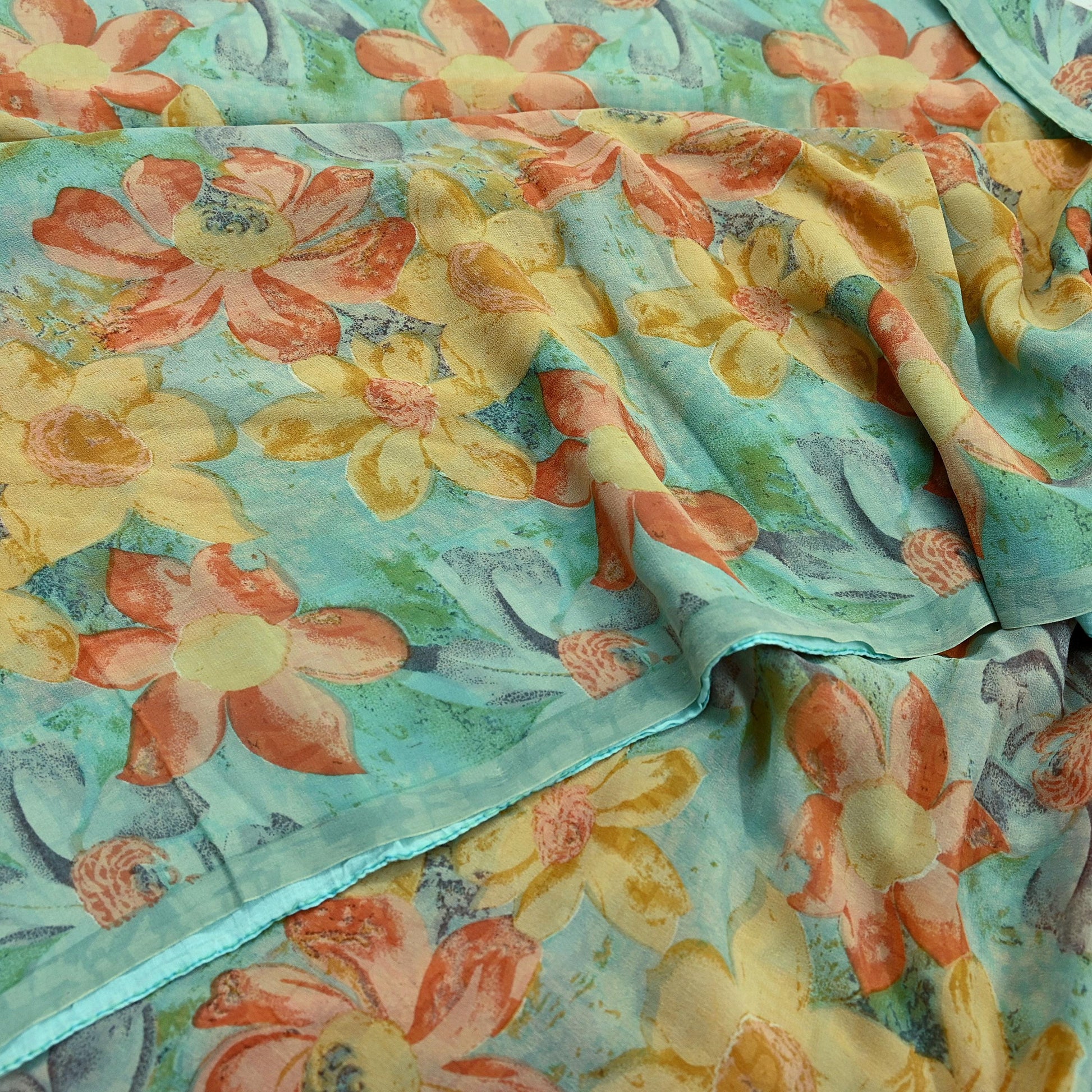 Indian Vintage Sari Green Pure Georgette Silk Printed Sarees Craft Fabric Sewing 6Yd Soft Sari Dress Making Crafting Quilting Upcycle