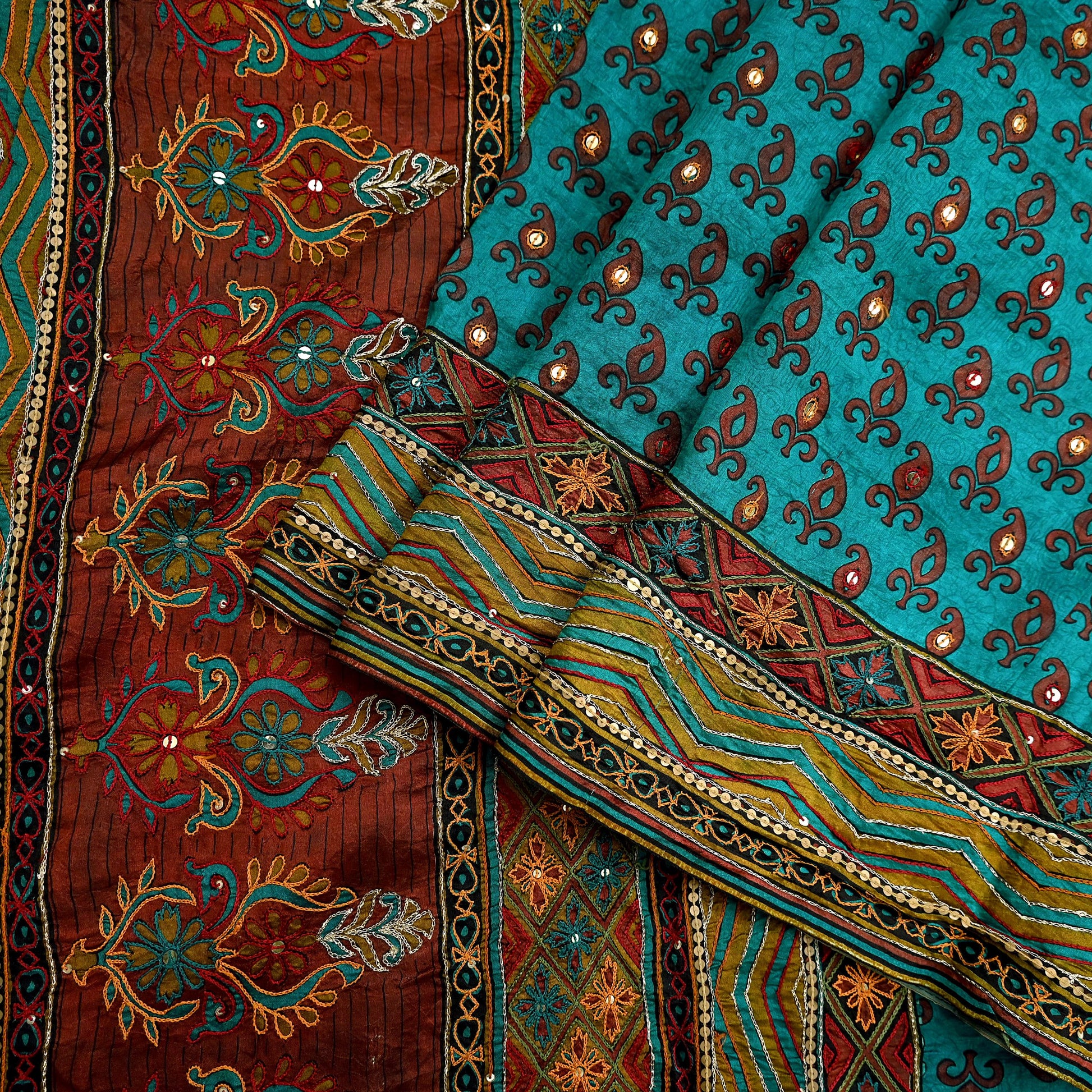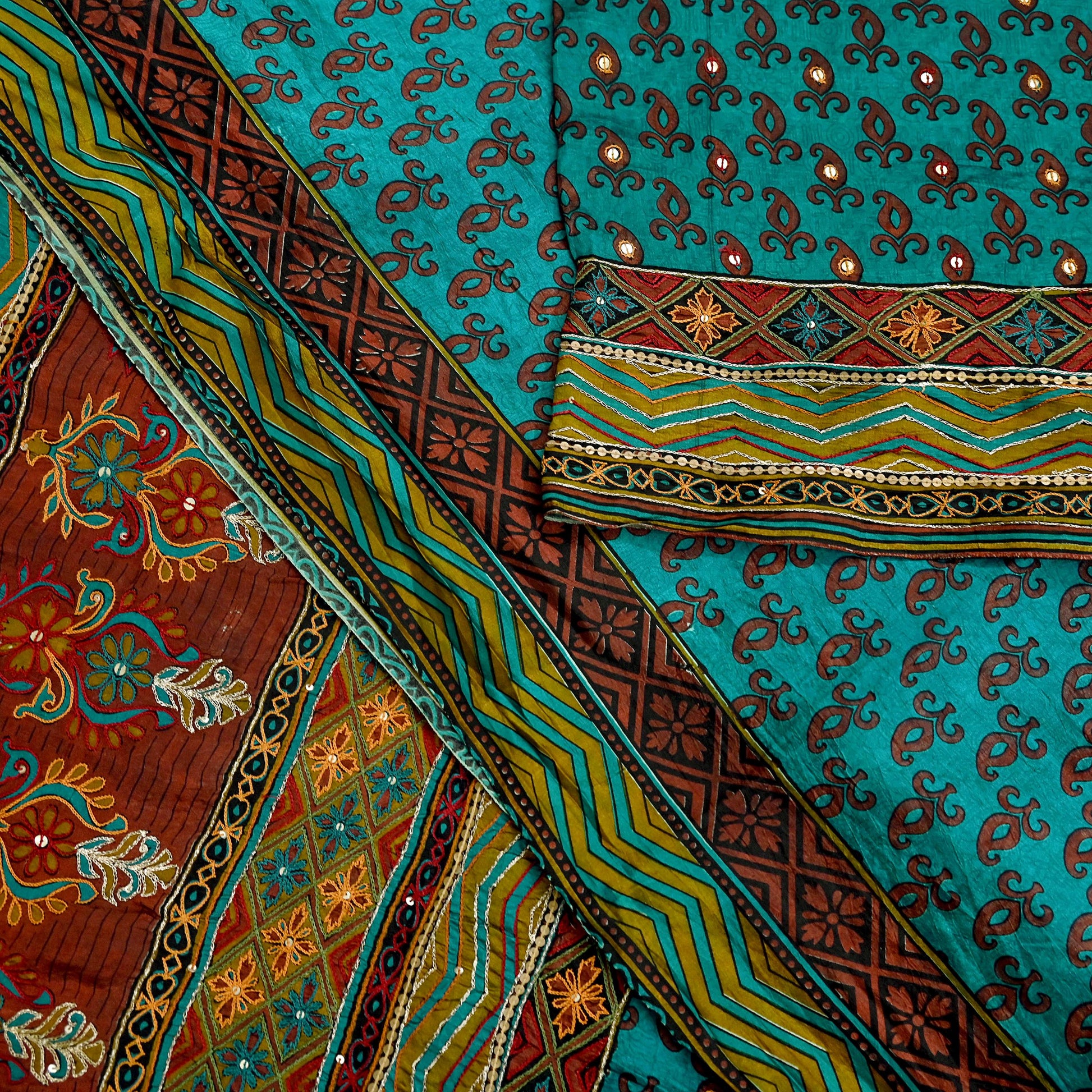 *Vintage Sari Brown & Green Colored Hand Embroidered Pure Silk Sarees.