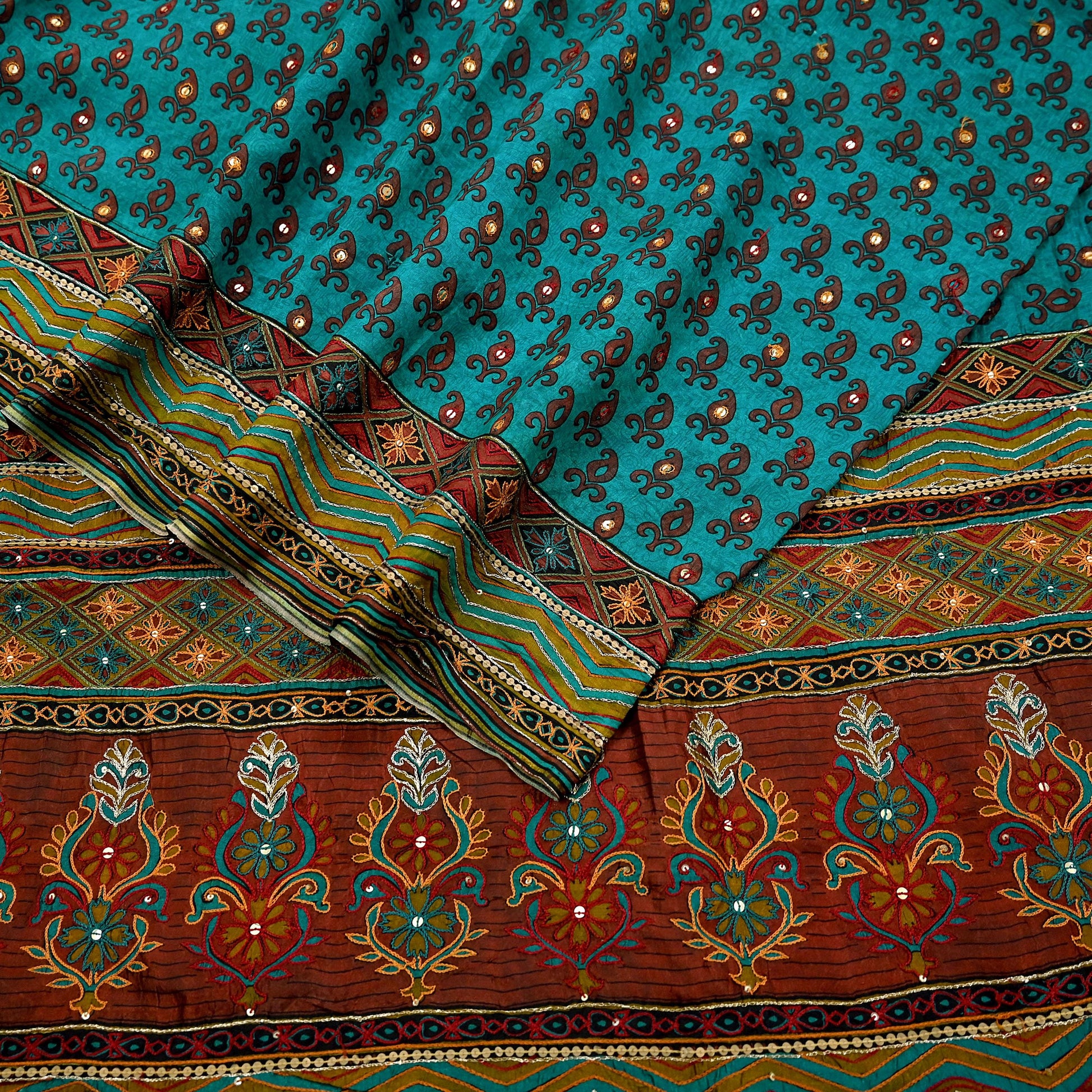 Indian Vintage Sari Green Pure Silk Hand Embroidered Sarees 5Yd Craft Fabric Sewing soft Quilting Crafting Upcycle Ethnic Bollywood sarees