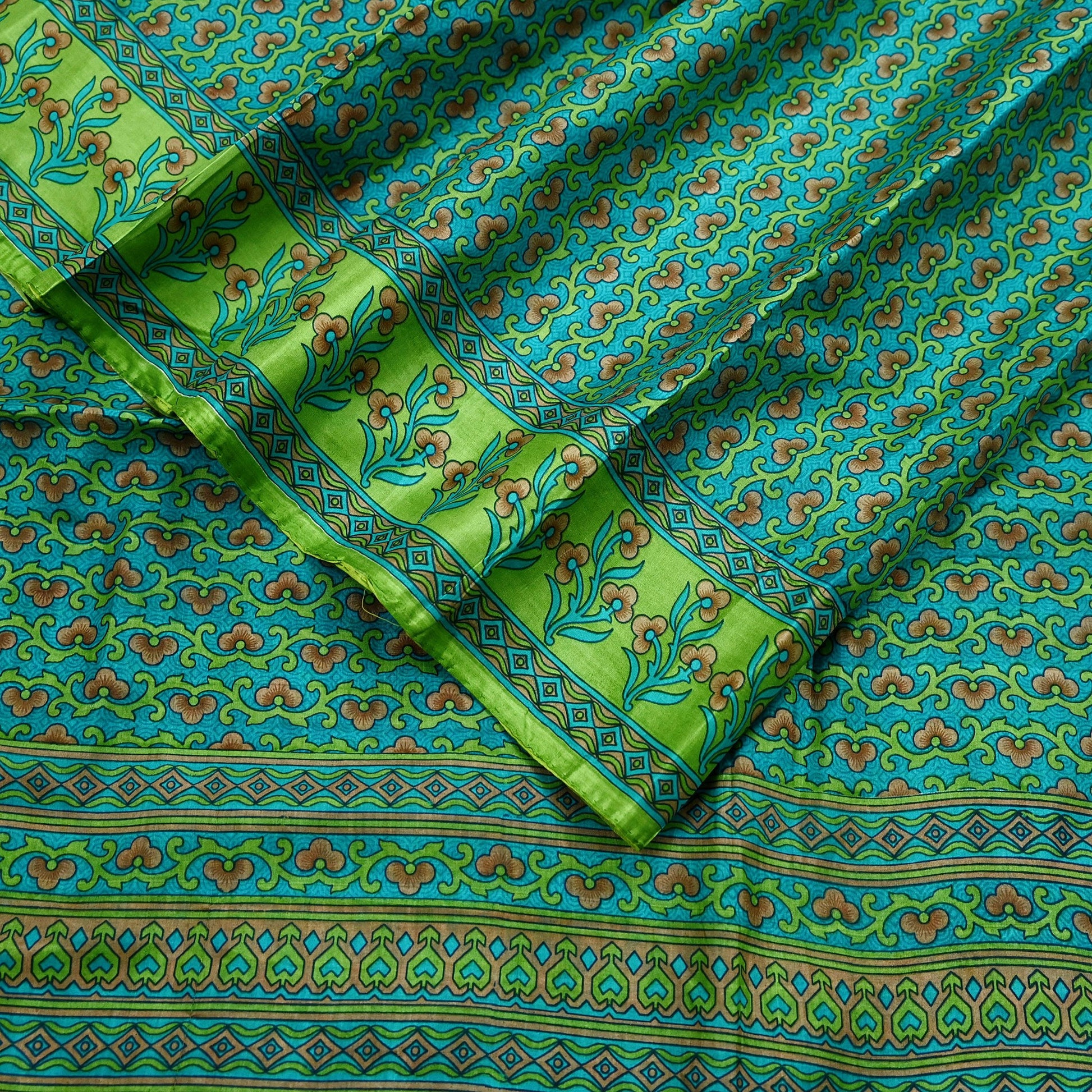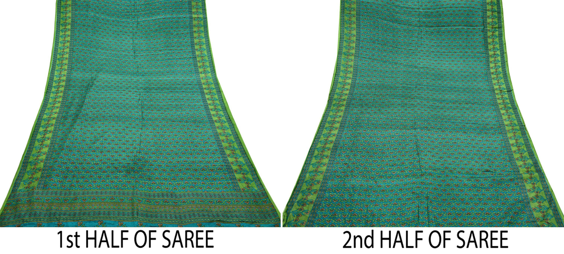 Indian Vintage Sari Green Pure Silk Printed Sarees 5yd Sewing Craft Fabric Dress Making Soft Floral Wrap Upcycle Used Quilting Crafting