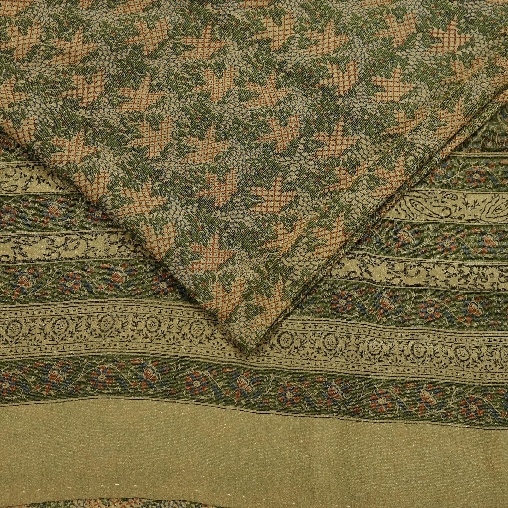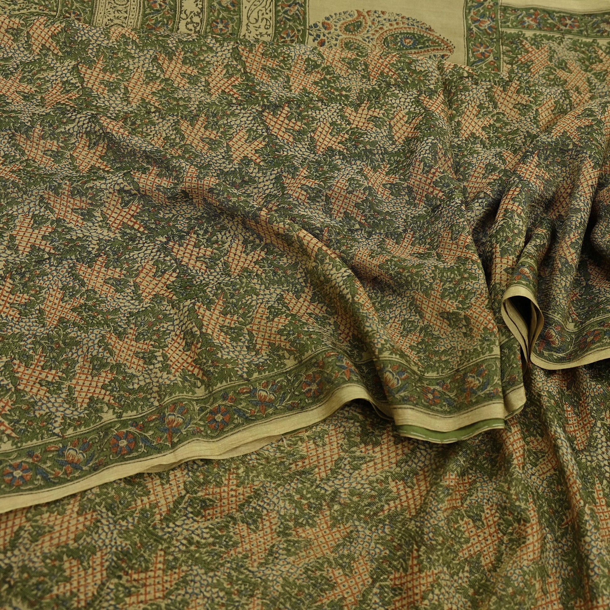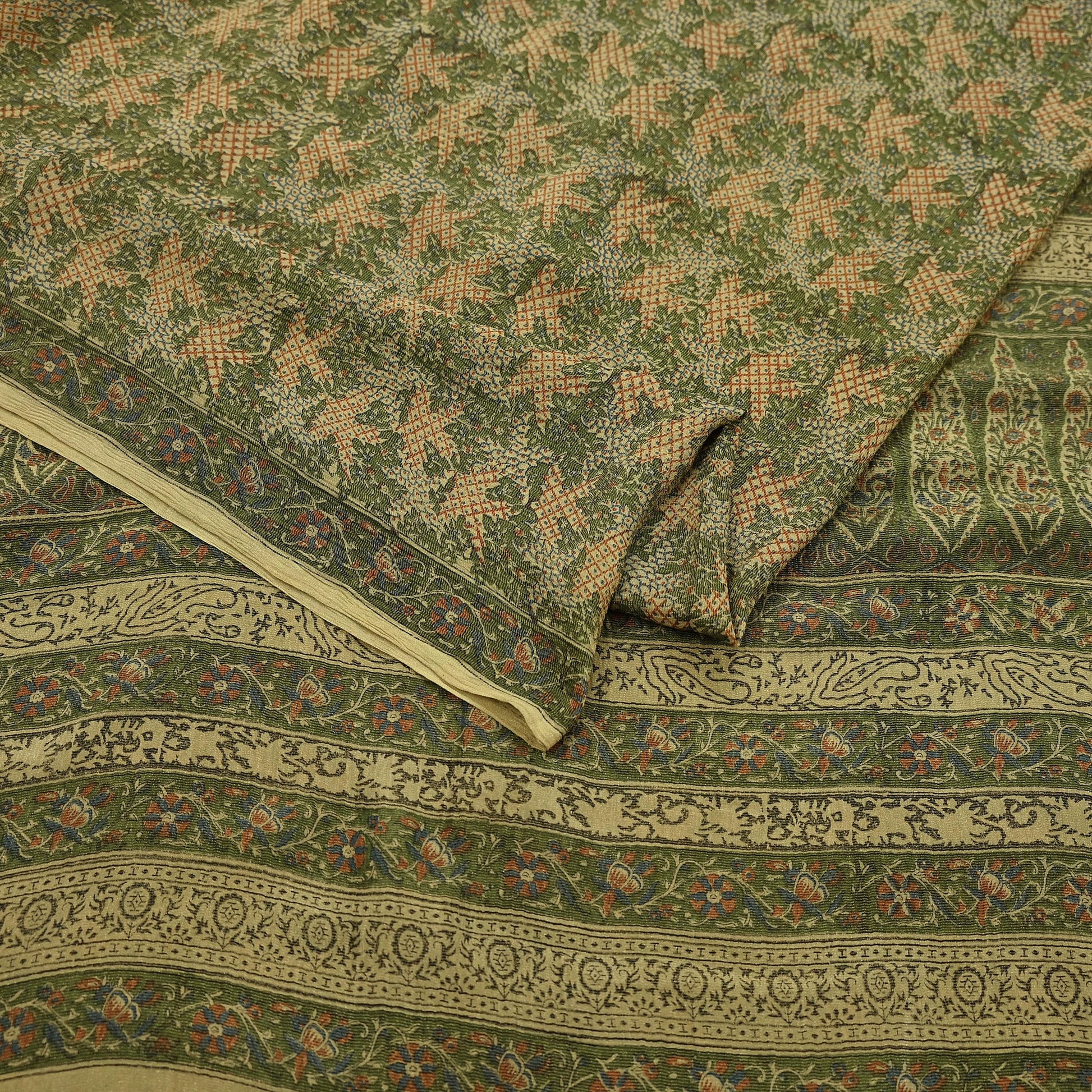 Indian Vintage Sari Green Pure Silk Printed Sarees 5yd Sewing Craft Fabric Dress Making Soft Floral Wrap Upcycle Used Quilting Crafting