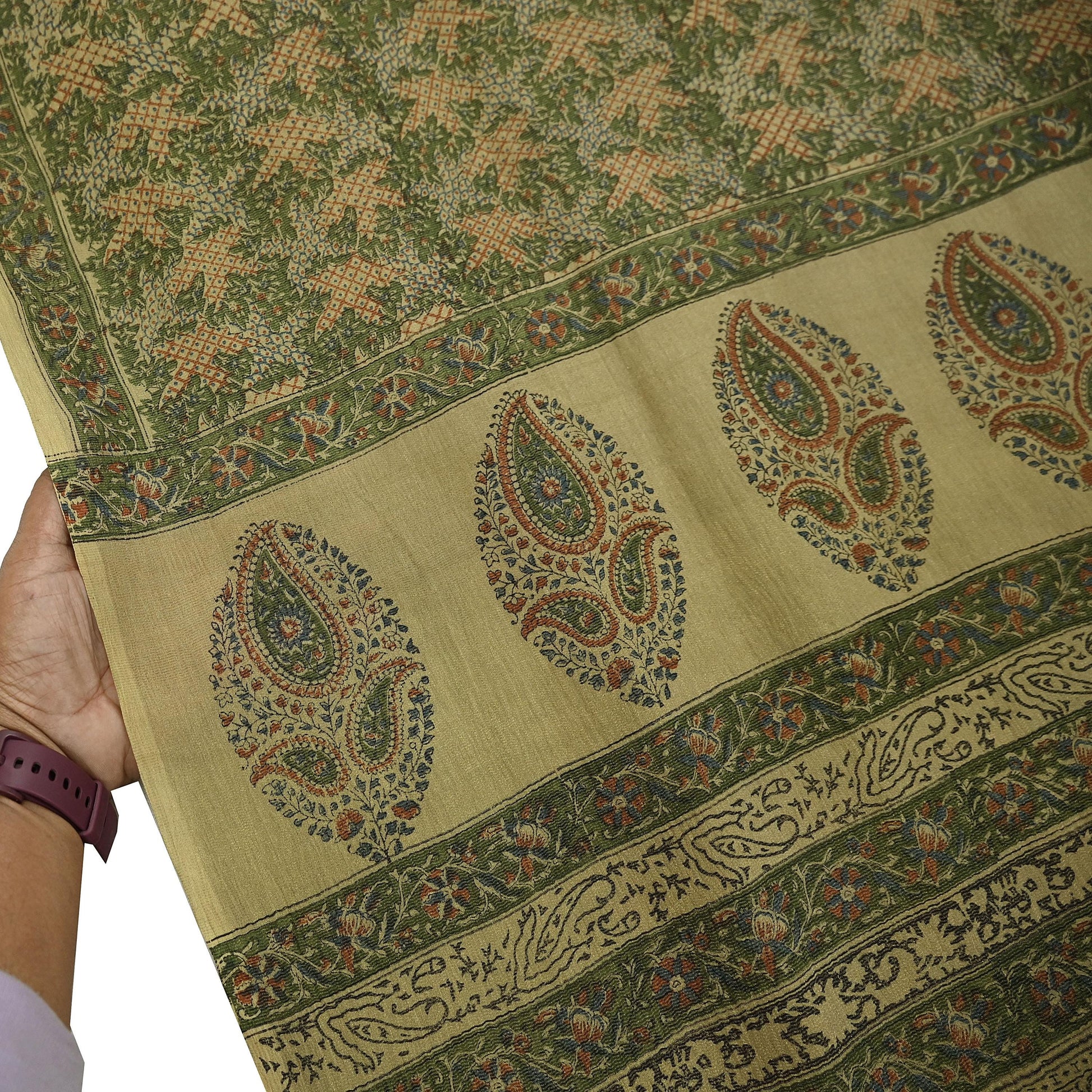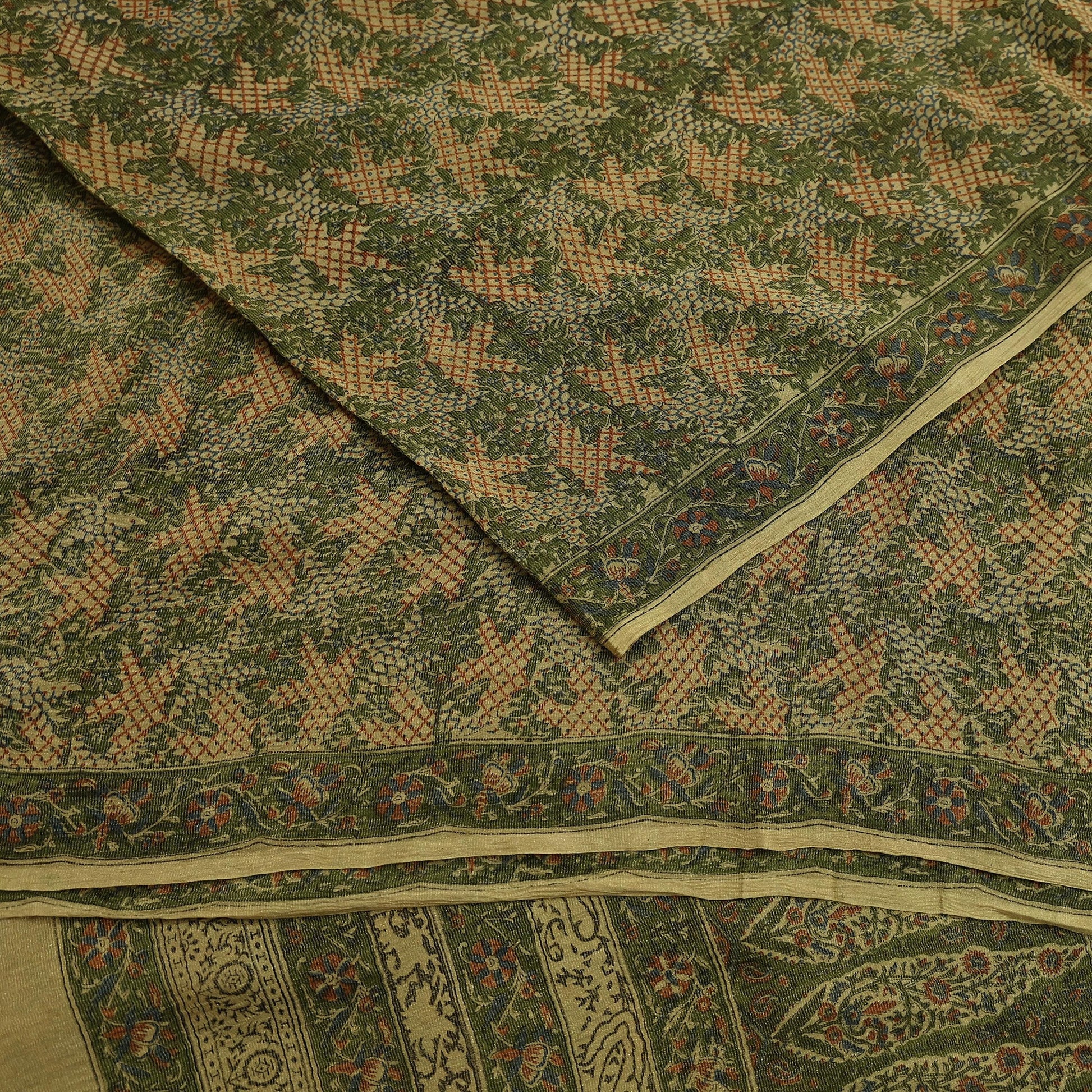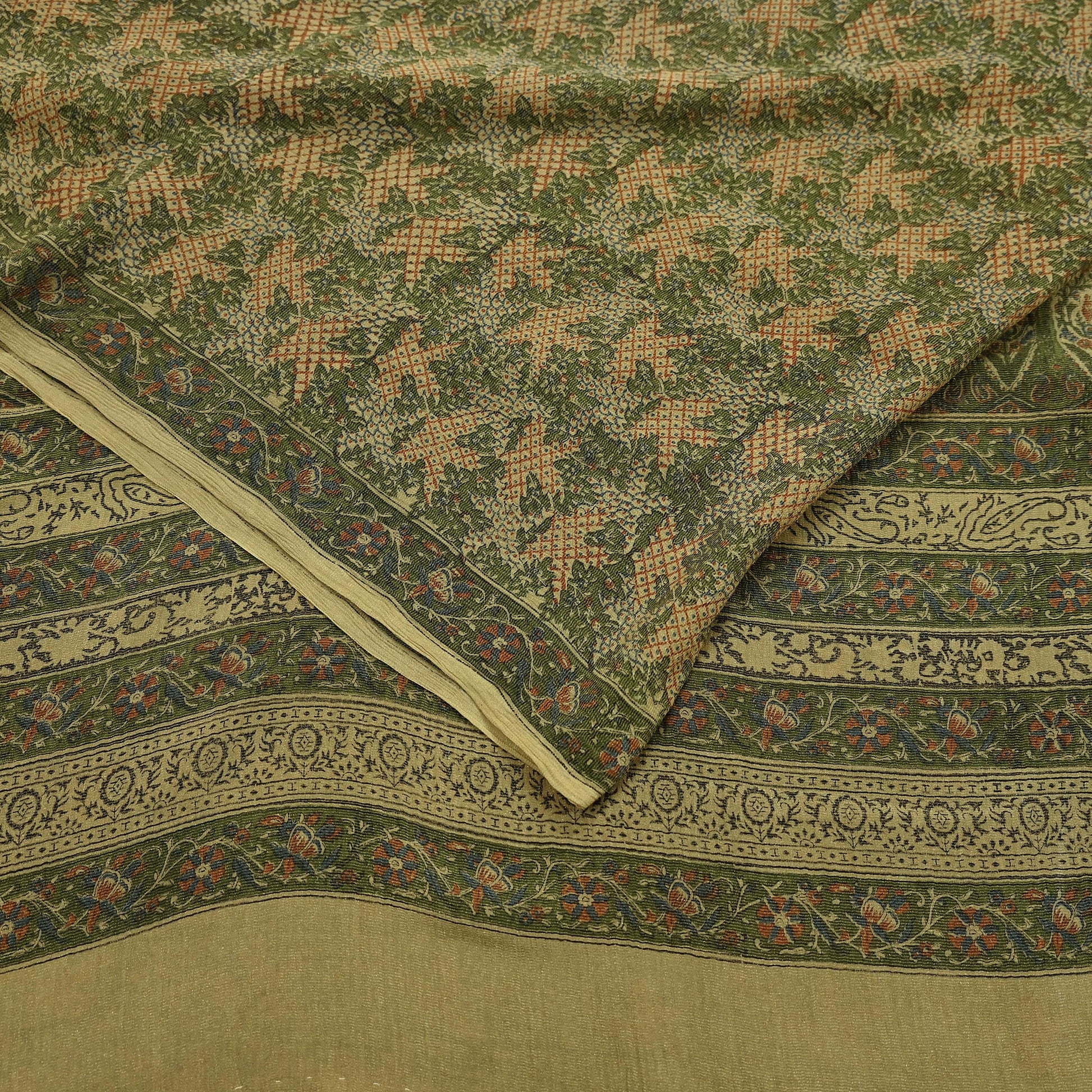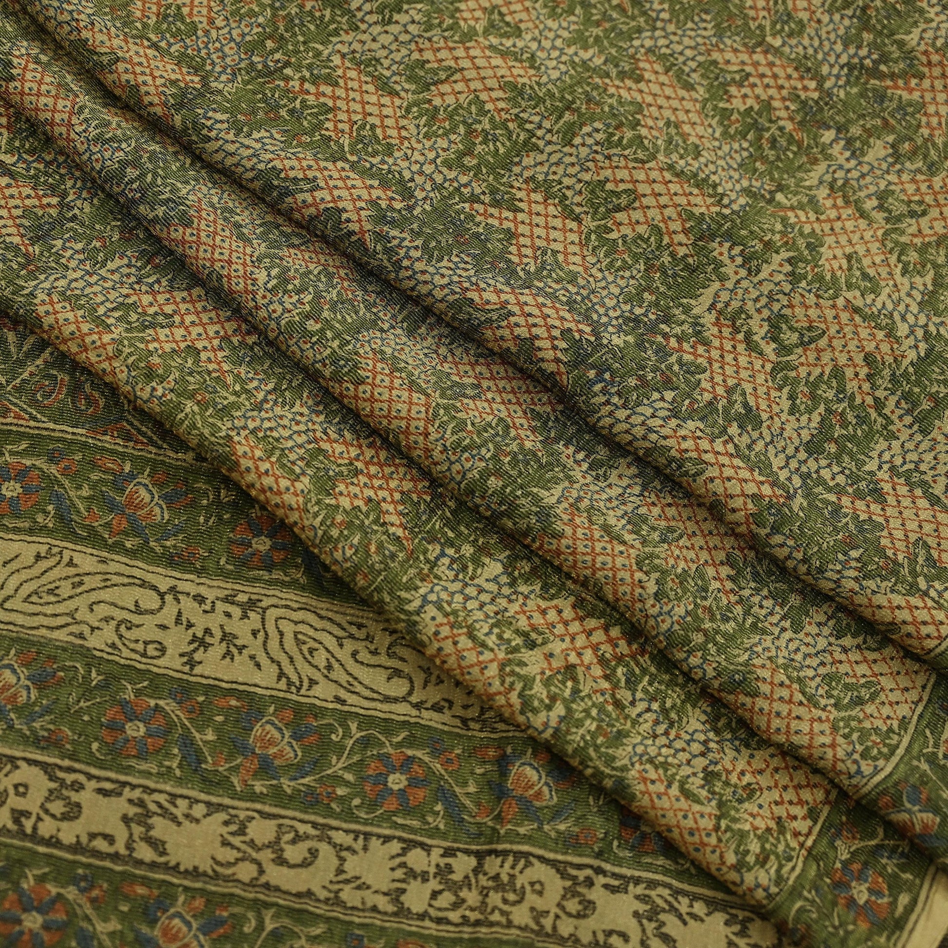 Indian Vintage Sari Green Pure Silk Printed Sarees 5yd Sewing Craft Fabric Dress Making Soft Floral Wrap Upcycle Used Quilting Crafting