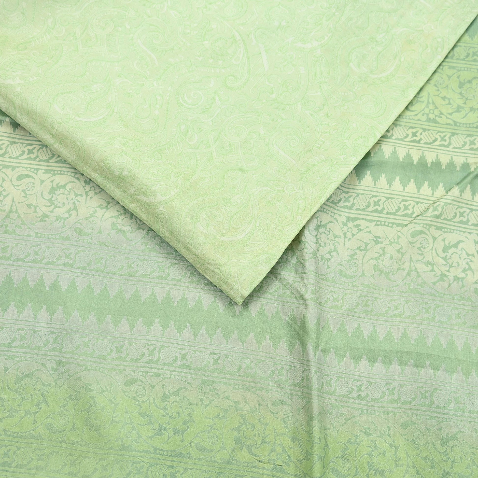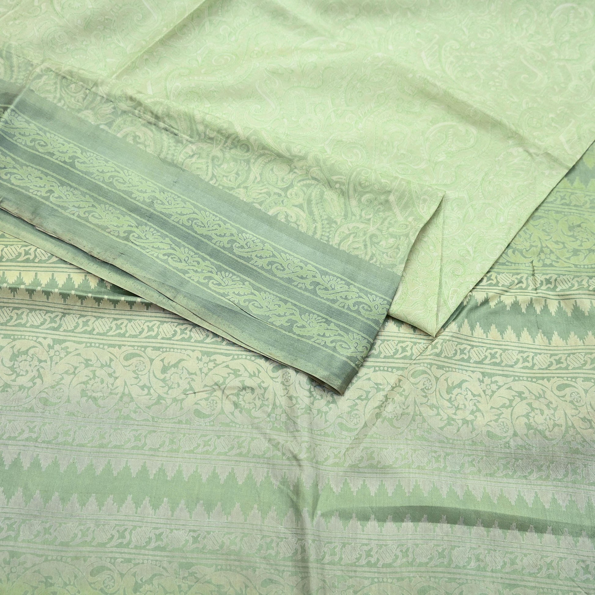 Indian Vintage Sari Green Pure Silk Printed Sarees 5yd Sewing Craft Fabric Dress Making Soft Floral Wrap Upcycle Used Quilting Crafting