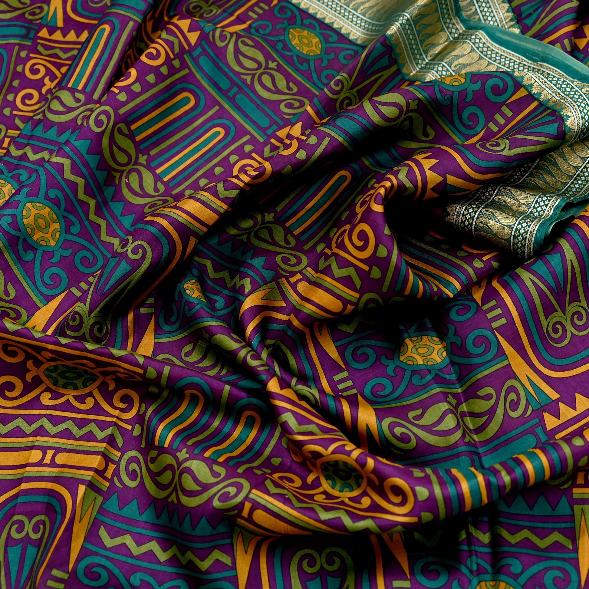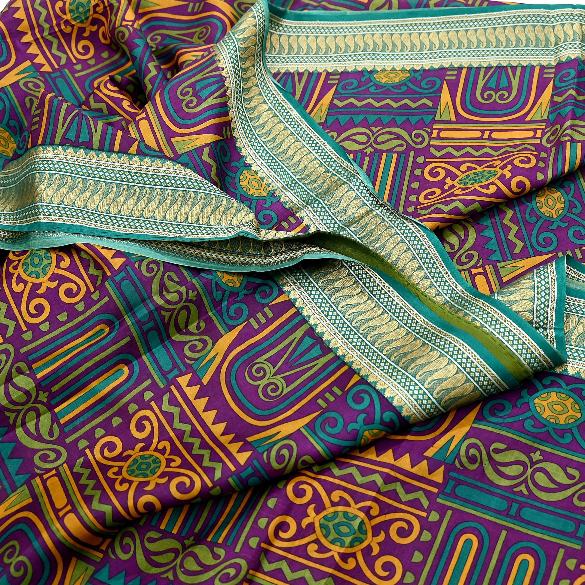 *This unique vintage Green & Purple Colored Printed Pure Silk Saree .