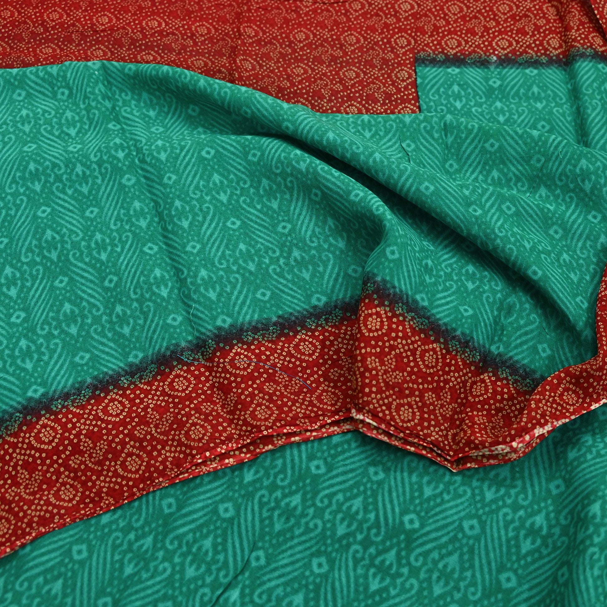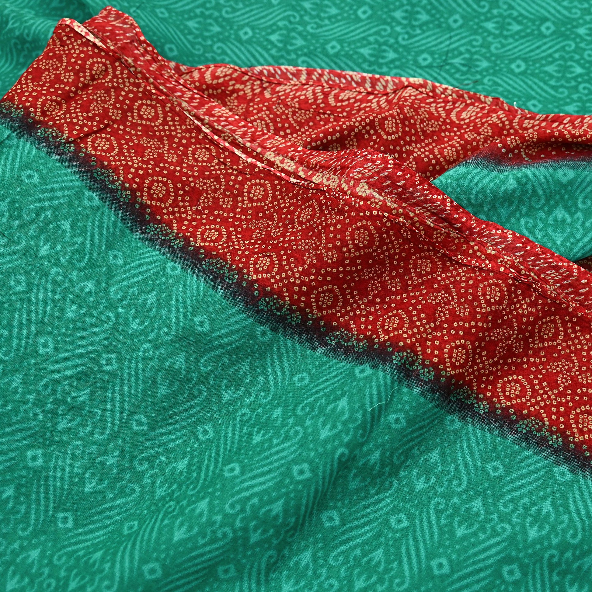 Indian Vintage Sari Green & Red Printed Pure Cotton Saree Craft Fabric 5Yd Sewing Sarong Wrap Boho Floral Crafting Upcycle Quilting Used
