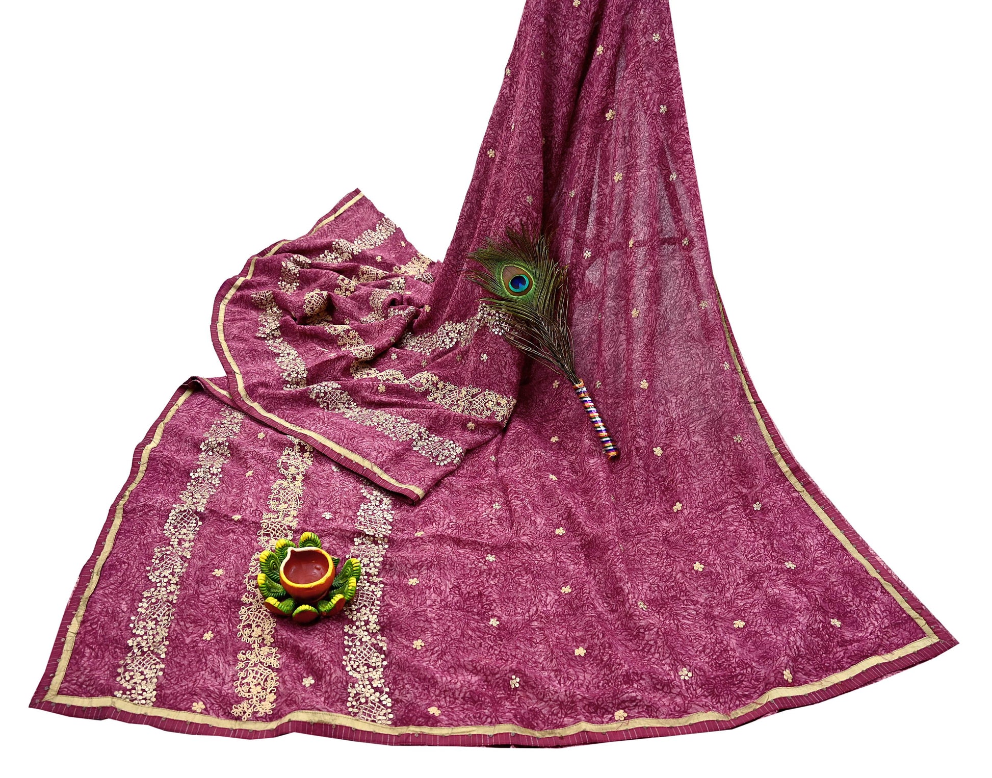 *Vintage Maroon & Pink Colored Hand Embroidered Sarees.