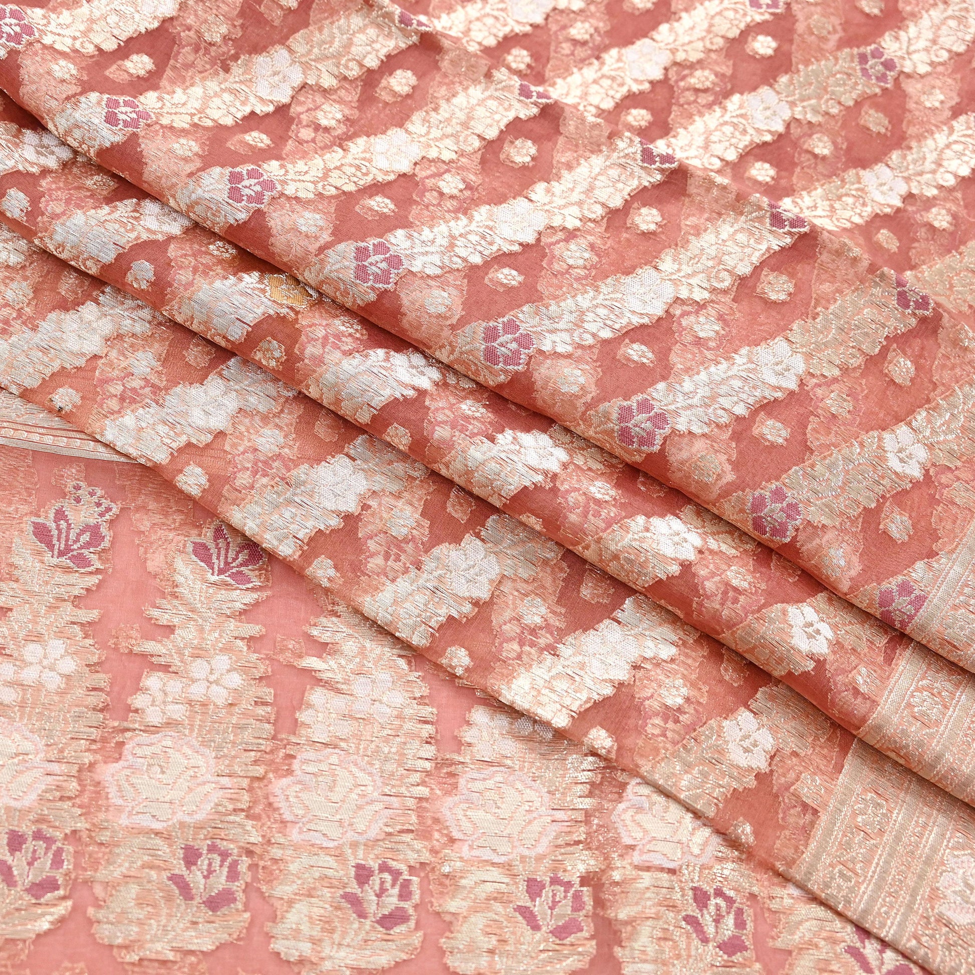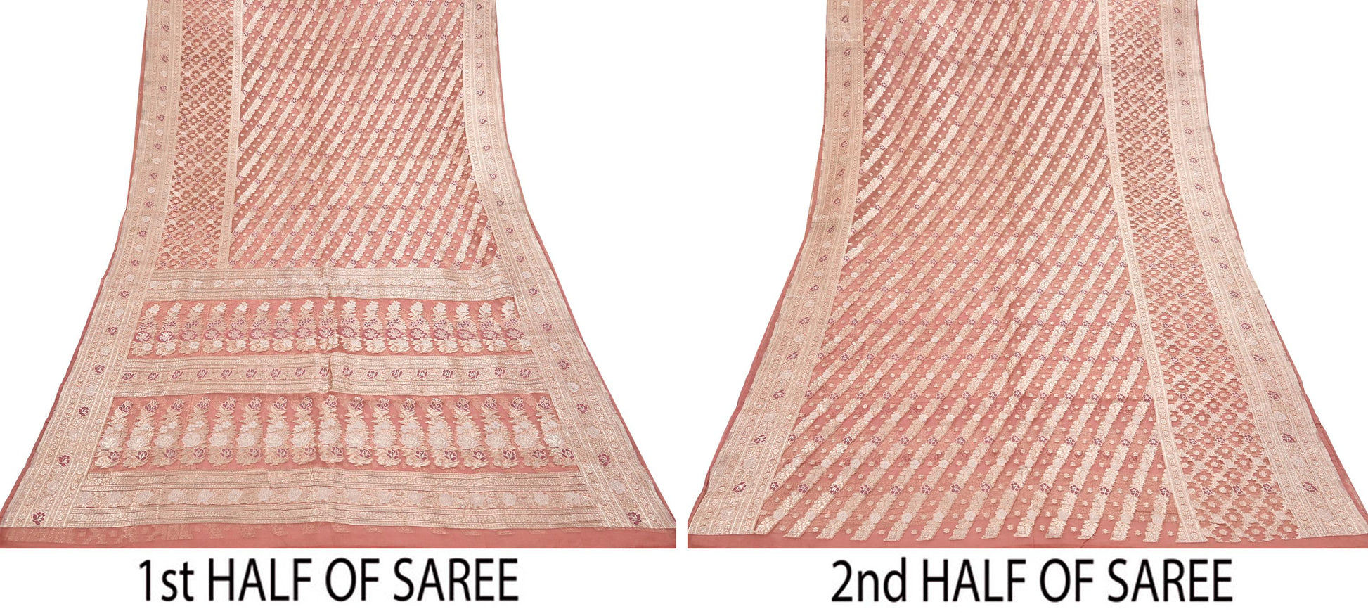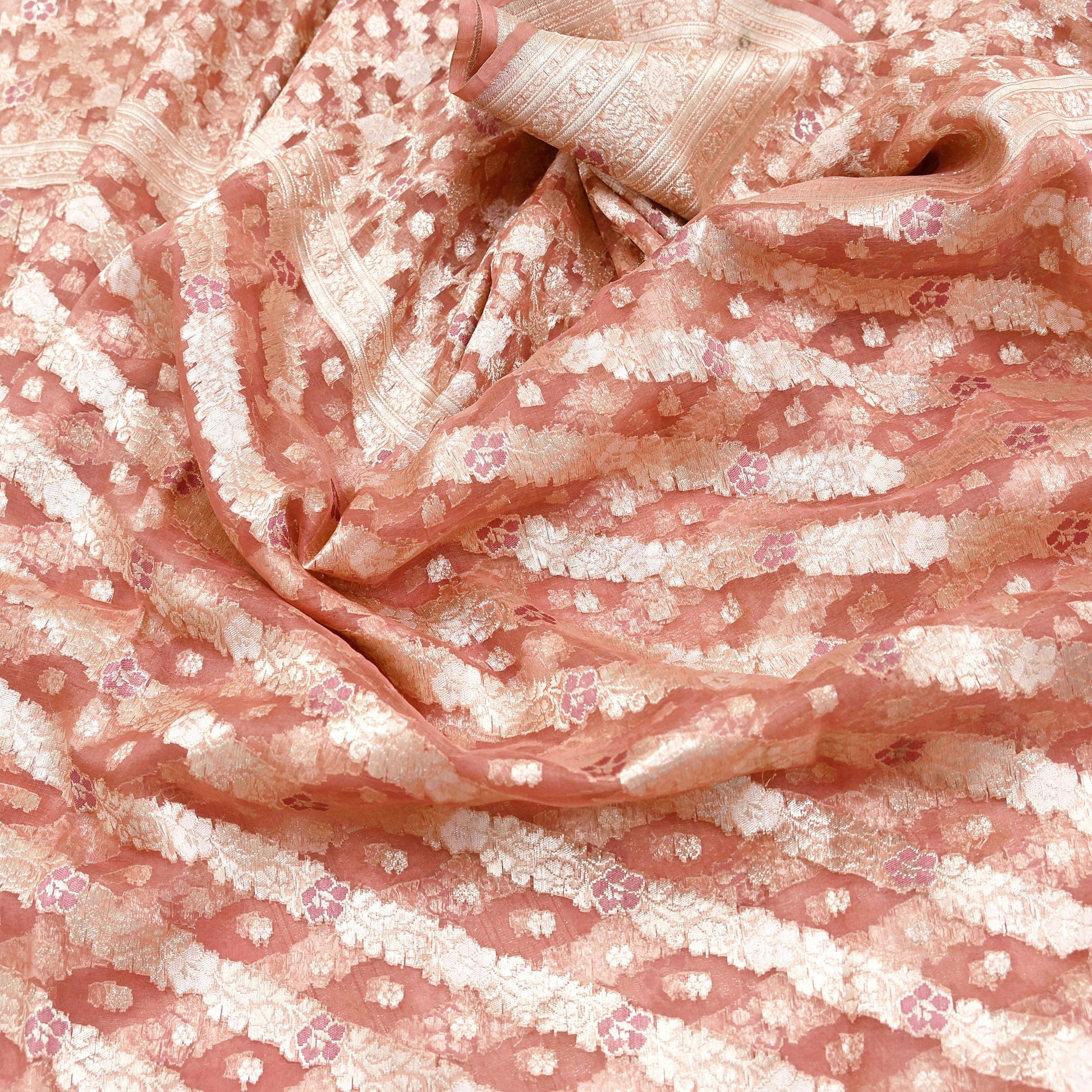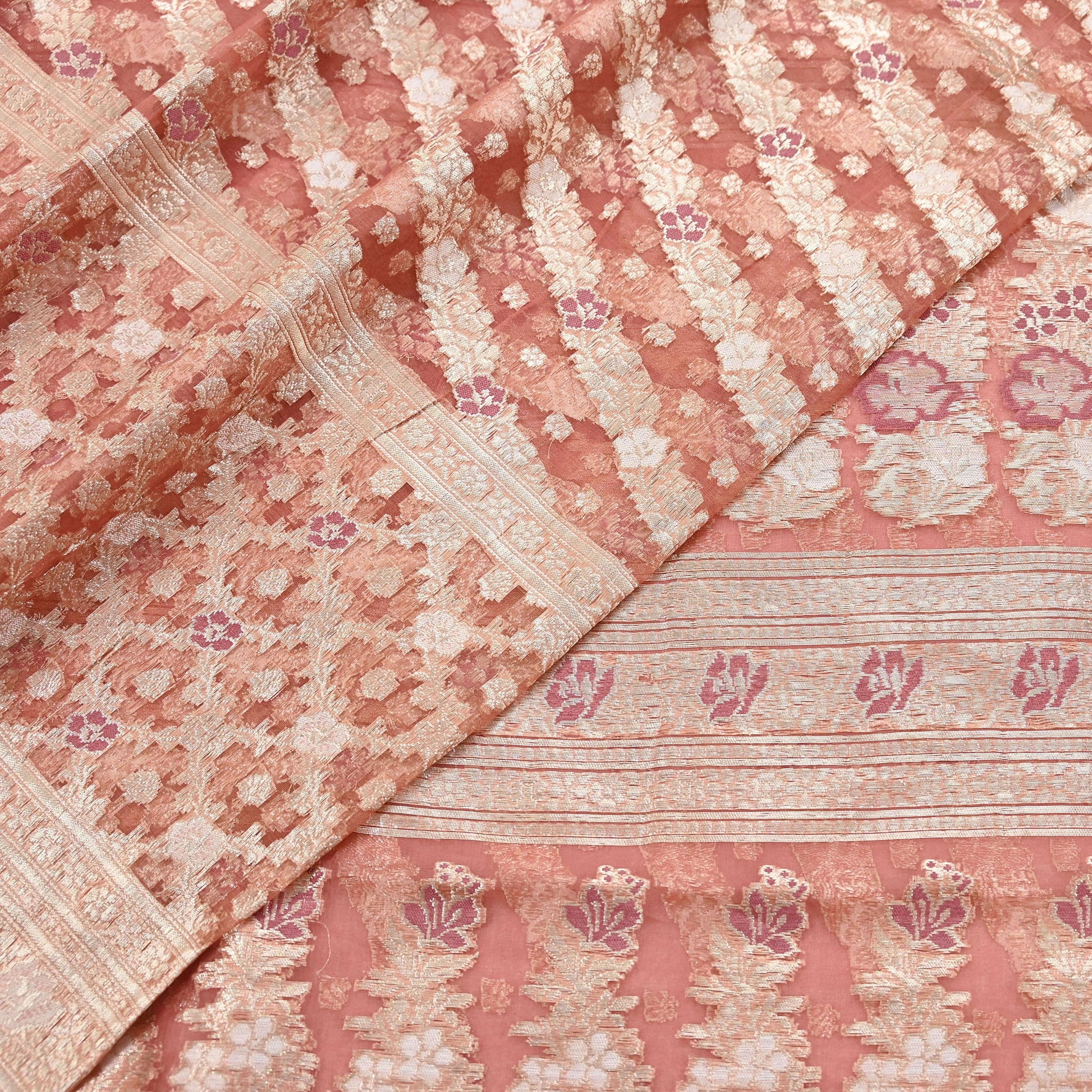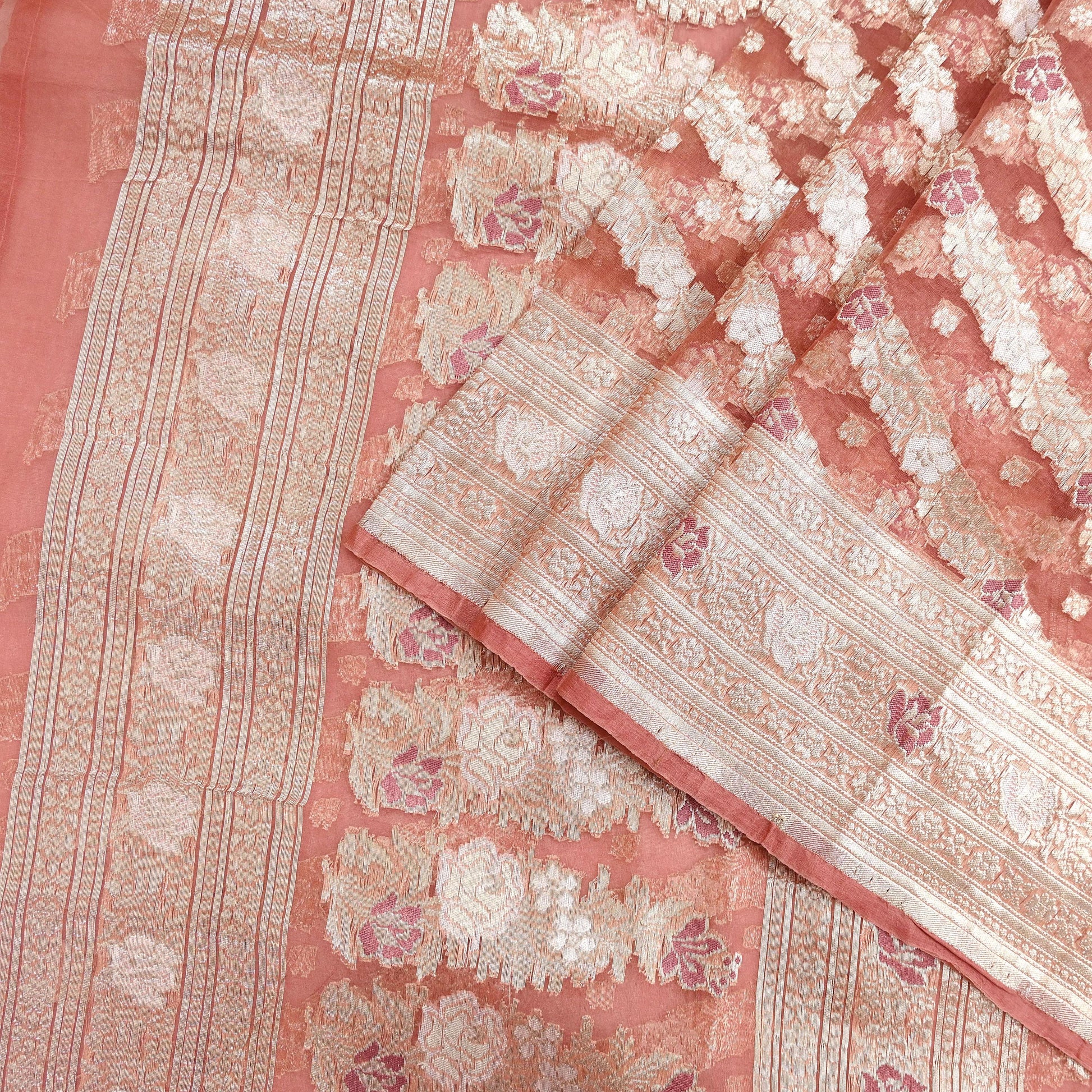 *Vintage Sari Peach Colored Vintage Heavy Saree Pure Organza Silk Woven Banarasi/Brocade Sarees.