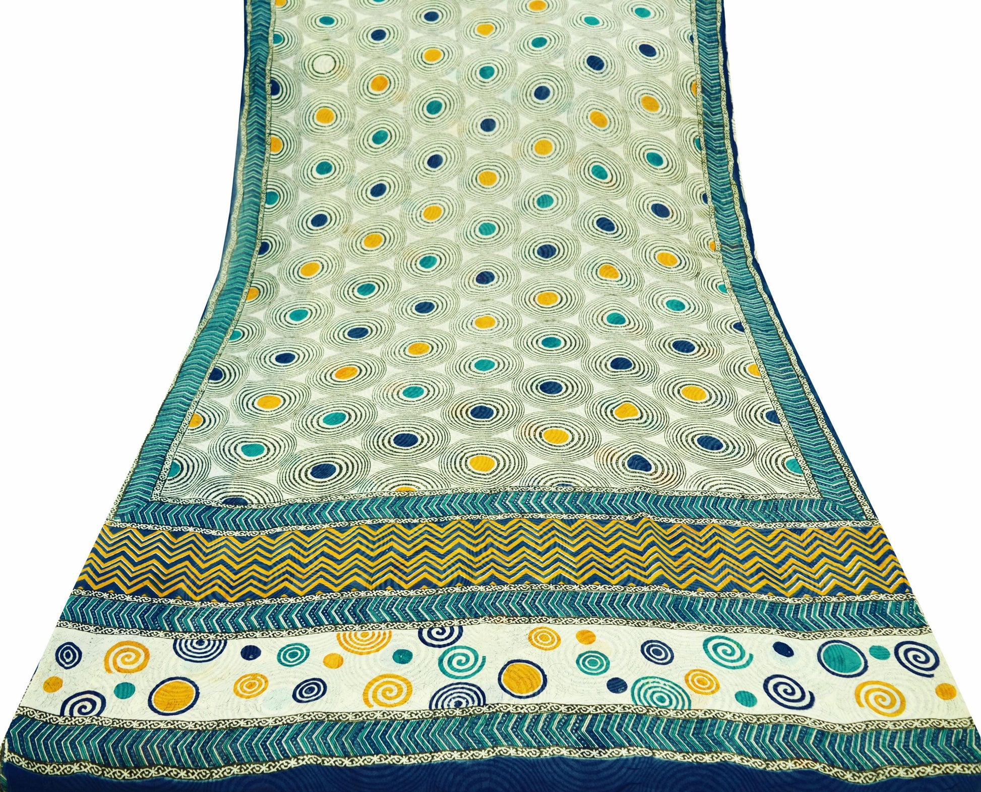 Indian Vintage Sari Ivory 100% Pure Georgette Silk Printed Sarees 5Yd Craft Fabric Sewing Soft Sari Dress Making/Designing Quilting Wrapping