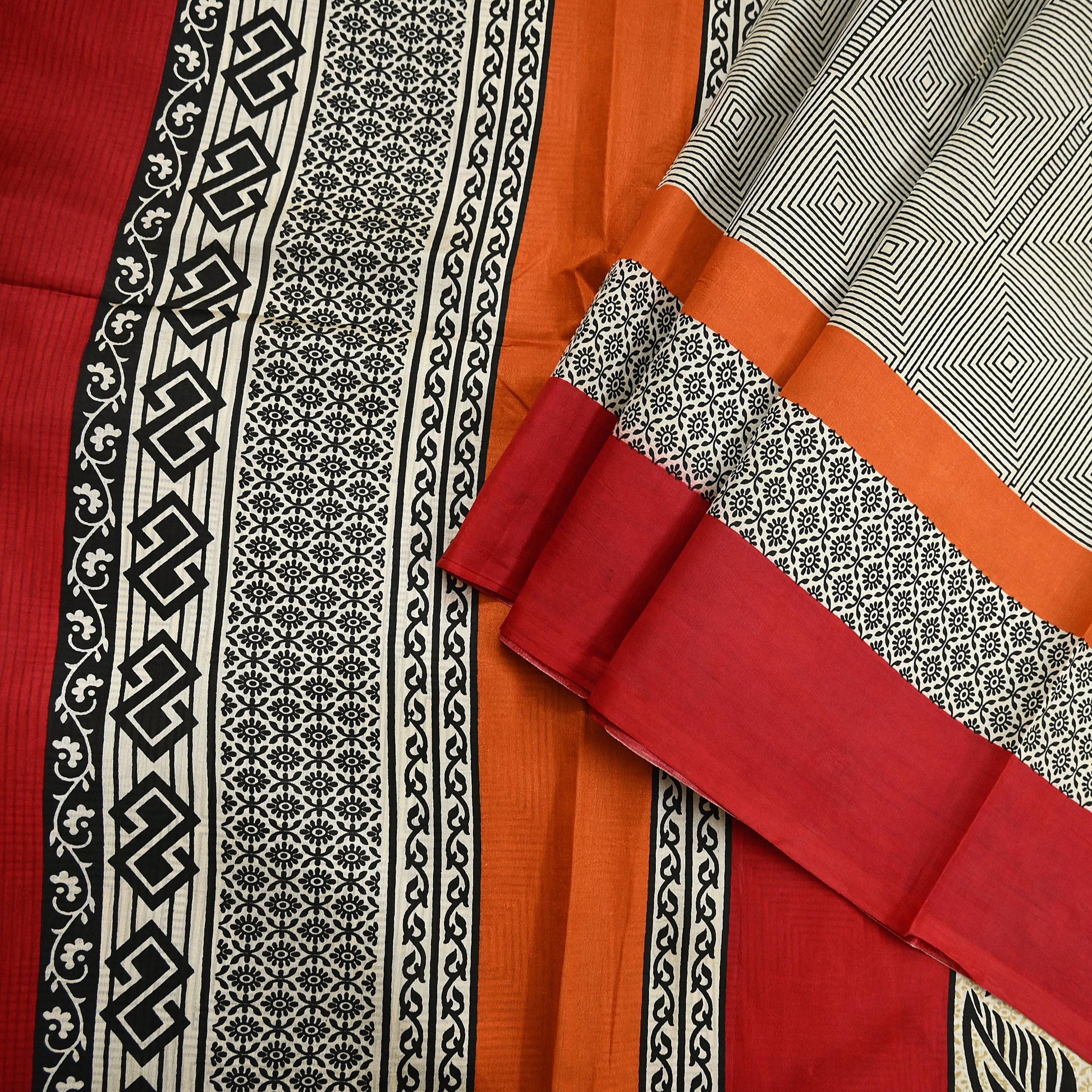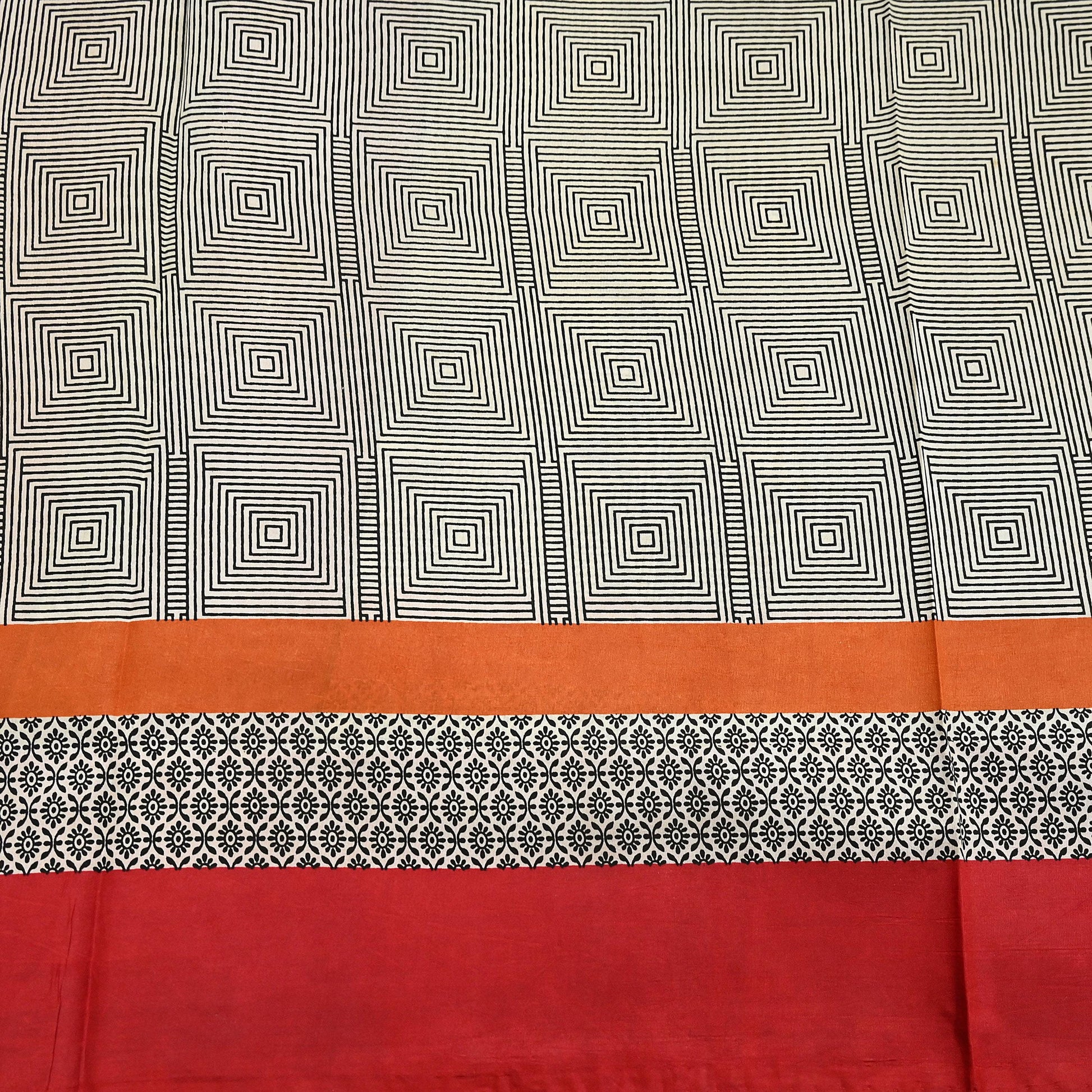 Nice Geometric Design With Printed Work On ivory & Black Color Base Fabric Is Really Enhancing The Beauty Of The Saree.
