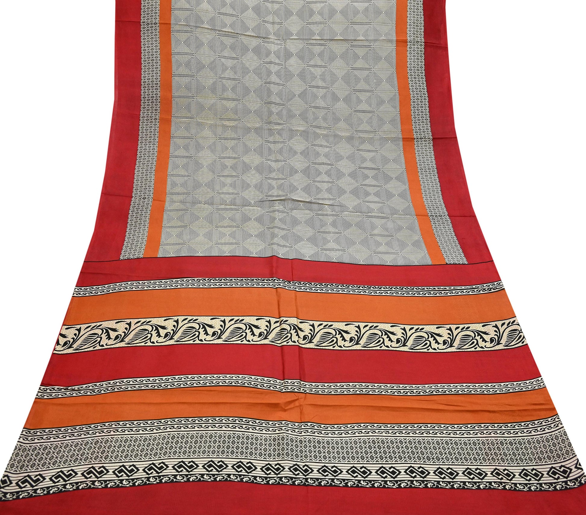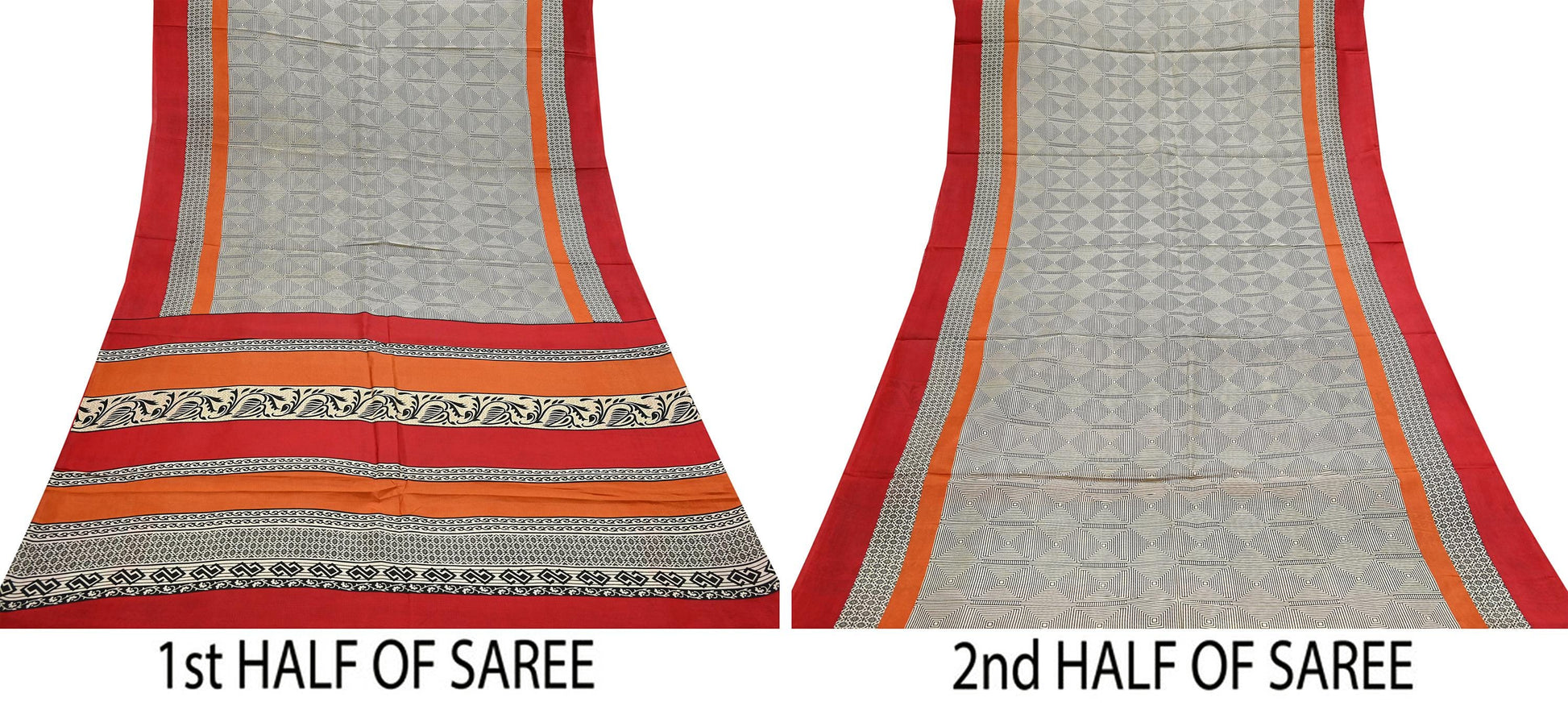 Indian Vintage Sari Ivory & Black Printed Pure Silk Sarees 5yd Sewing Craft Fabric DressMaking Soft Wrap Upcycle Quilting Crafting Used