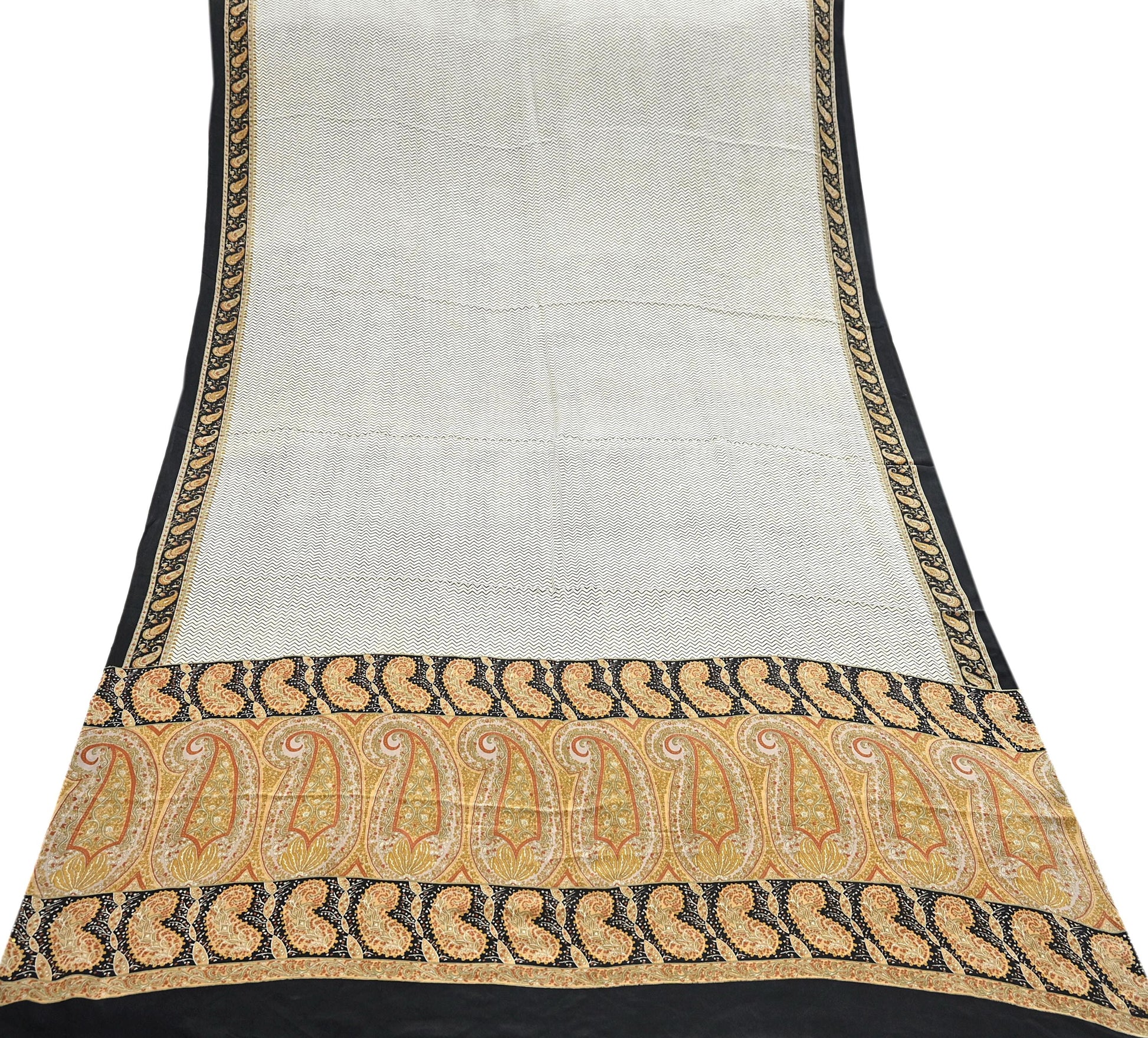 🔹This unique vintage Ivory & black Colored Printed Pure Crepe Silk Saree Fabric.