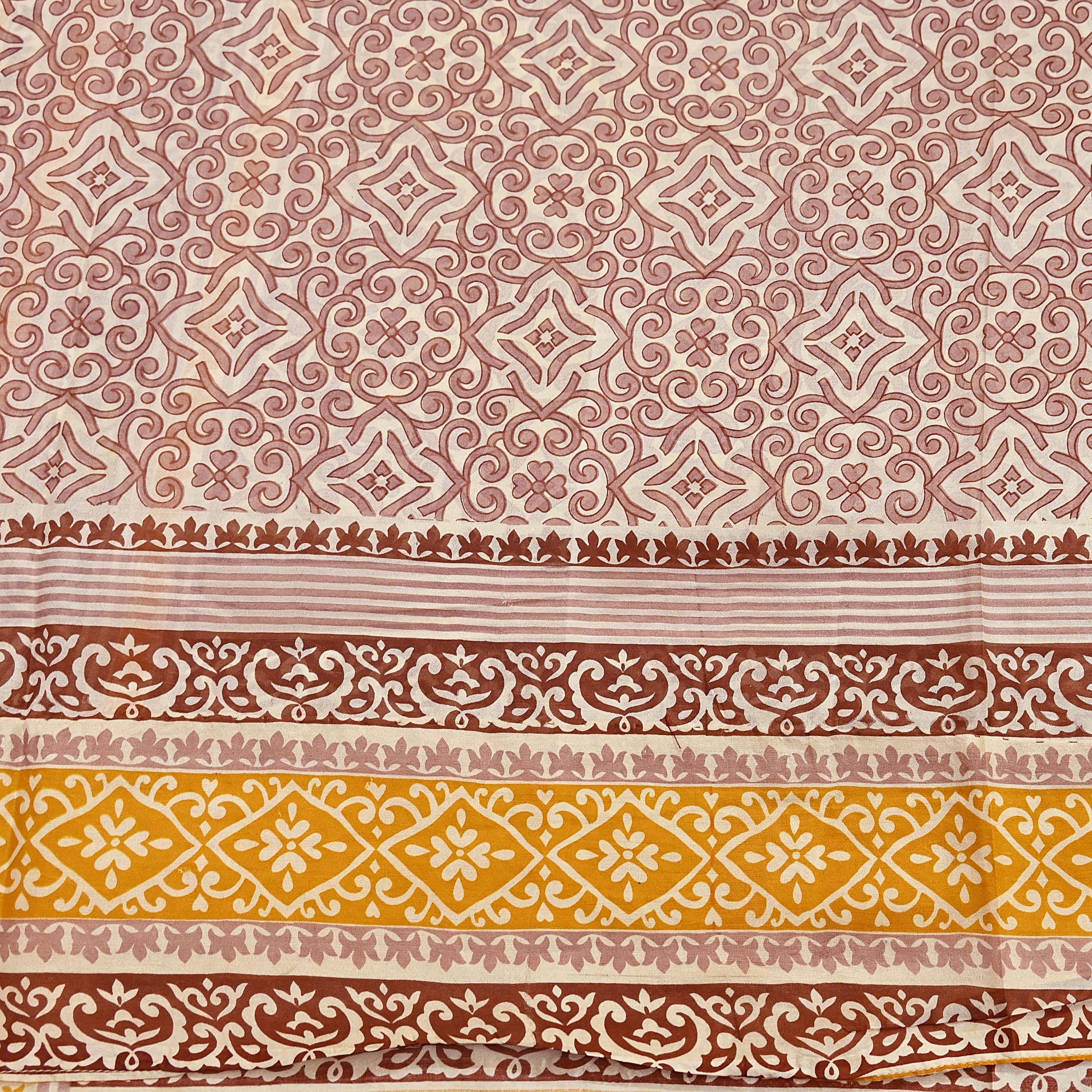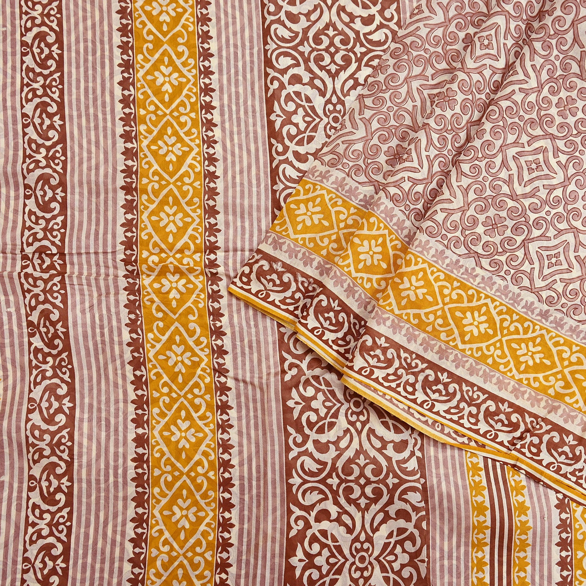 Delicate floral print on a stunning Ivory, Mustard & Brown color base