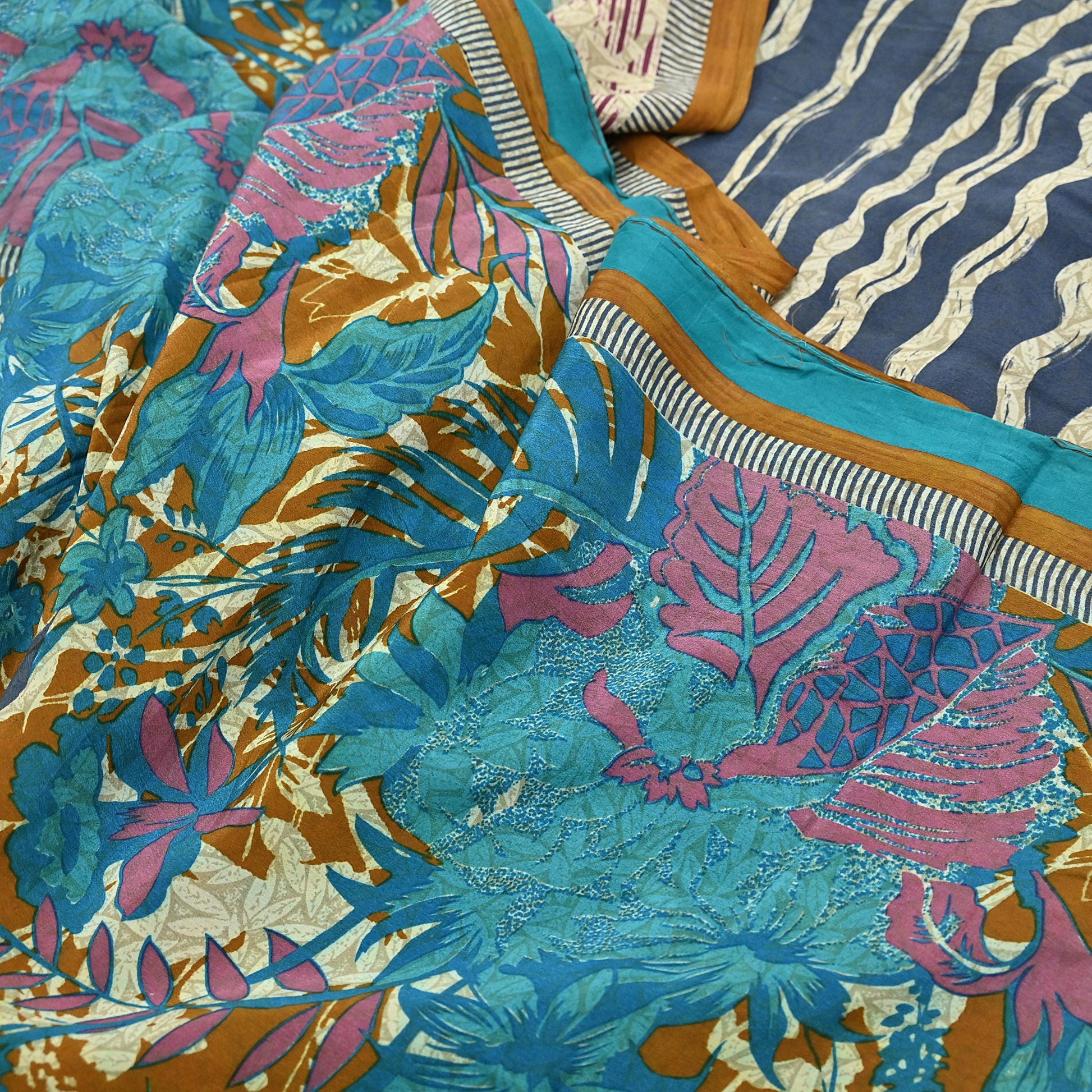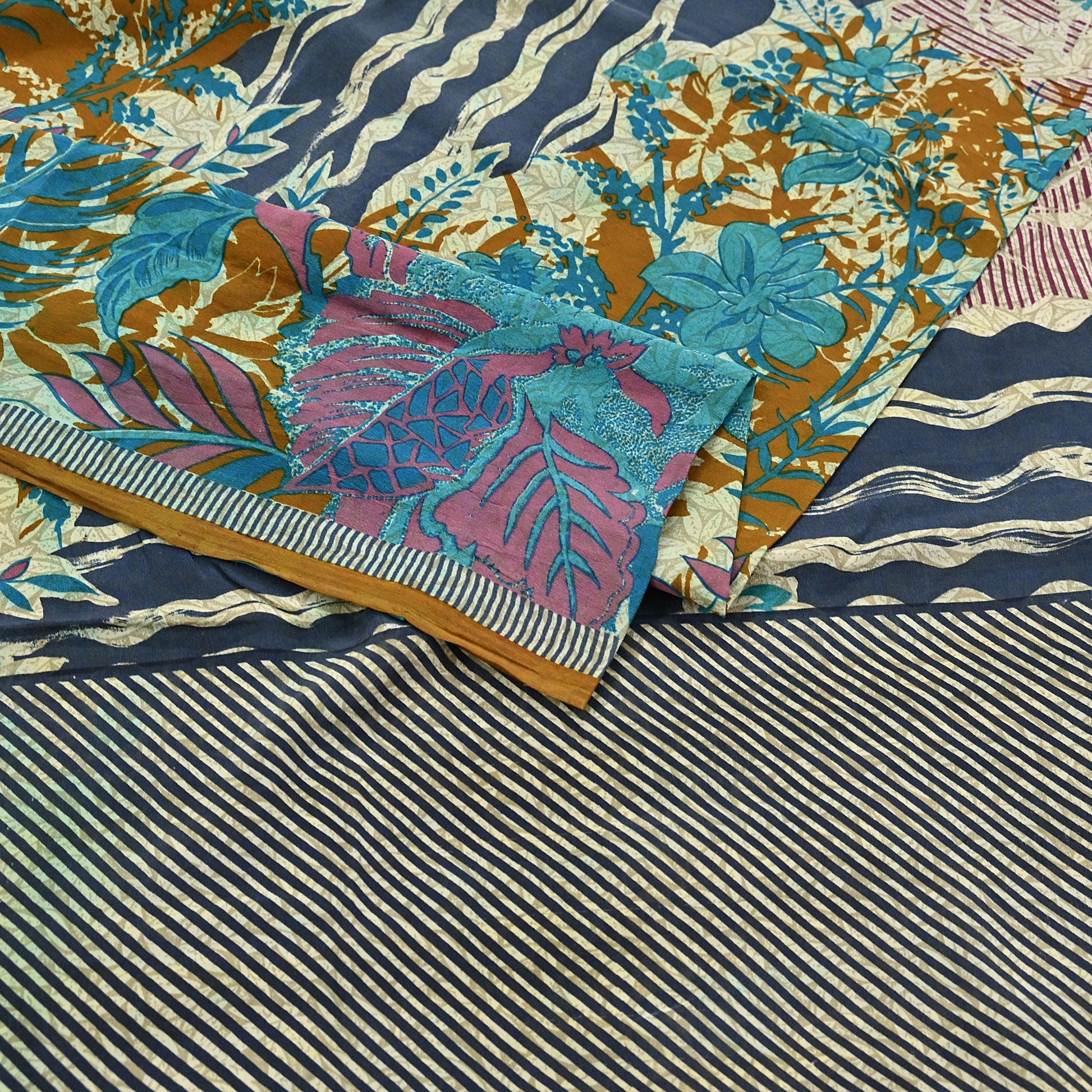 🔹This unique vintage Multi, Gray & Ivory Colored Printed Pure Crepe Silk Saree Fabric.
