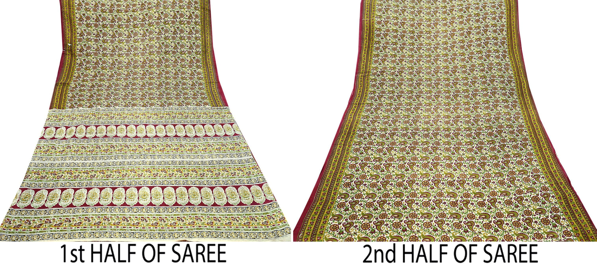*Beautiful Ivory & Maroon Colored 100% Pure Cotton Block Printed Sari.