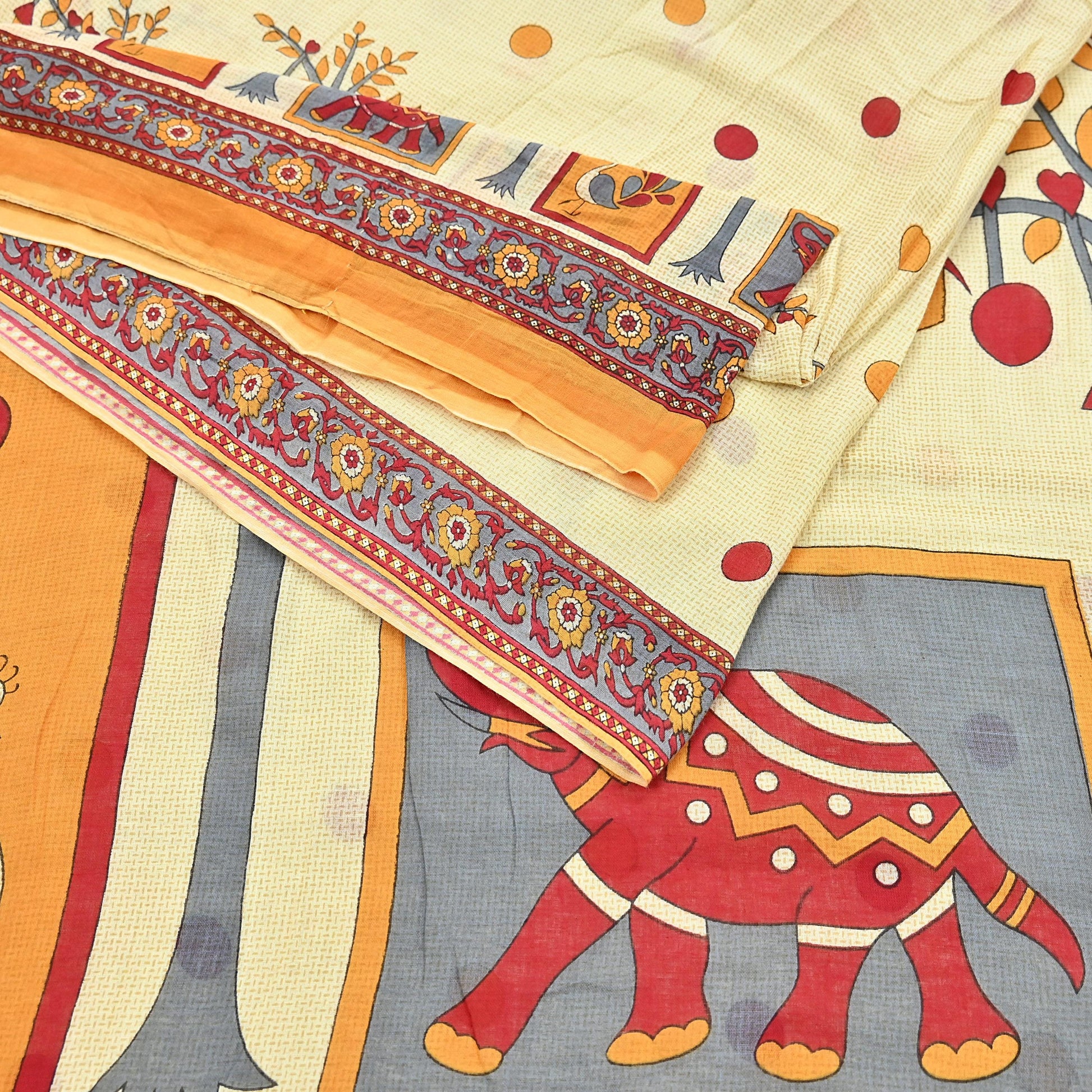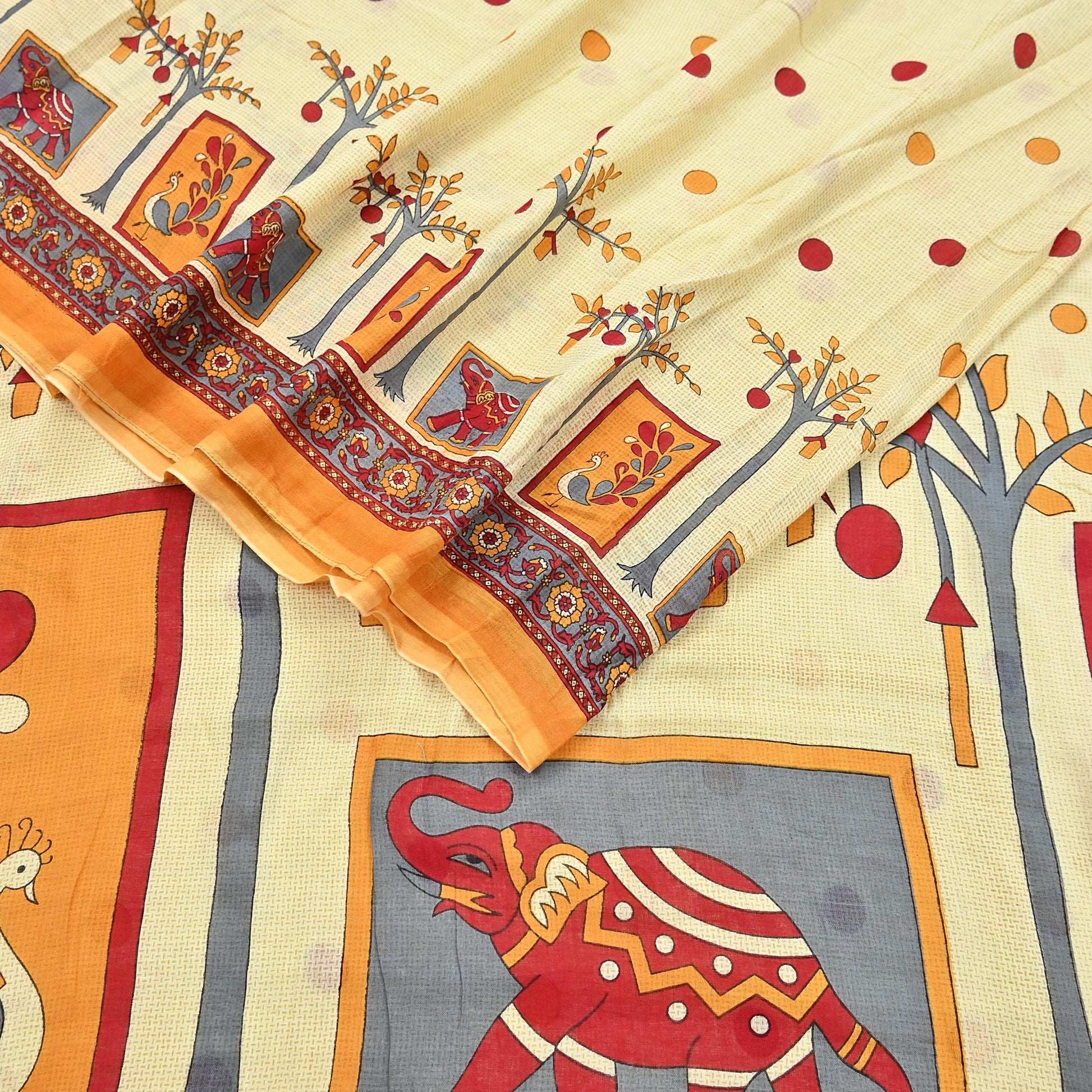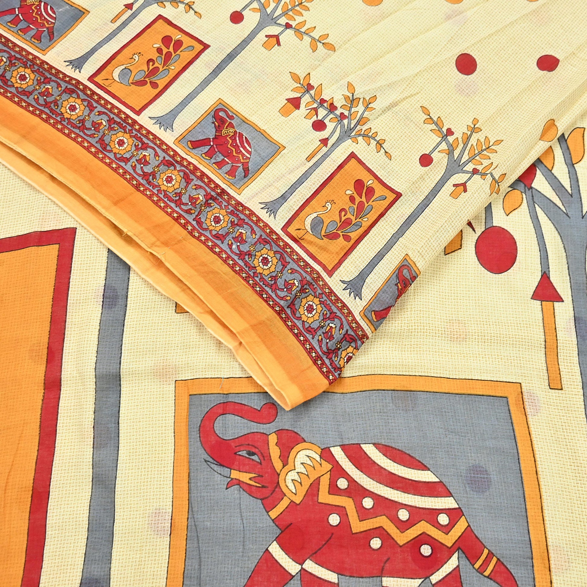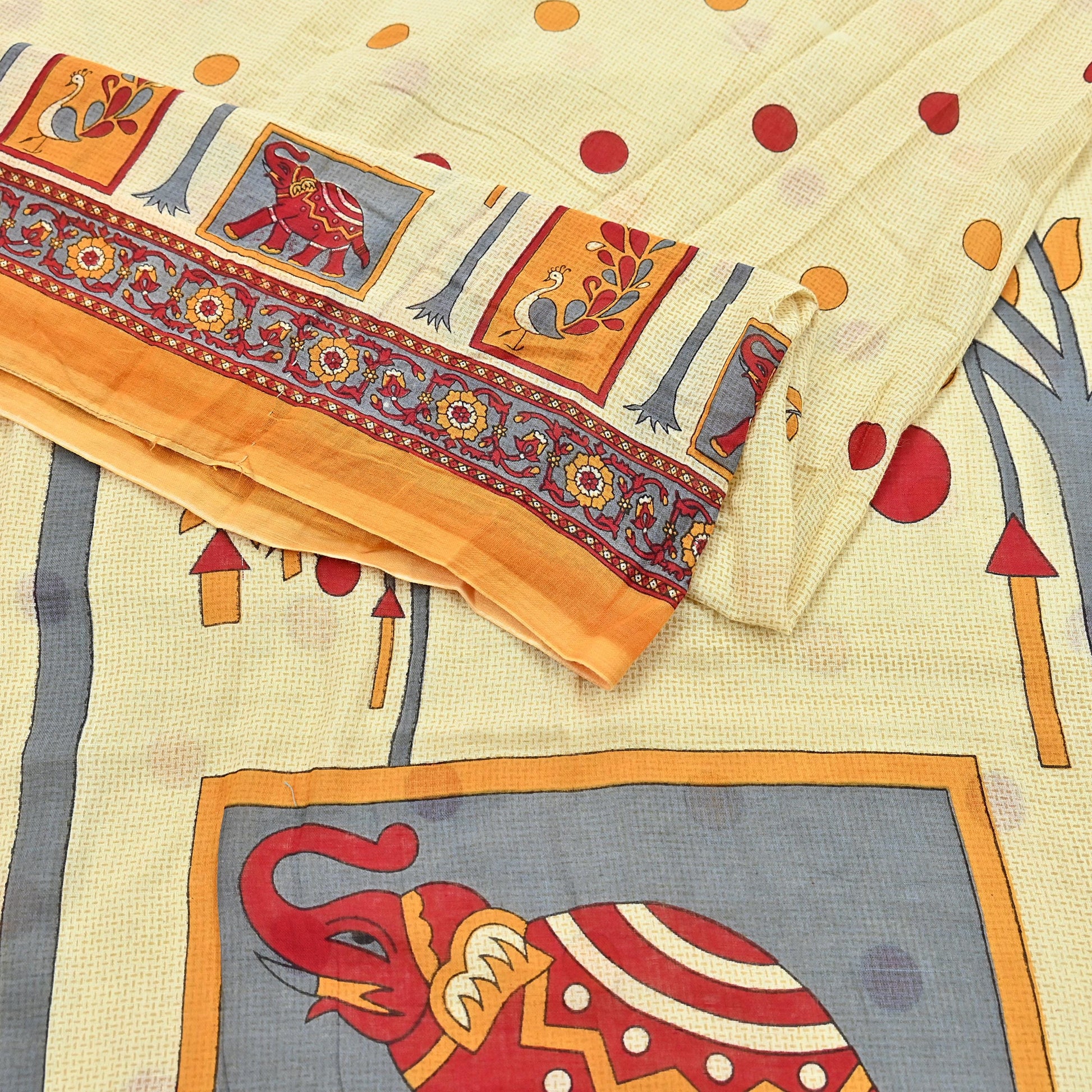 *Saree Has Beautiful Pallu & Border Has Printed Elephants & peacock Design.