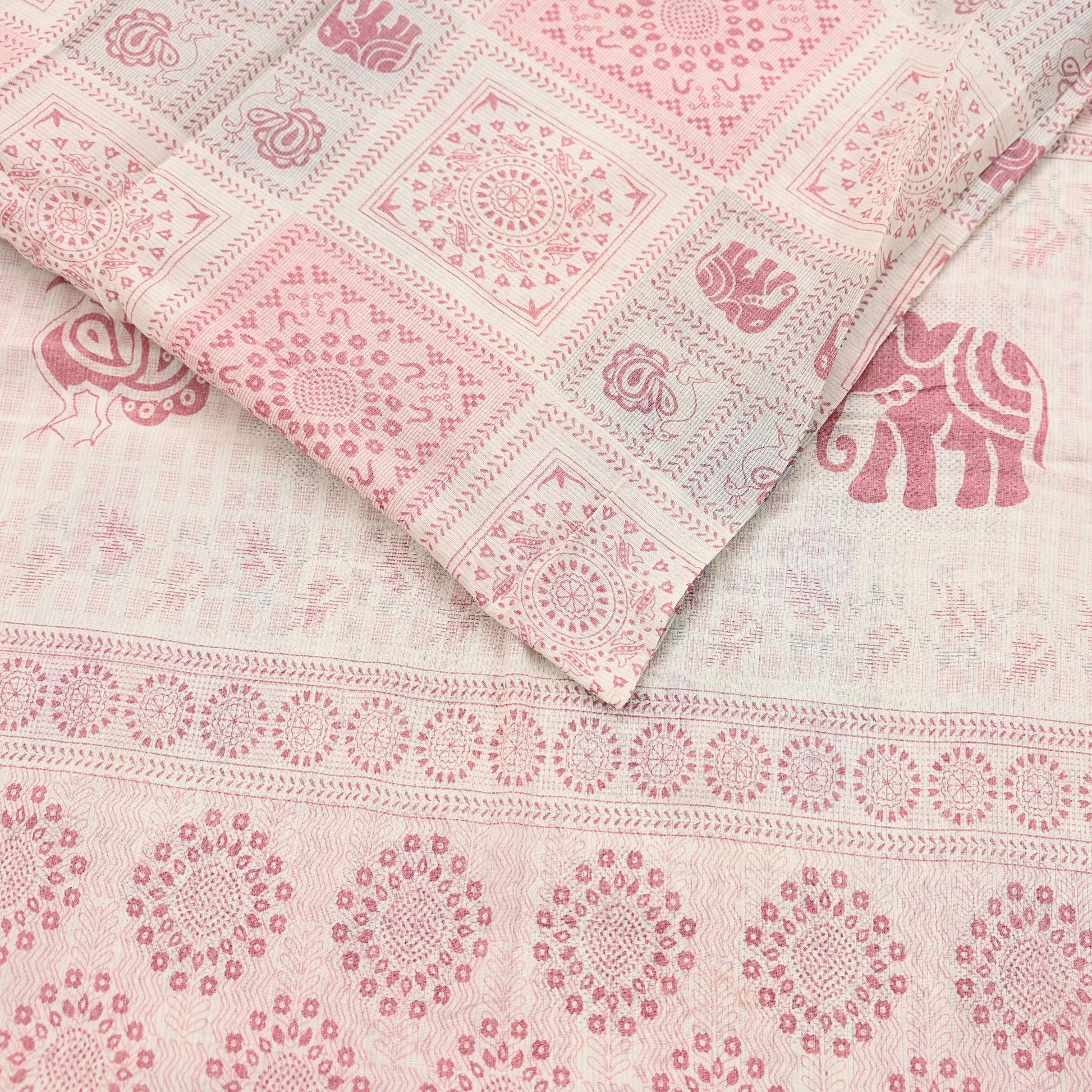 *Beautiful Ivory Colored Printed Pure Cotton Saree.