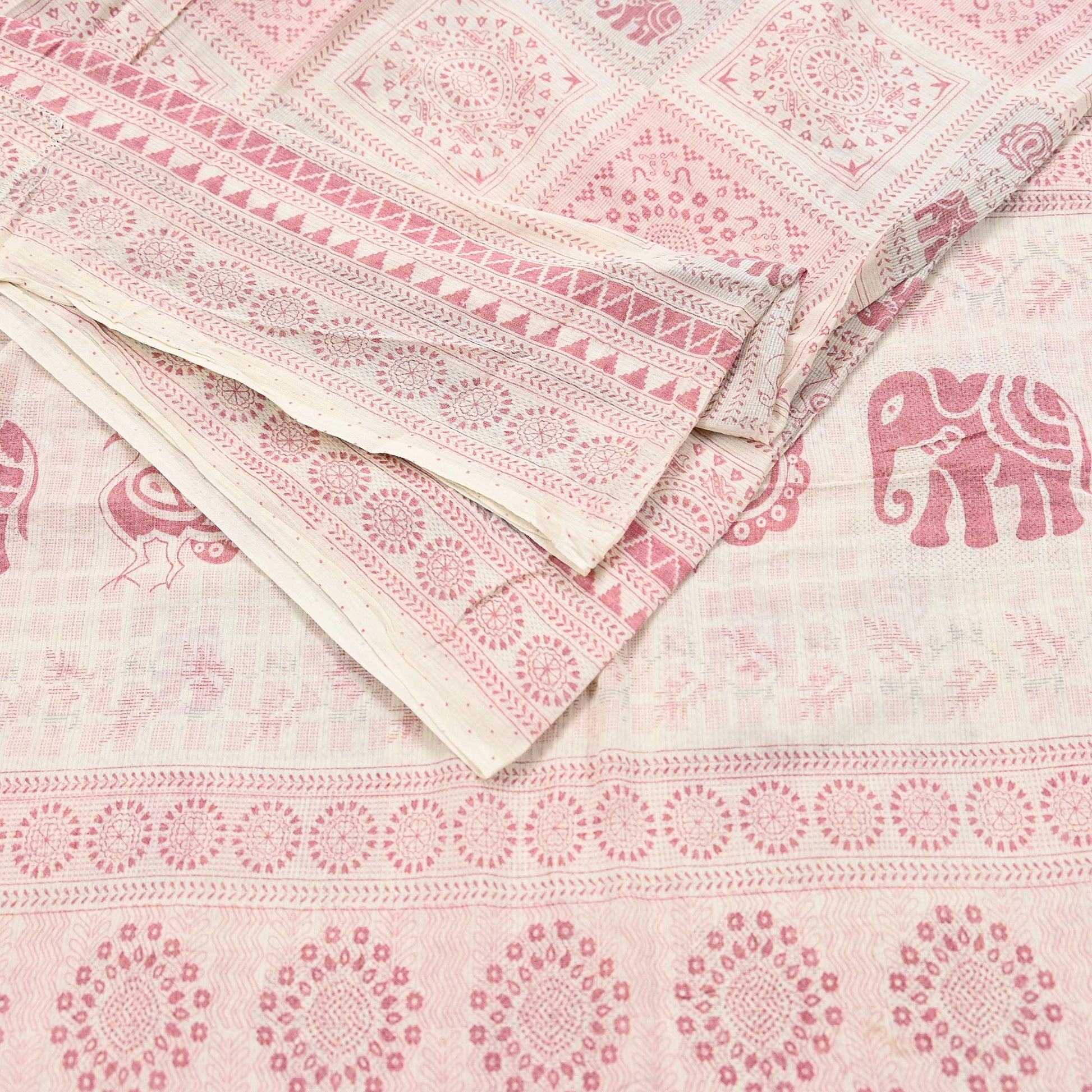 Indian Vintage Sari Ivory Printed Pure Cotton Sarees 5Yd Craft Fabric Soft Sewing Sarong Wrap Boho Upcycle quilting Dress making