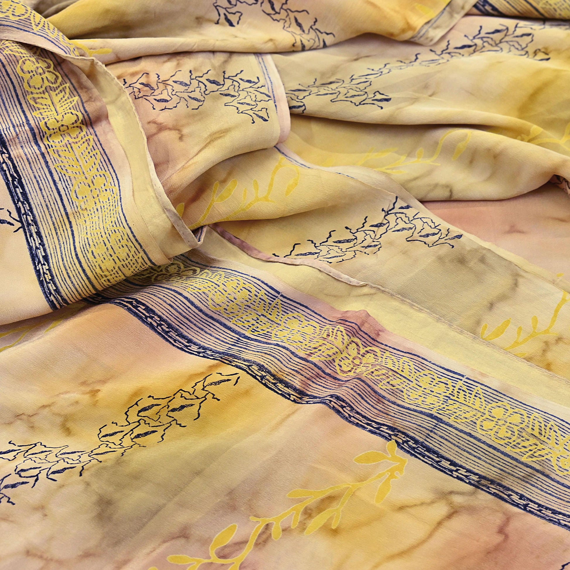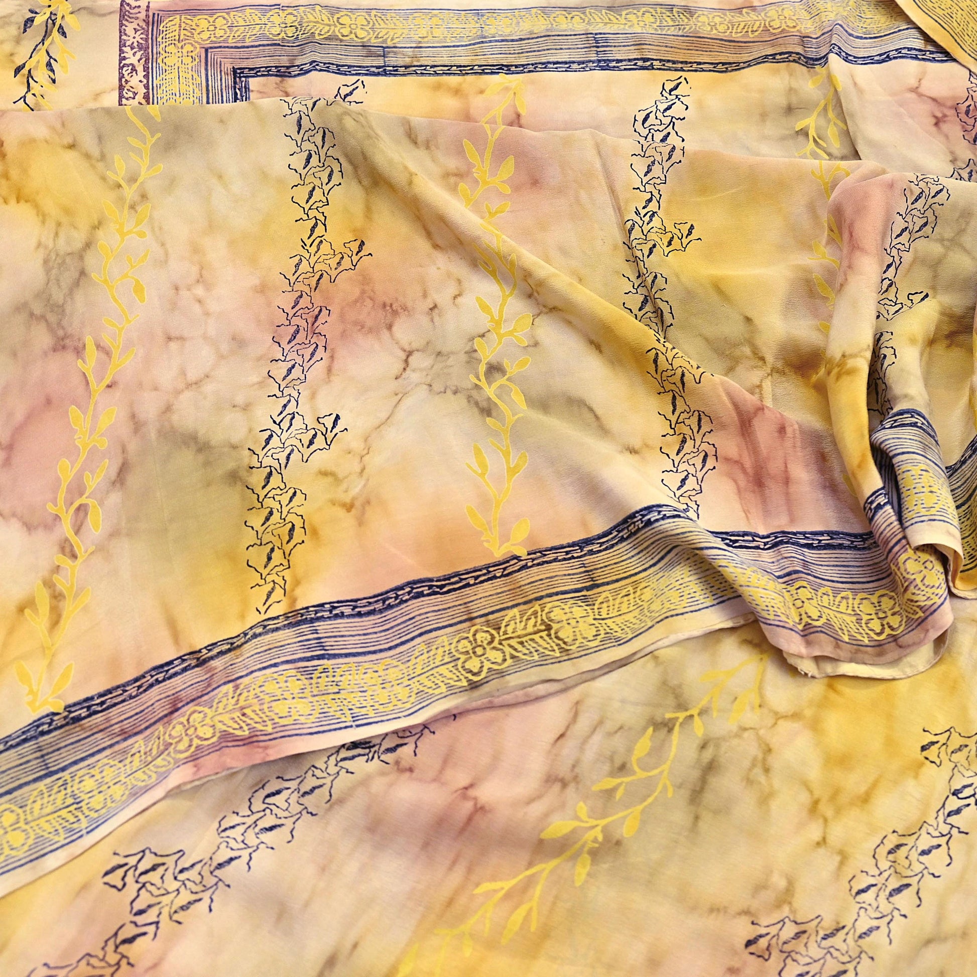 🔹This unique vintage Ivory & Yellow Colored Printed Pure Crepe Silk Saree Fabric.