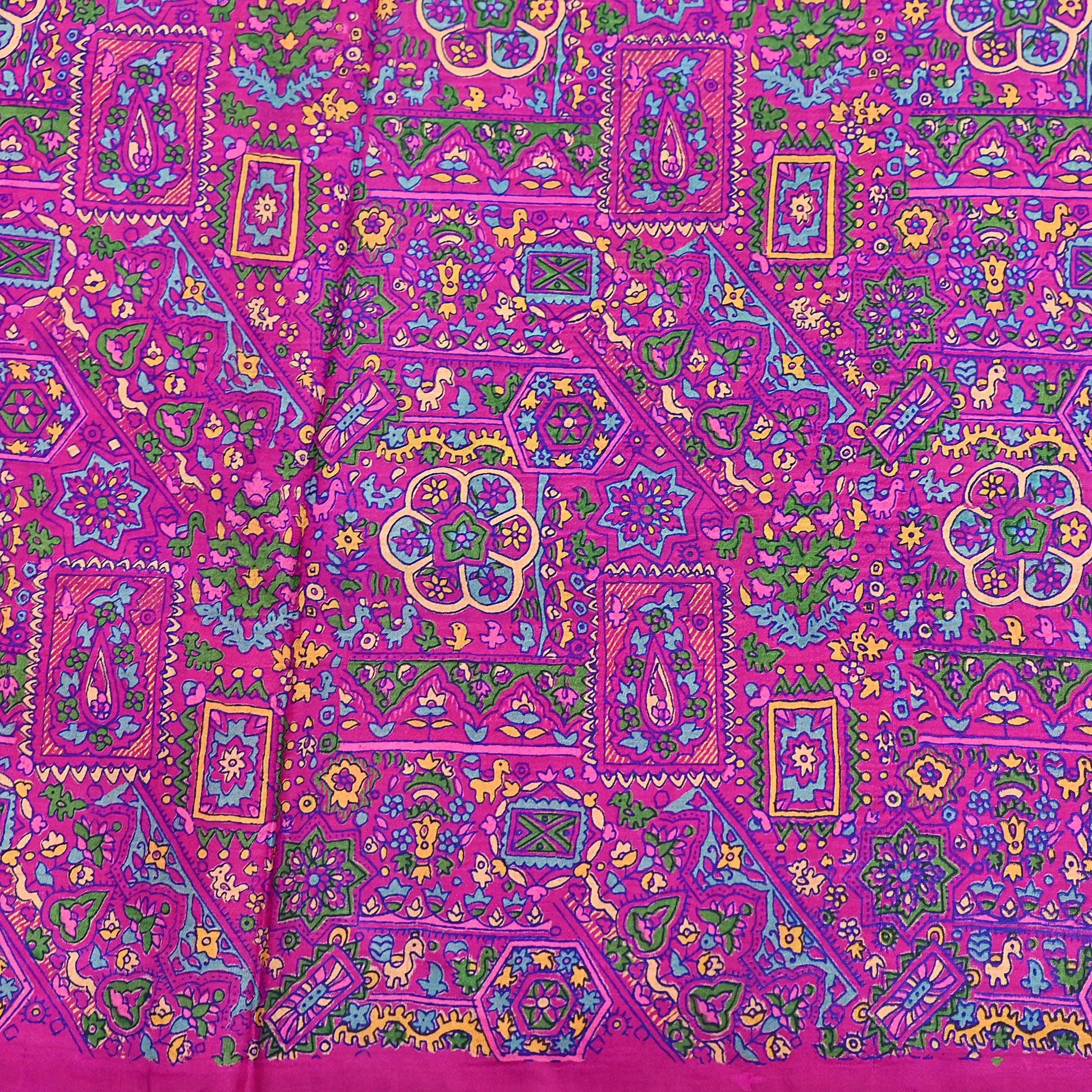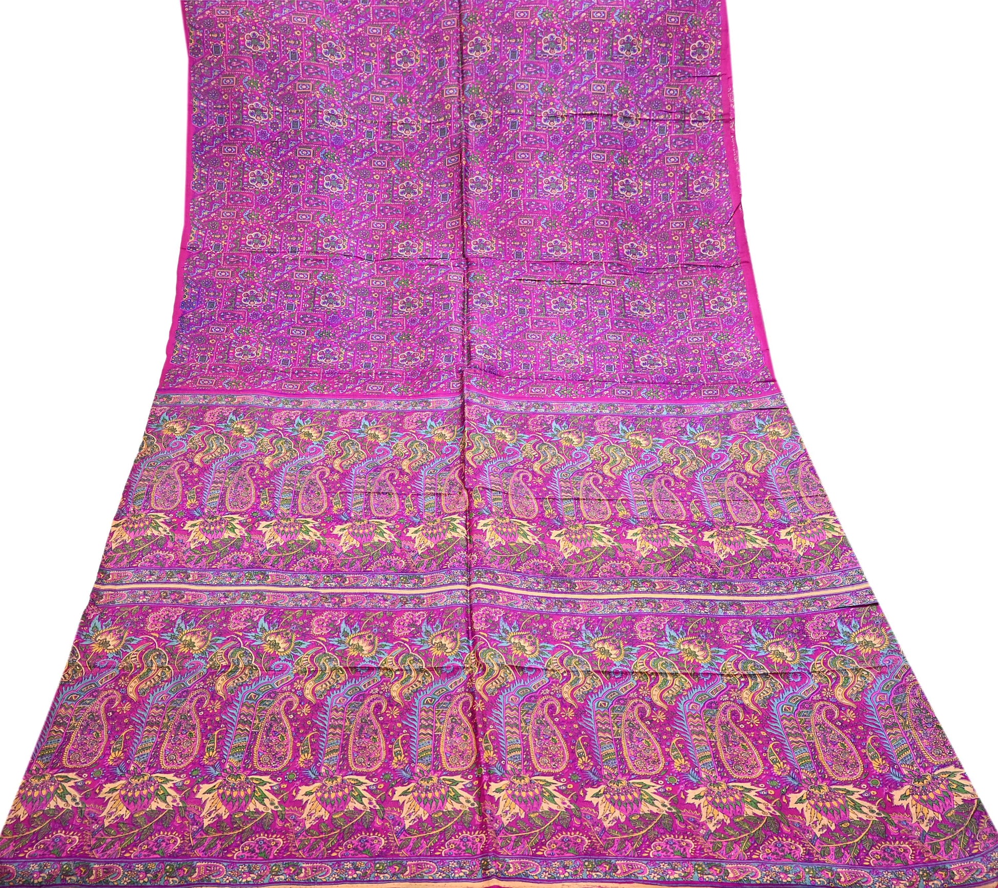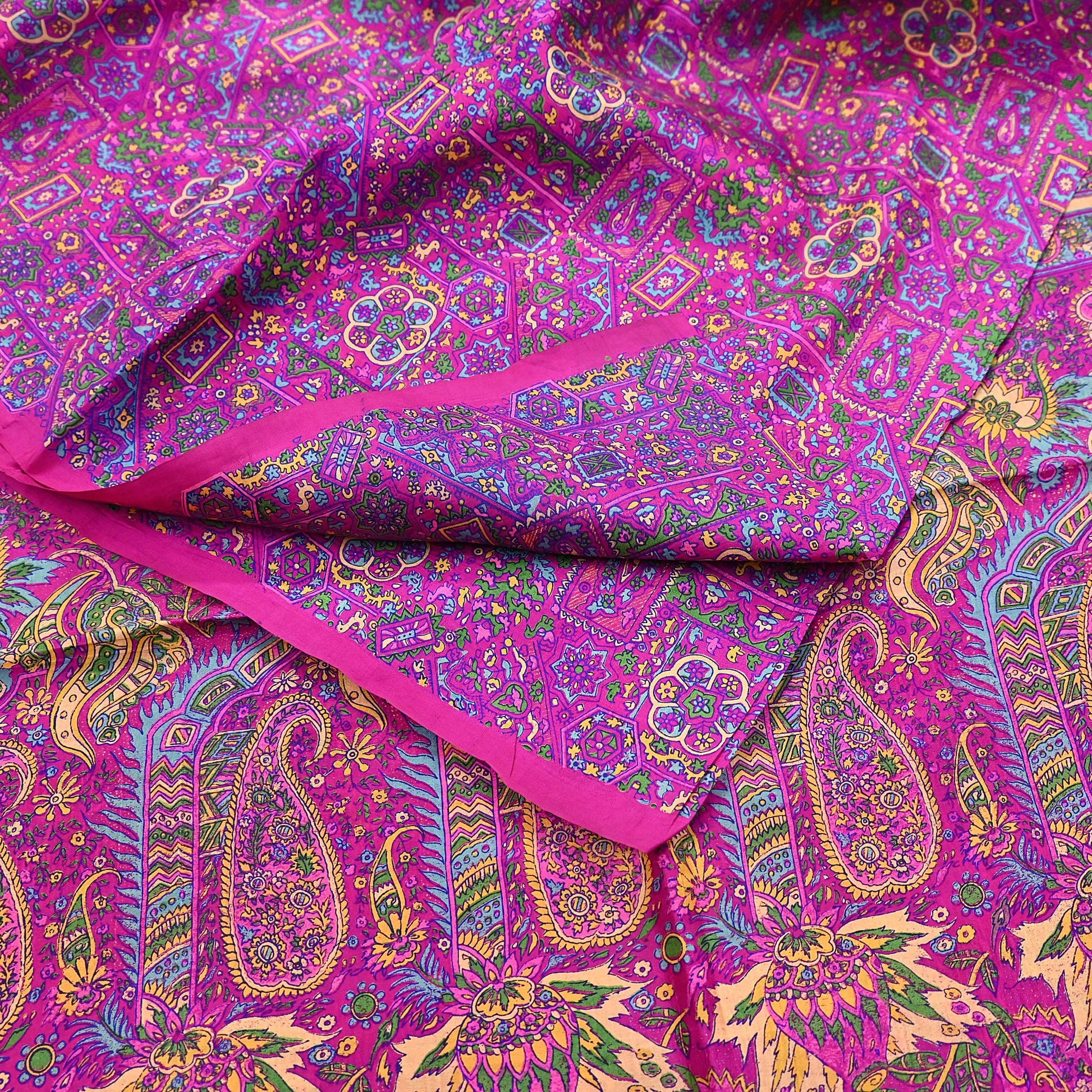 Indian Vintage Sari Magenta 100% Pure Silk Printed Saree Craft Fabric 5yd Sewing Dress Making Soft Wrap Quilting Crafting Upcycle