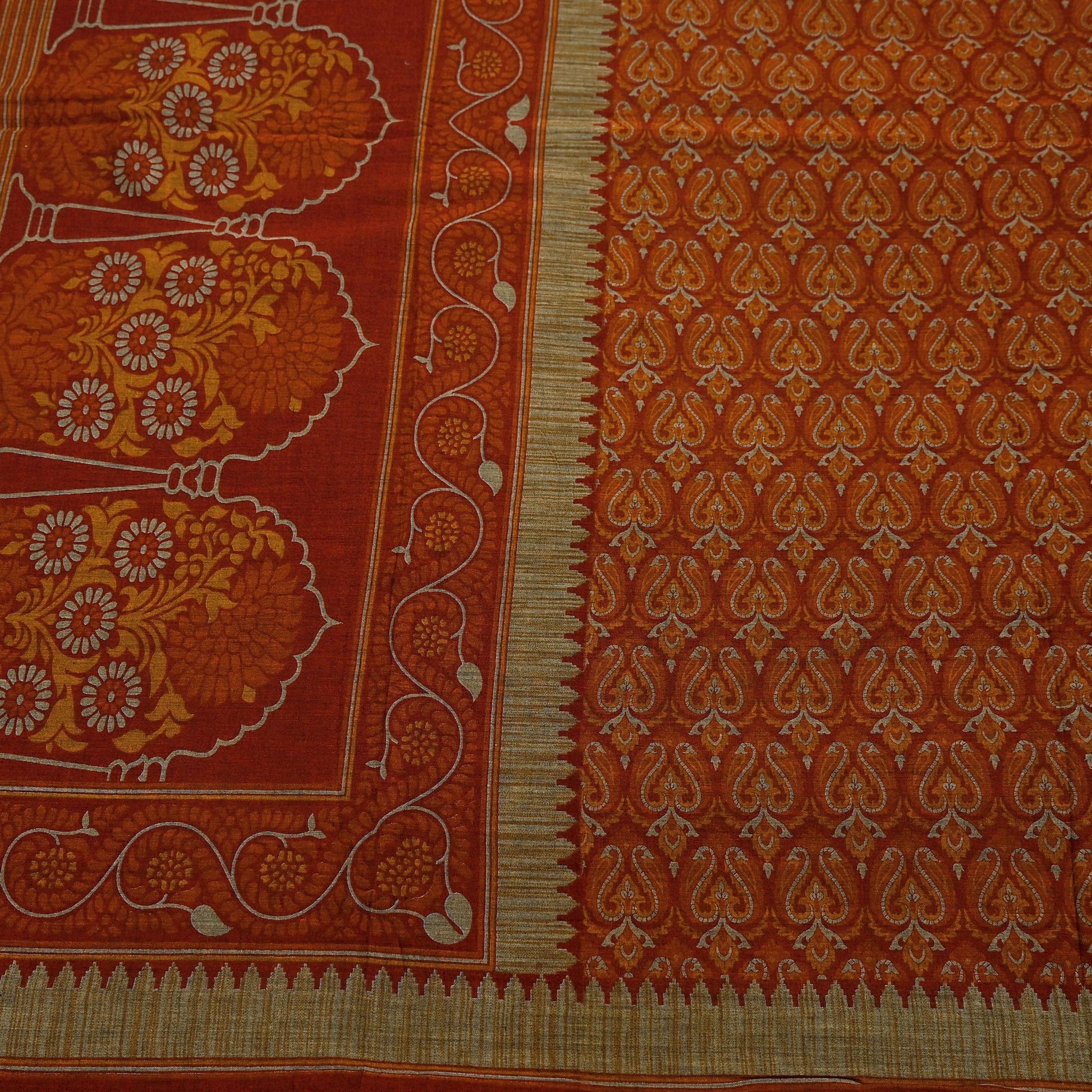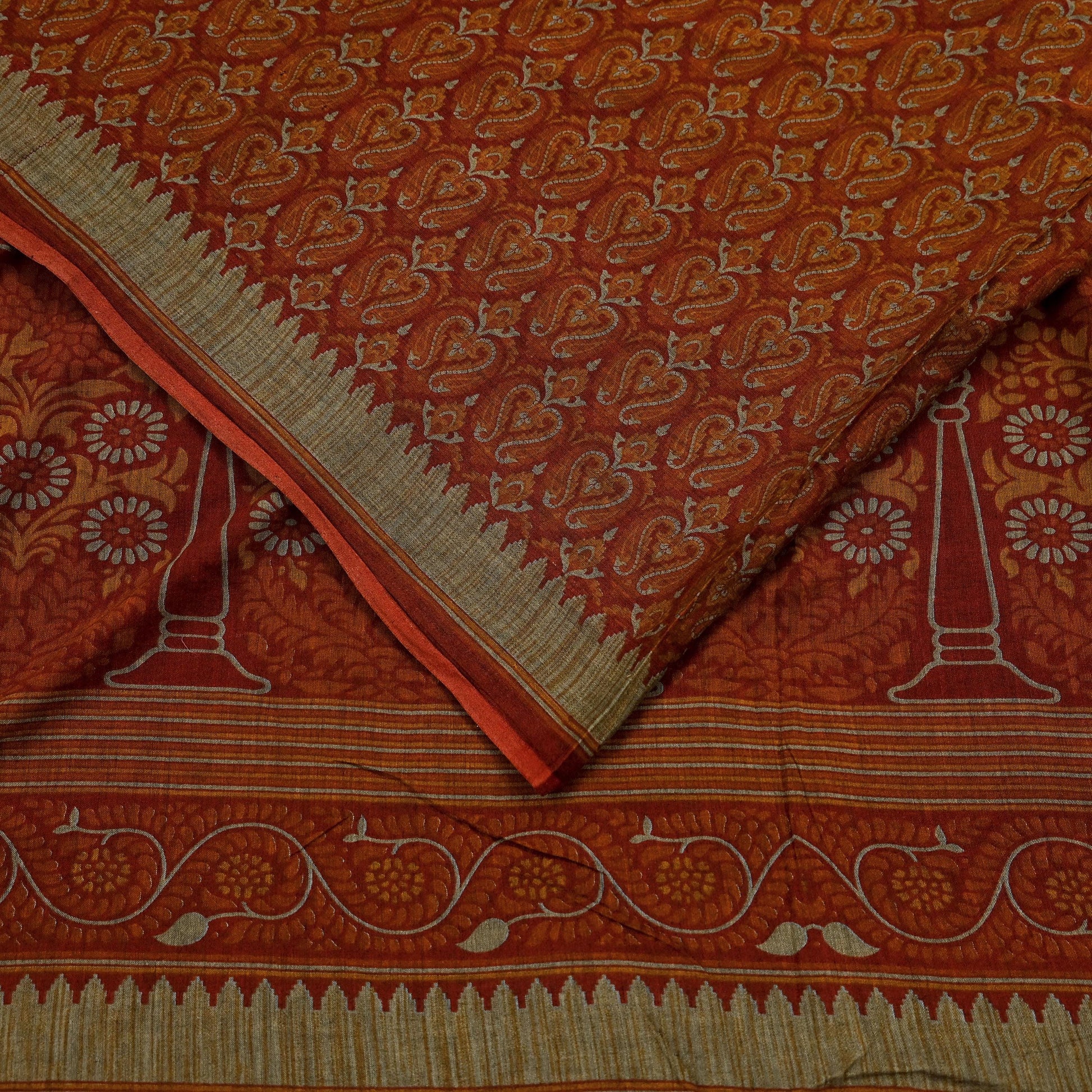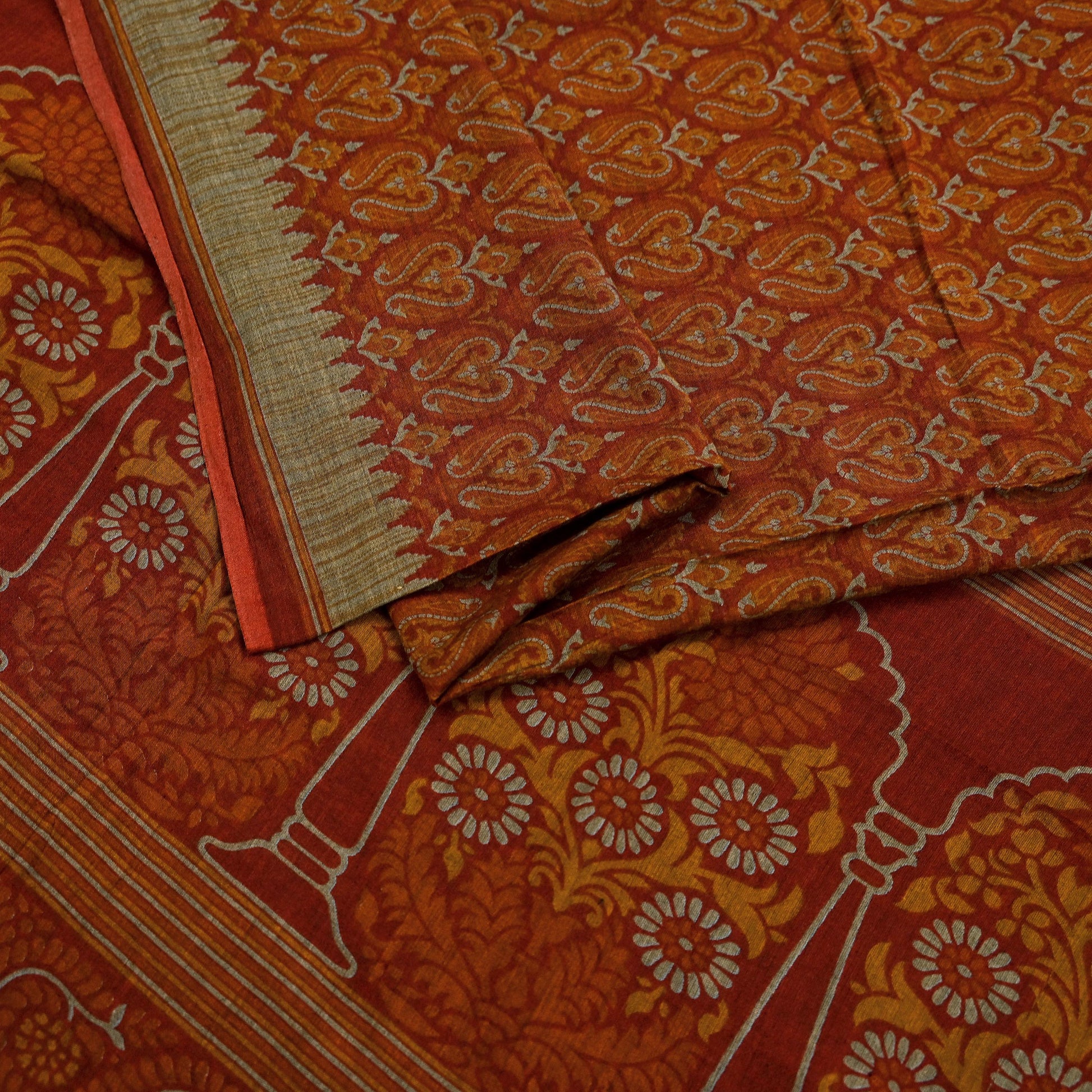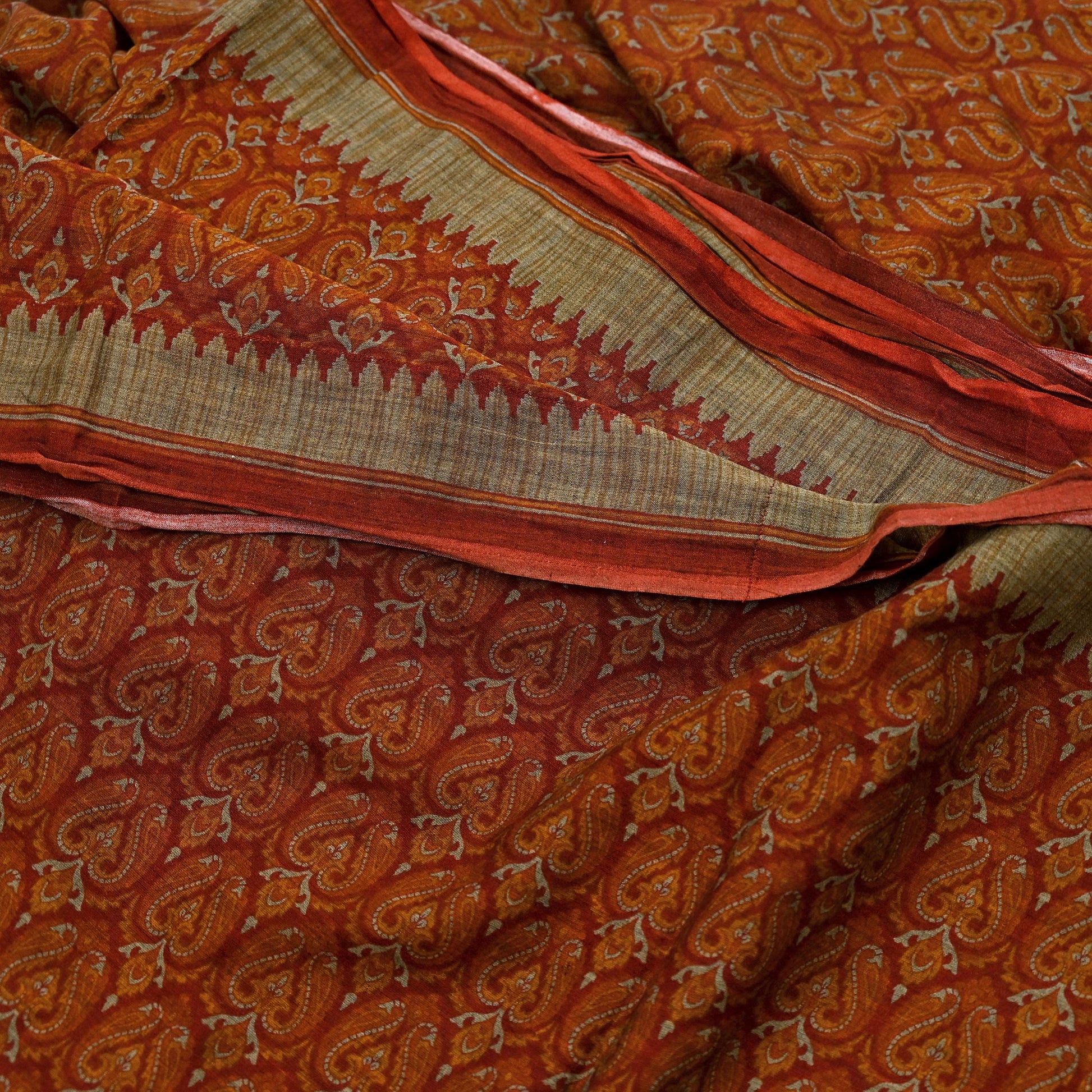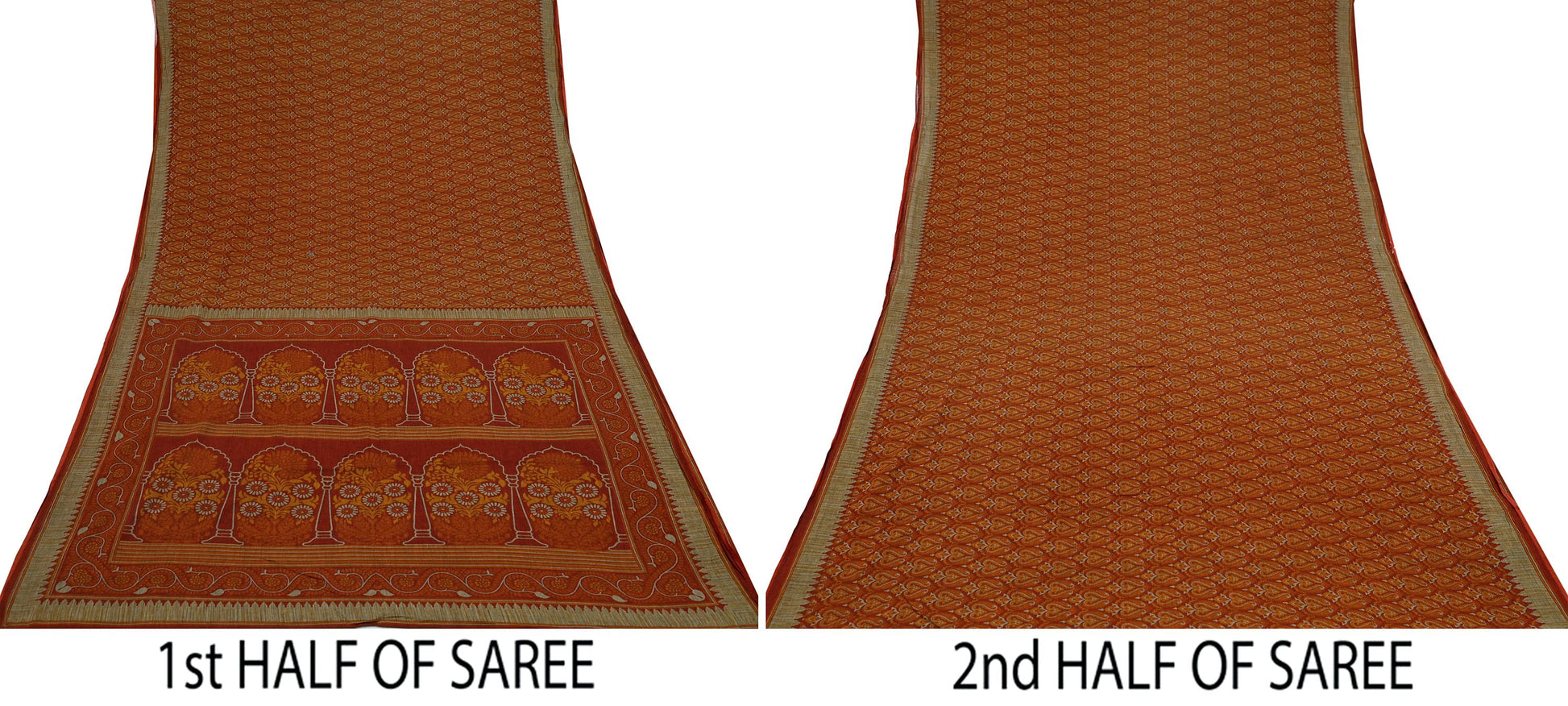 *Vintage Maroon & Orange Colored 100% Pure Cotton Printed Sari.