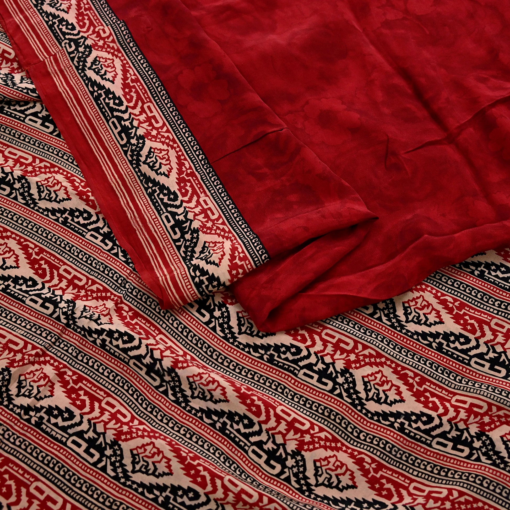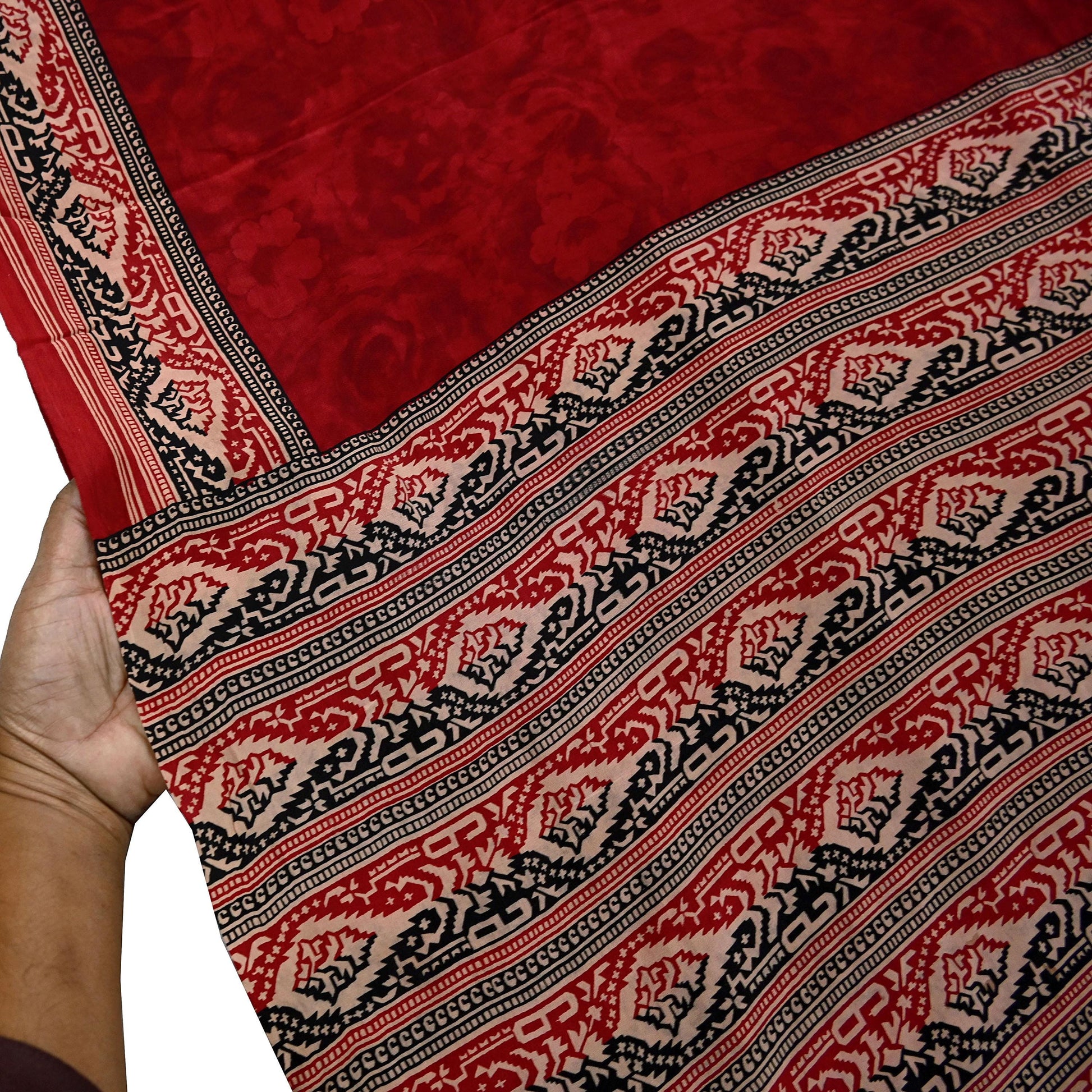 *This unique vintage Maroon Colored Block Printed Pure Crepe Silk Saree Fabric.