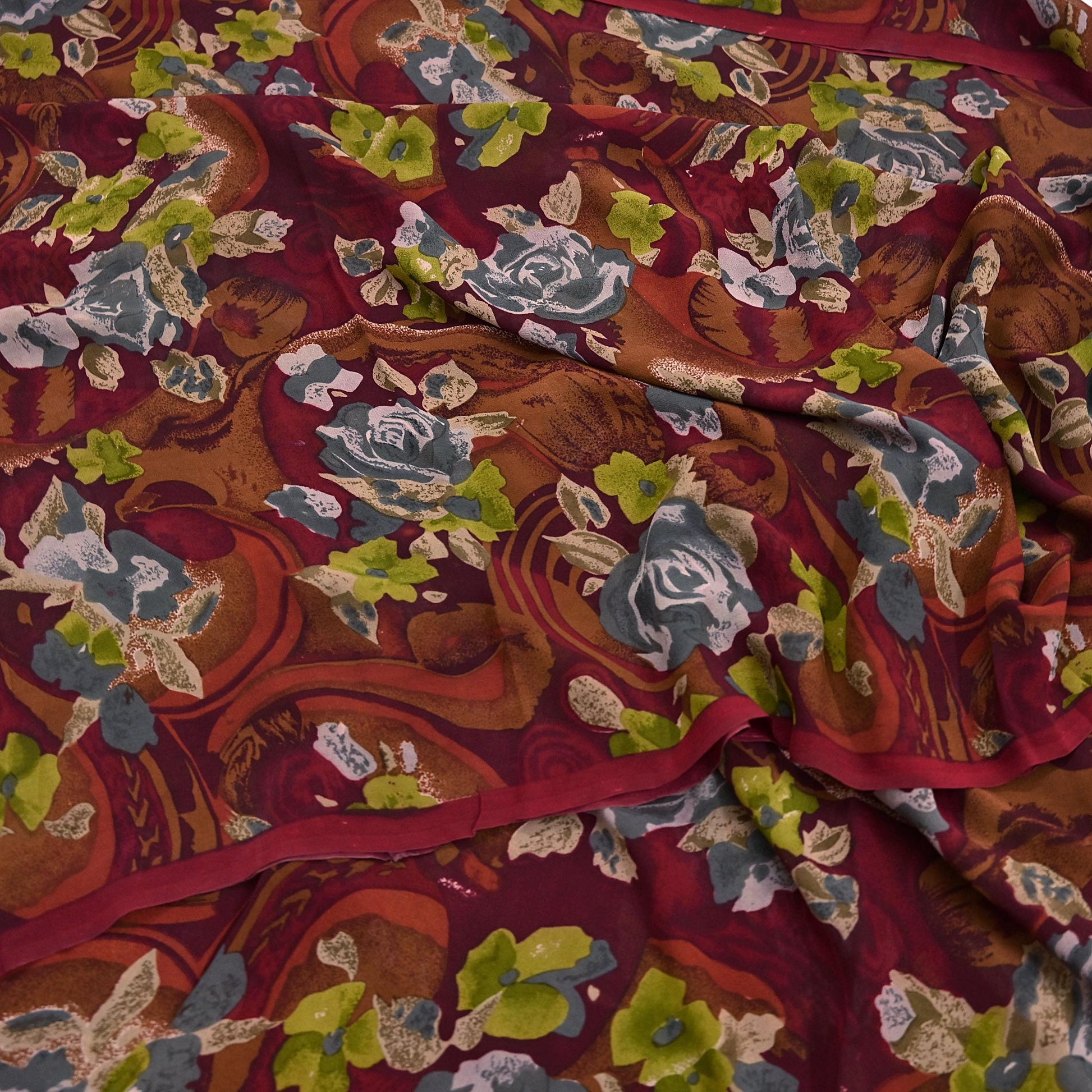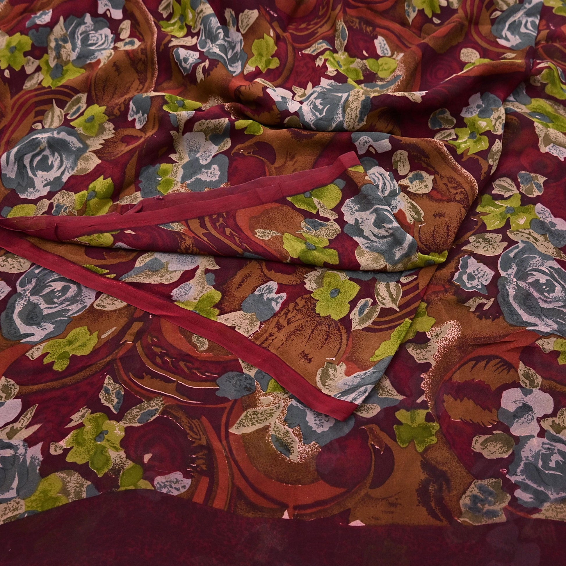 Indian Vintage Sari Maroon Pure Georgette Silk Printed Sarees 5Yd Craft Fabric Sewing Soft Light Dress Making/ Designing Quilting Crafting