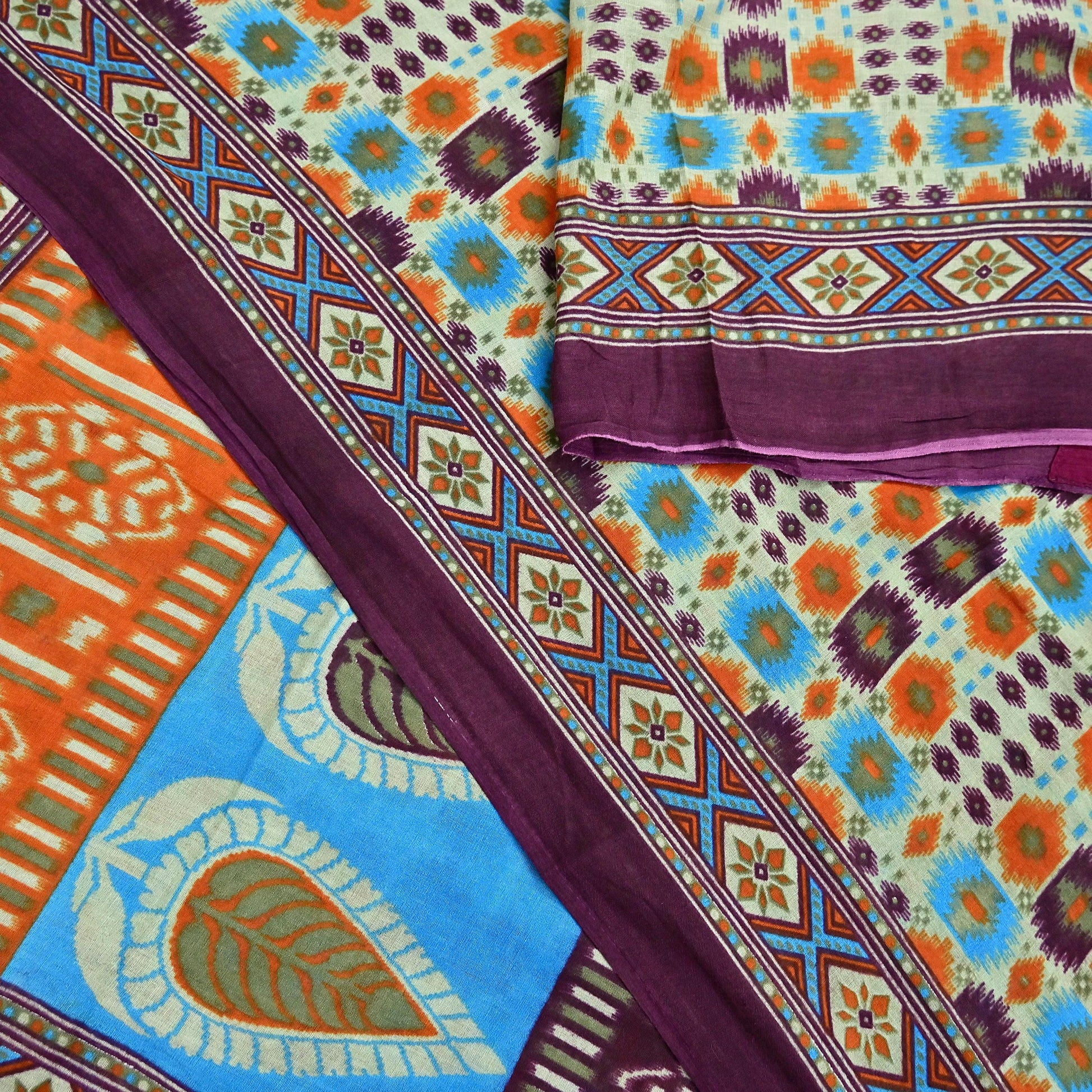 Indian Vintage Sari Multi Printed 100% Pure Cotton Saree Craft Fabric 5Yd Soft Sewing Sarong Wrap Boho Stripes Dress making Quilting