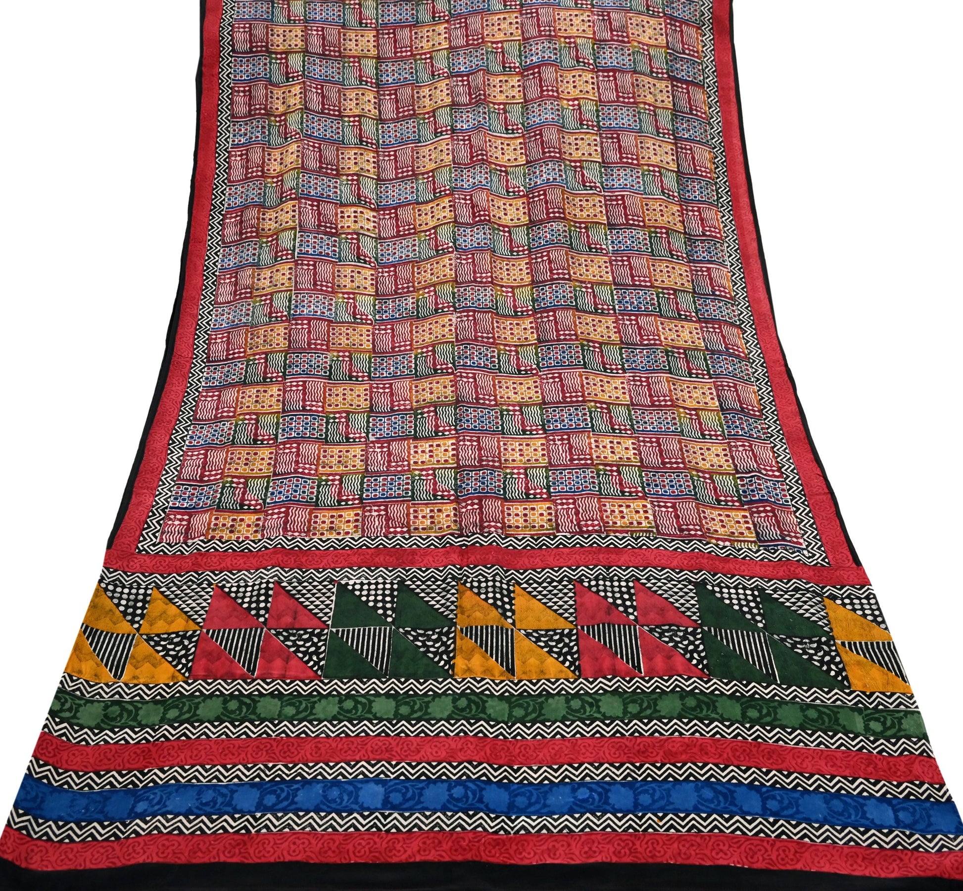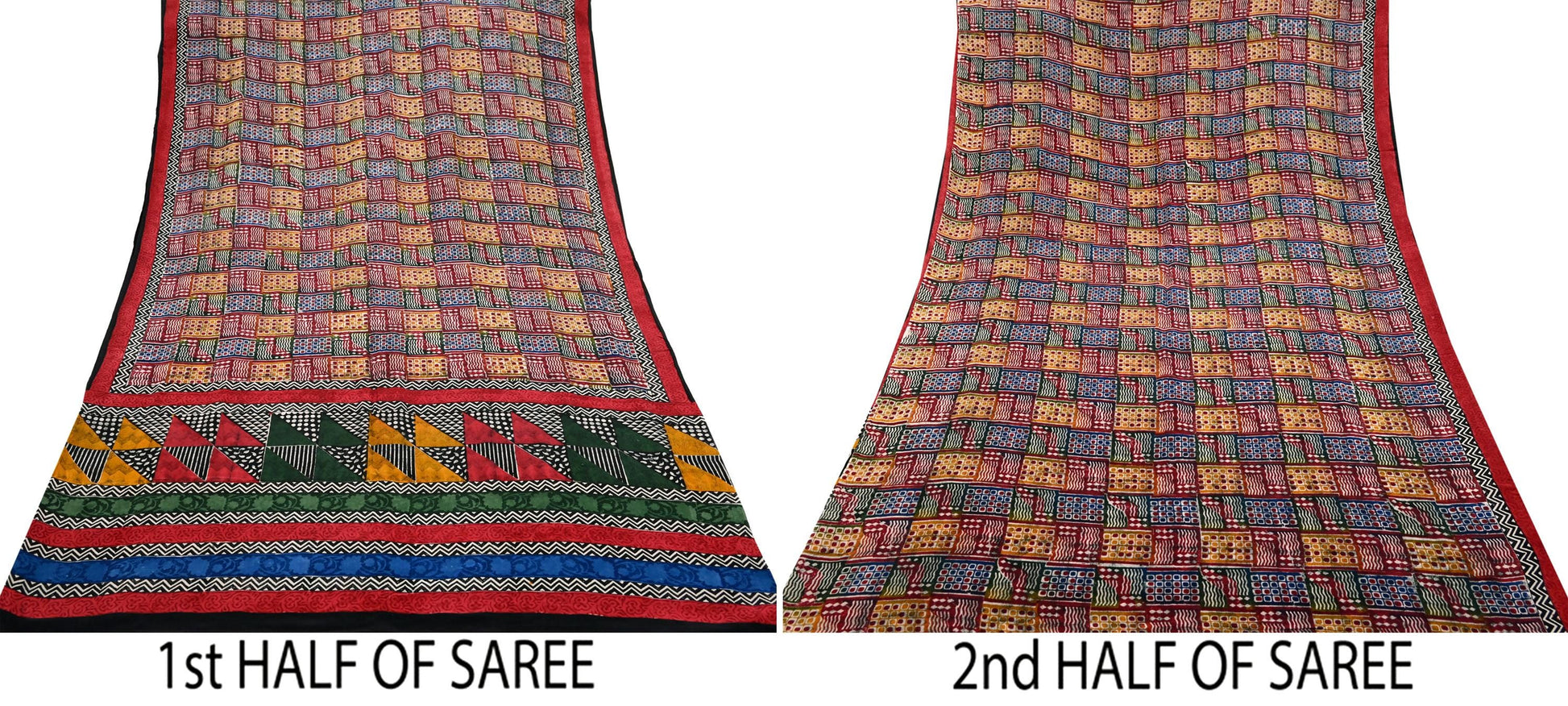 Indian Vintage Sari Multi Pure Crepe Silk Printed Saree 5yard Sewing Ethnic Wrap Craft Fabric Dressmaking Crafting Upcycle Quilting