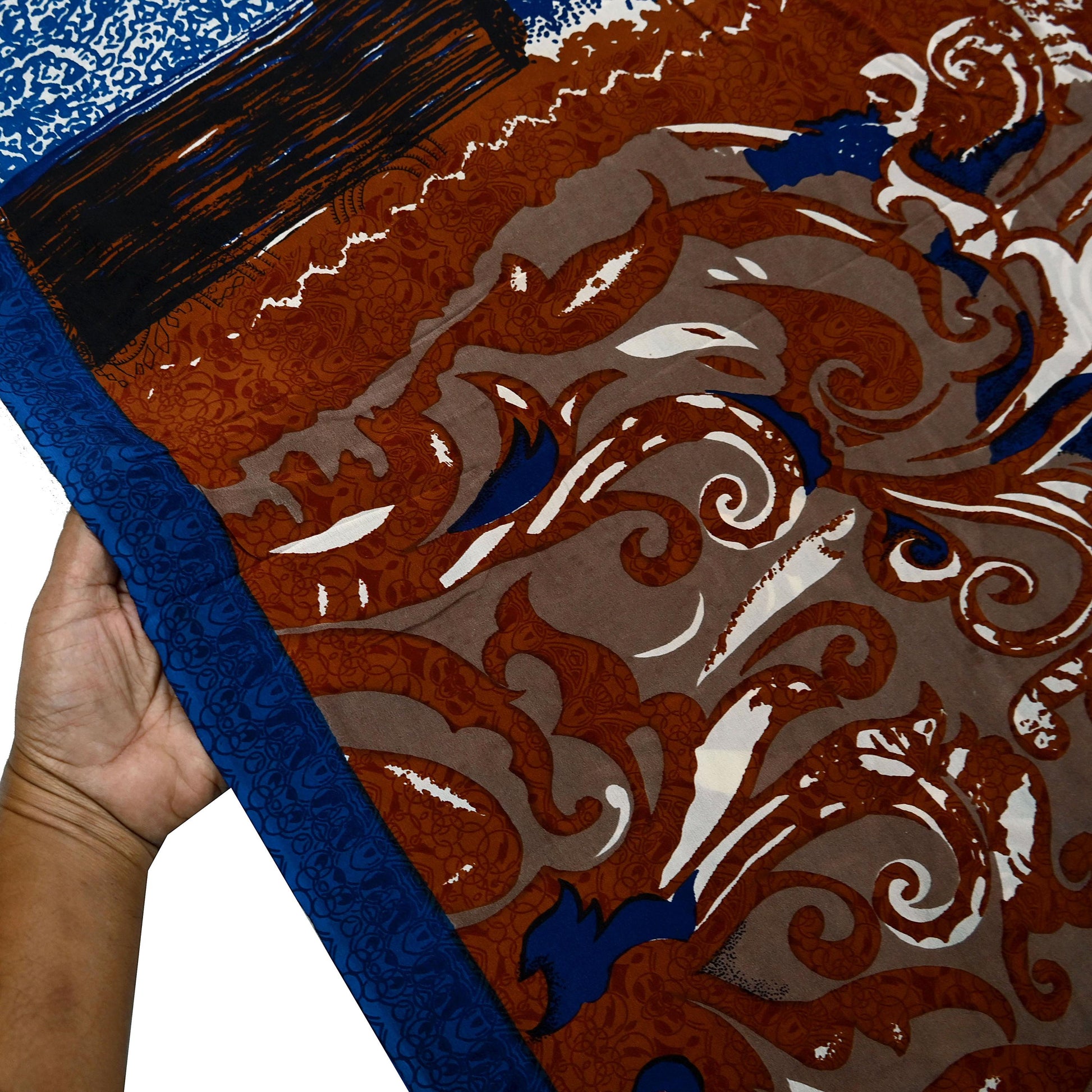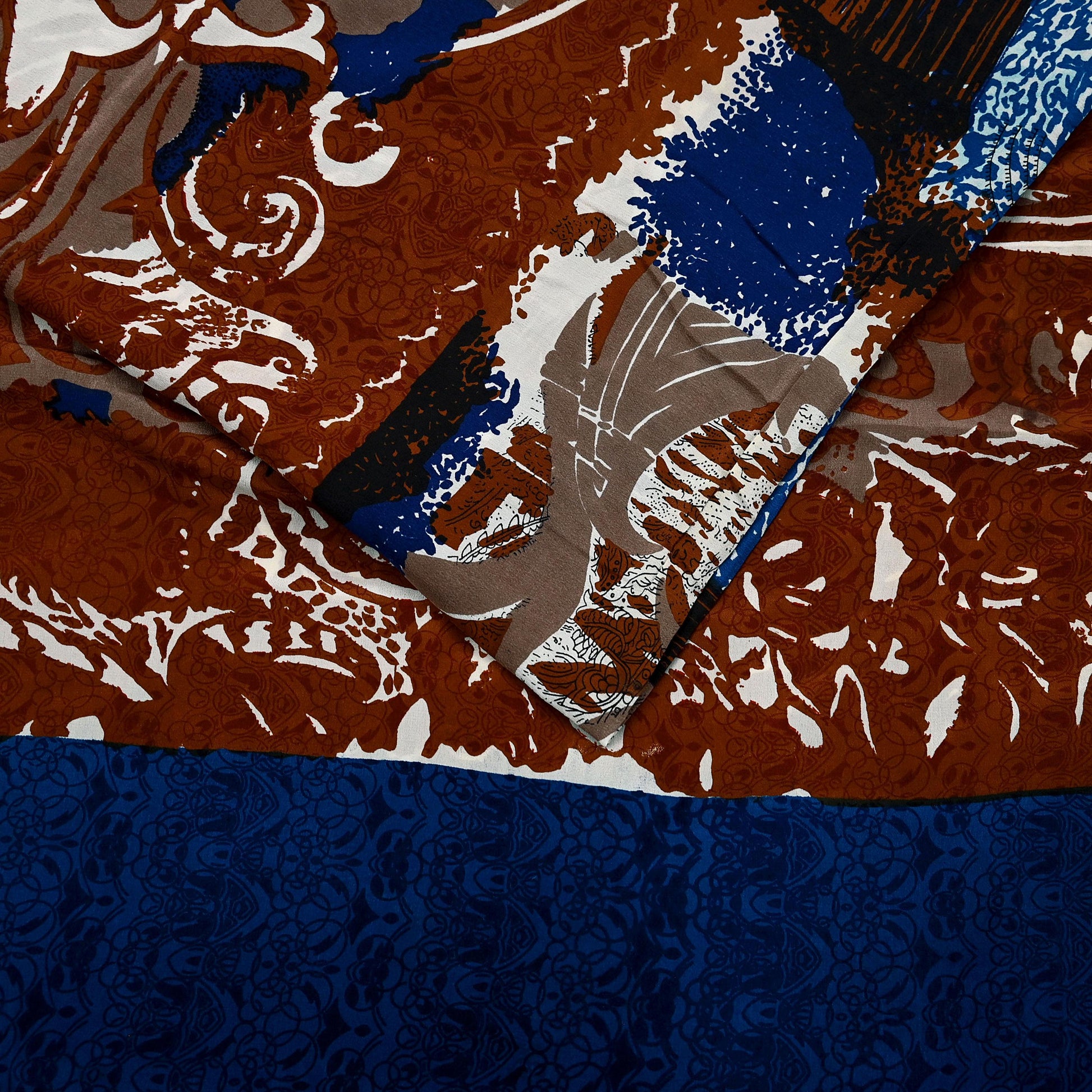 *This vintage Brown & Blue Printed Pure Crepe Silk Saree.