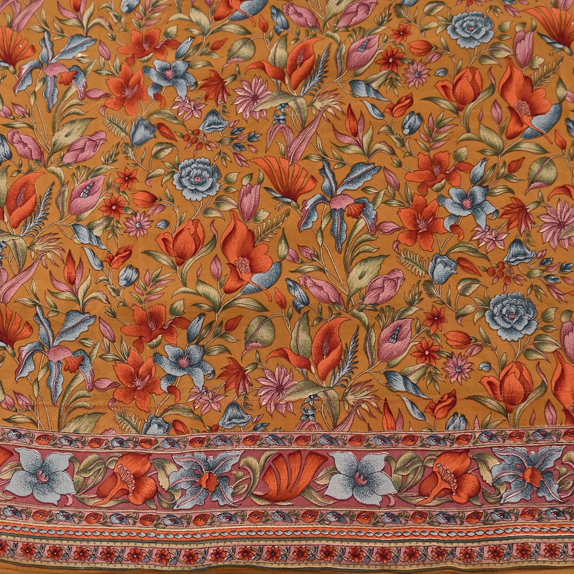 🔹This unique vintage Mustard Colored Printed Pure Crepe Silk Saree Fabric.