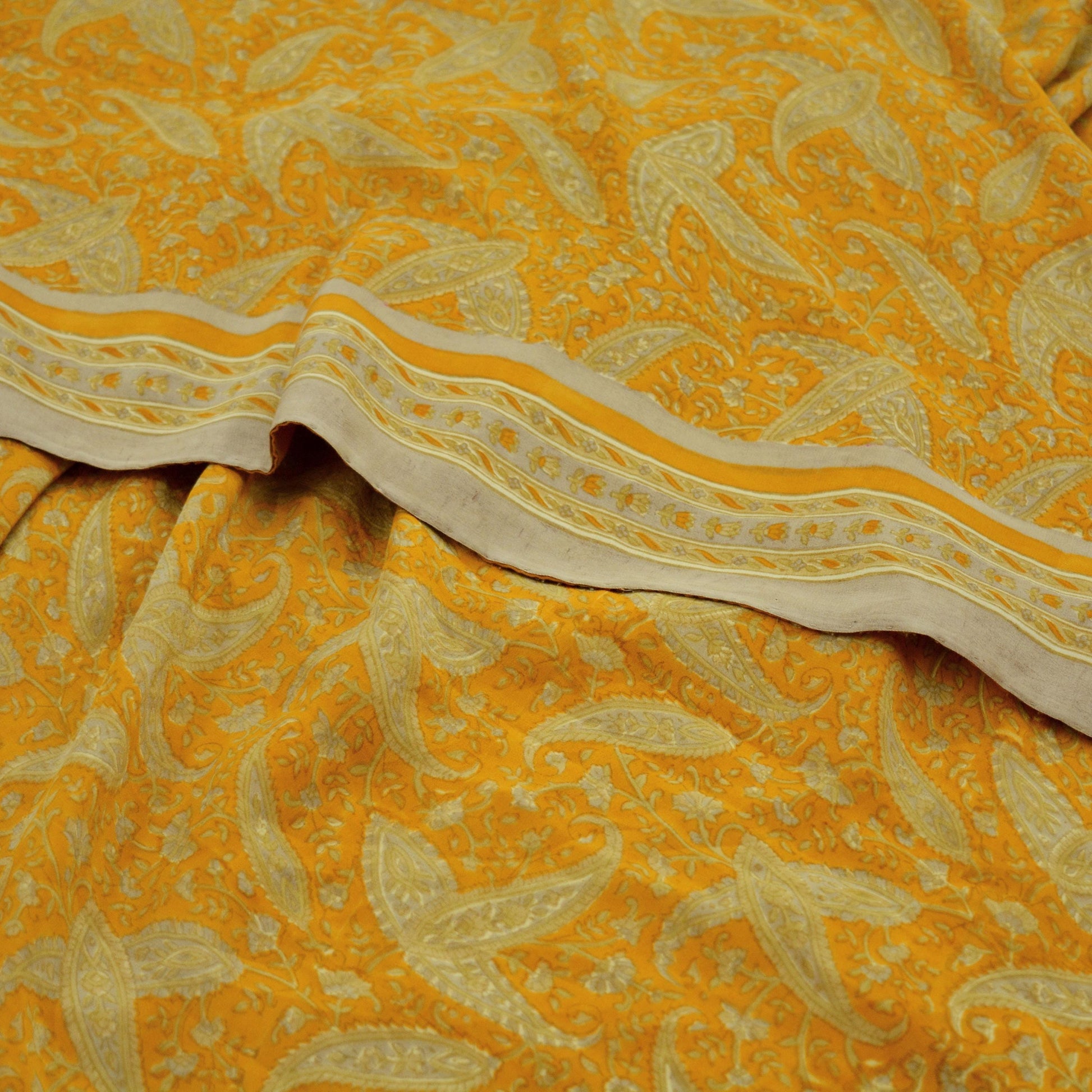*Vintage Mustard Colored Printed Pure Crepe Silk Saree.