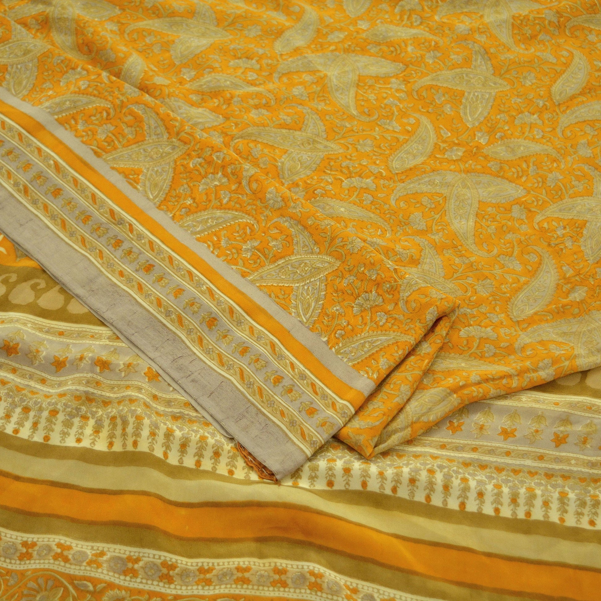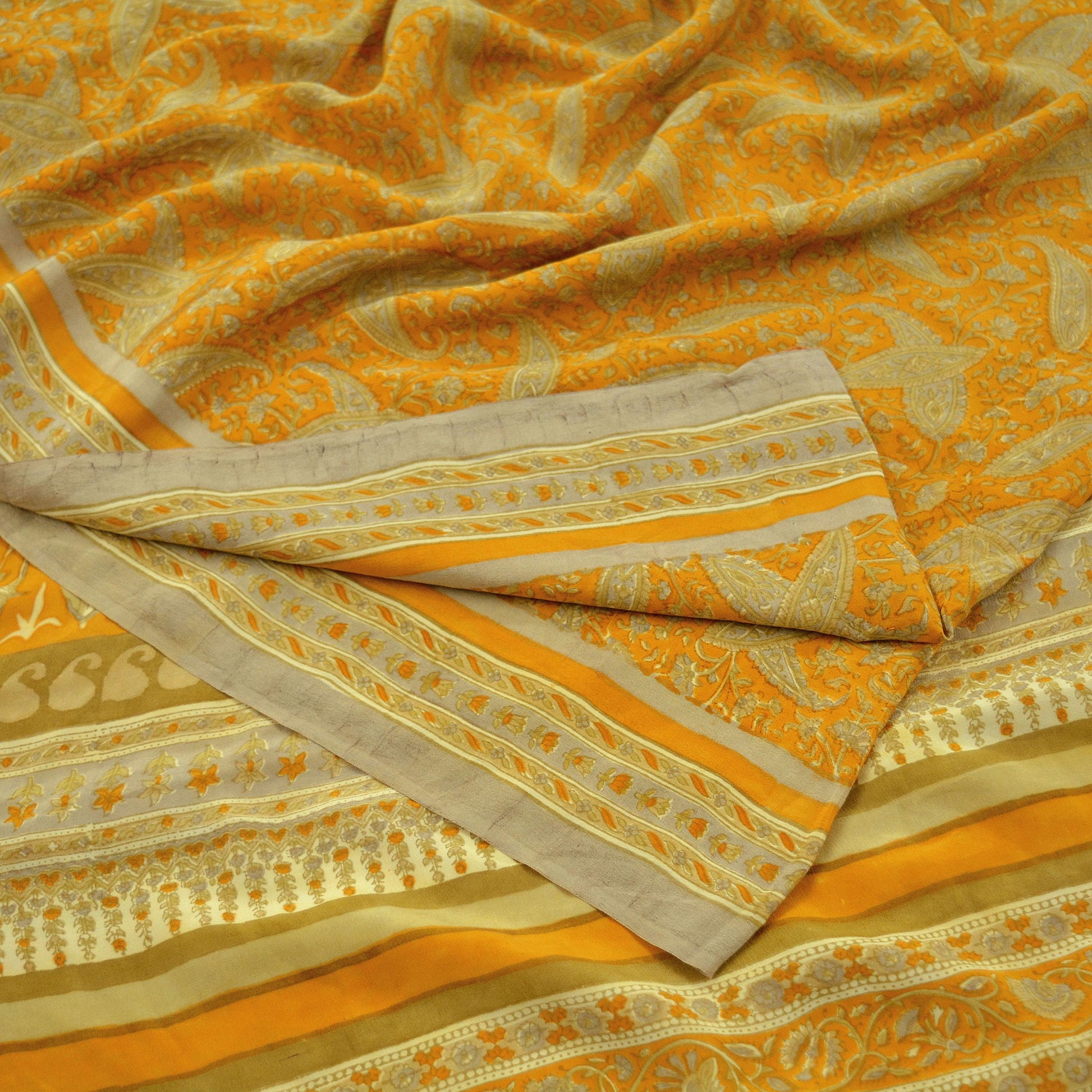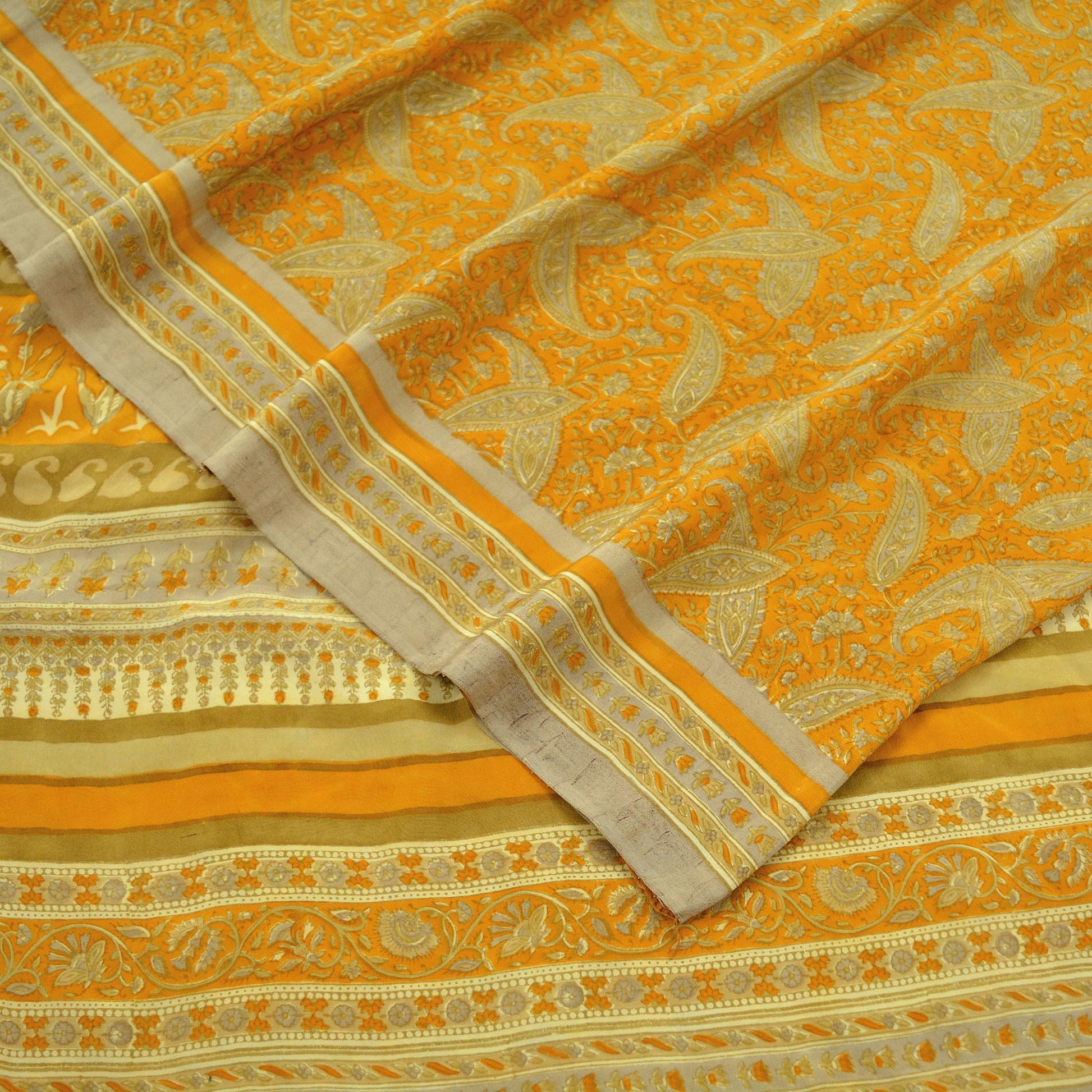 Indian Vintage Sari Mustard Pure Crepe Silk Printed Saree 5yd Sewing Floral Soft Craft Fabric Wrap Dress making Crafting Quilting Designing