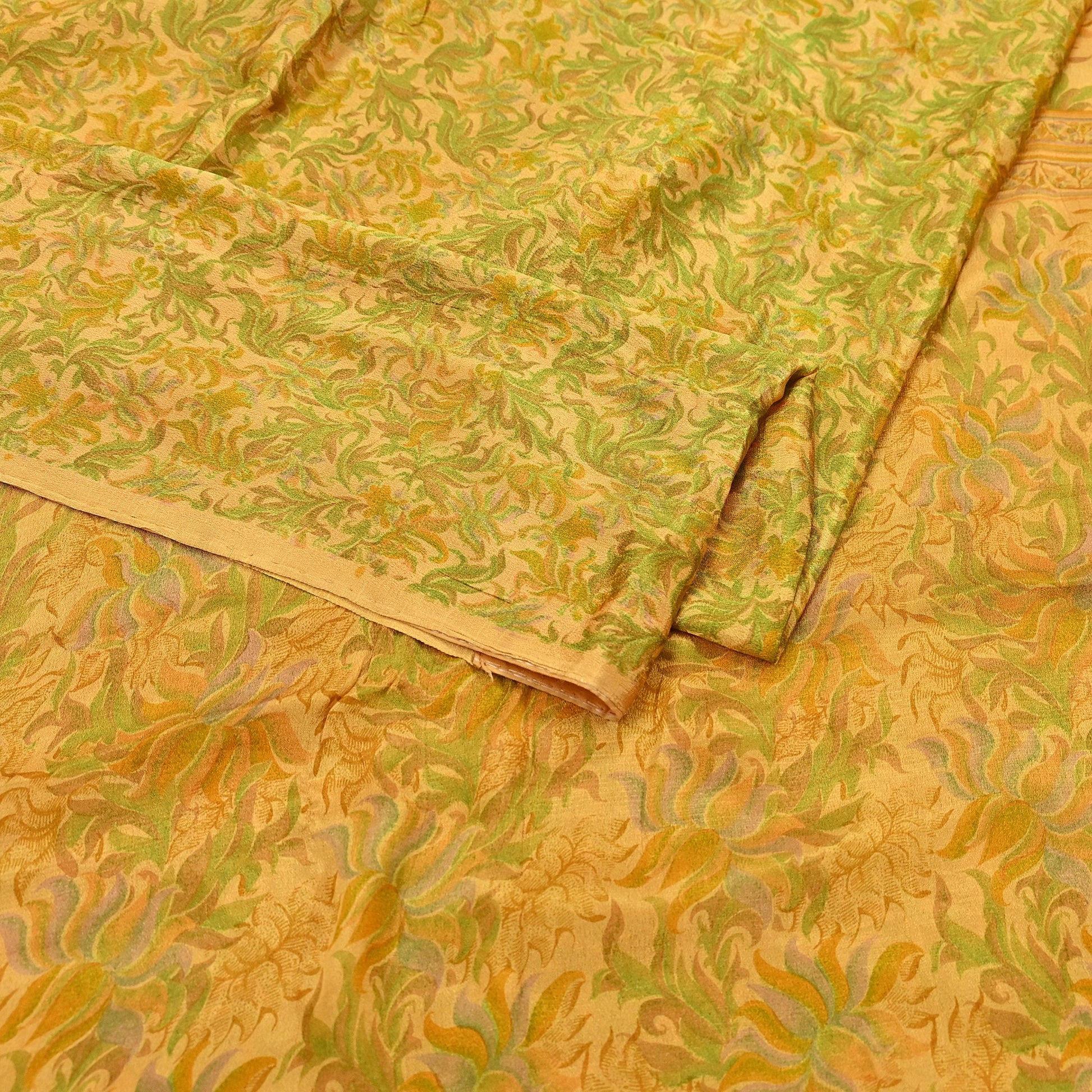 Indian Vintage Sari Mustard Pure Silk Printed Saree Fabric 5yard Sewing Craft Fabric DressMaking Soft Wrap