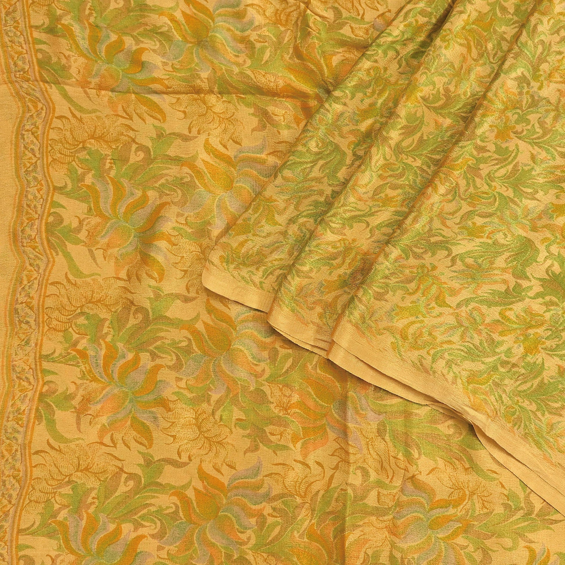 Nice Floral Design With Printed Work On Mustard Color Base Fabric Is Really Enhancing The Beauty Of The Saree.