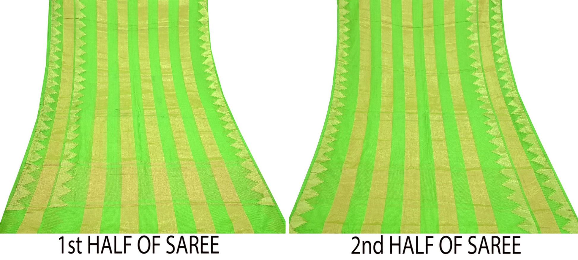 Indian Vintage Sari Nion Green Artificial Silk Hand Woven Sarees 6yd Ethnic Craft Fabric Sewing Dress making Crafting Crafting Quilting