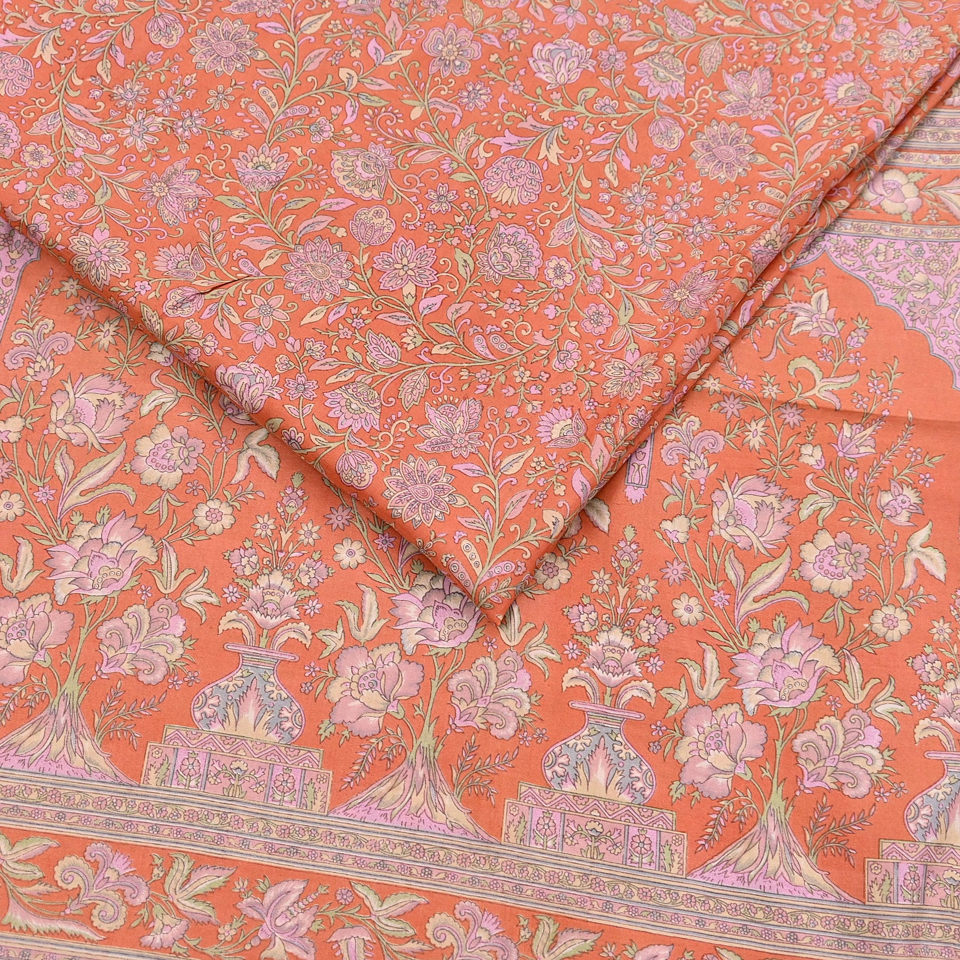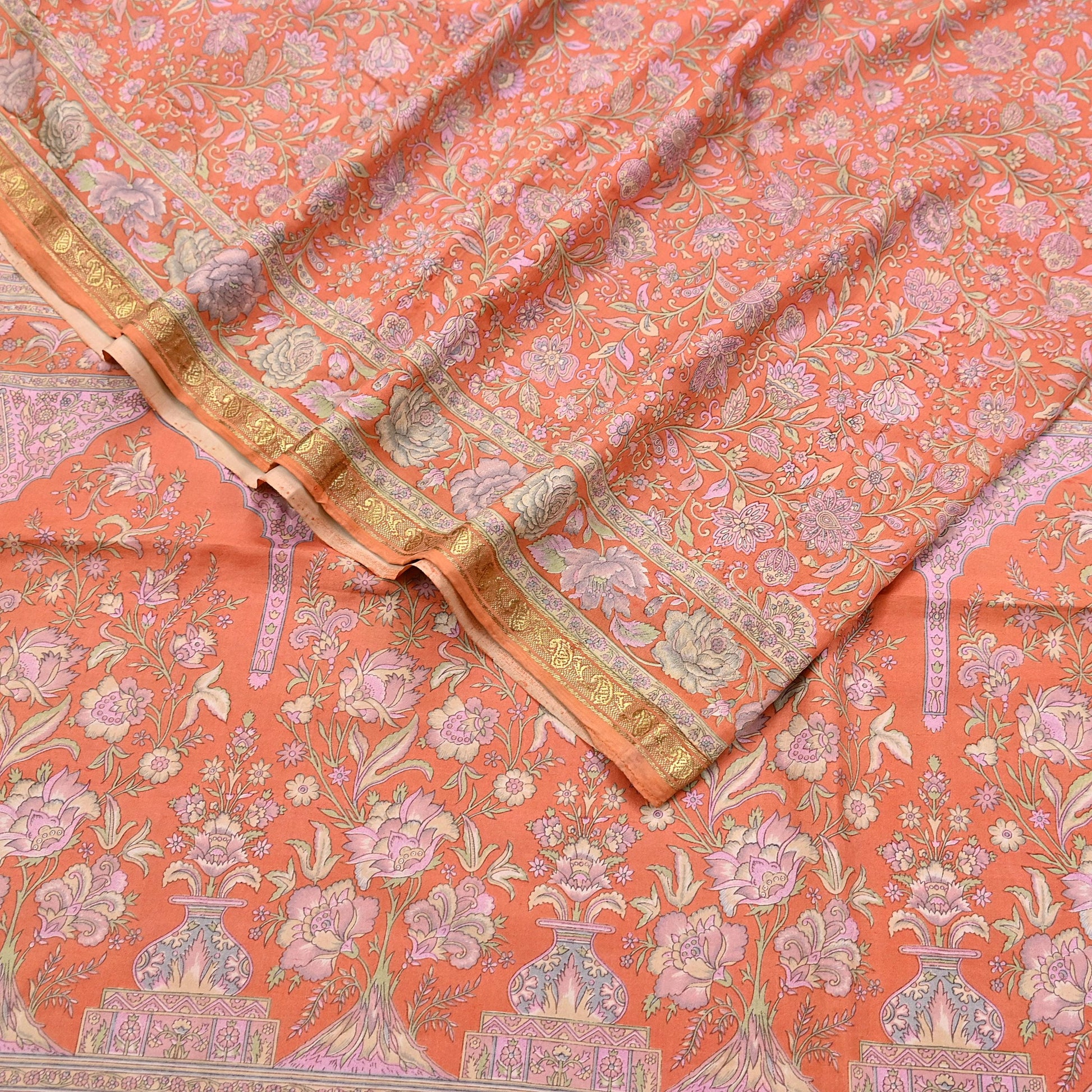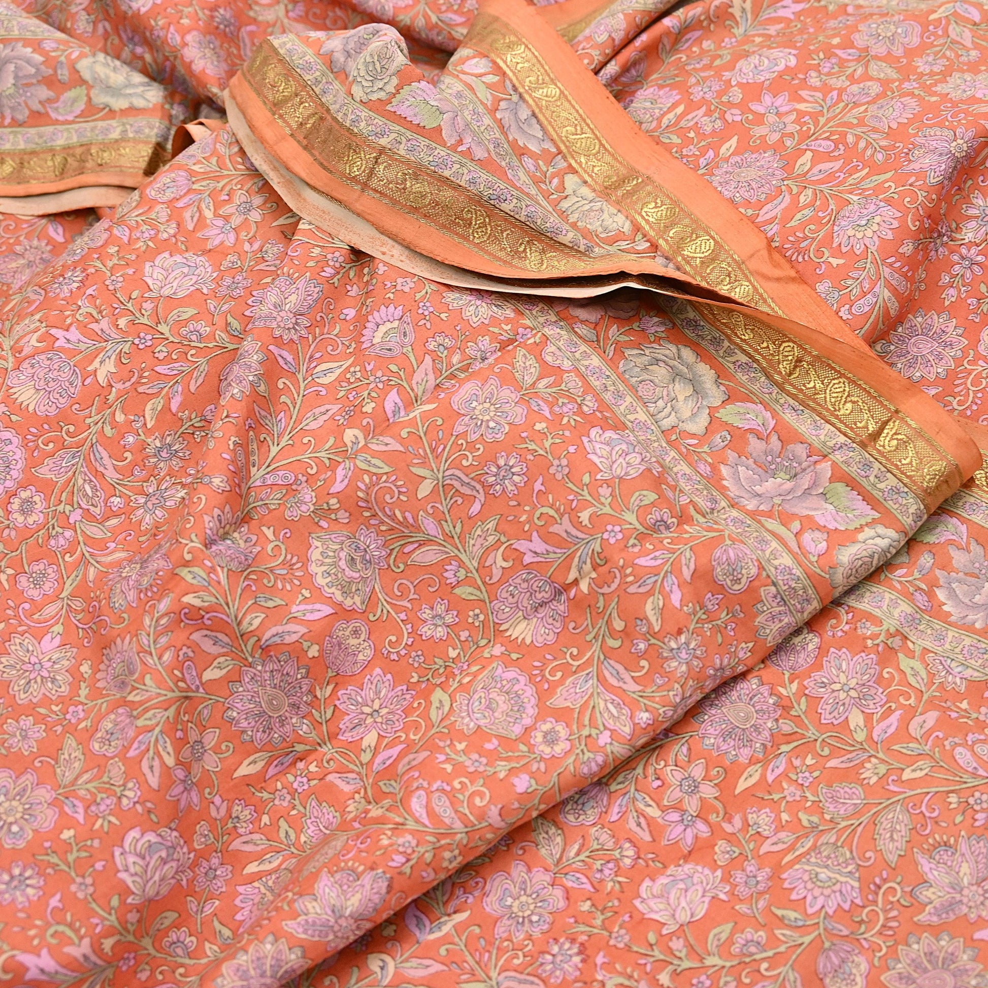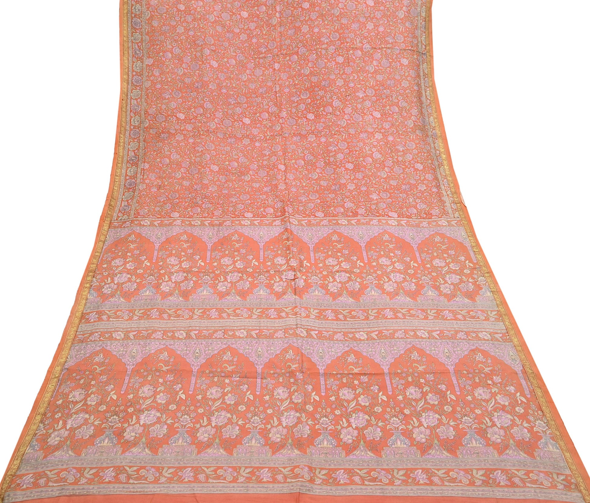 Indian Vintage Sari Orange 100% Pure Silk Printed Saree Craft Fabric 5yd Sewing Dress Making Soft Wrap Paisley Quilting Crafting Upcycle