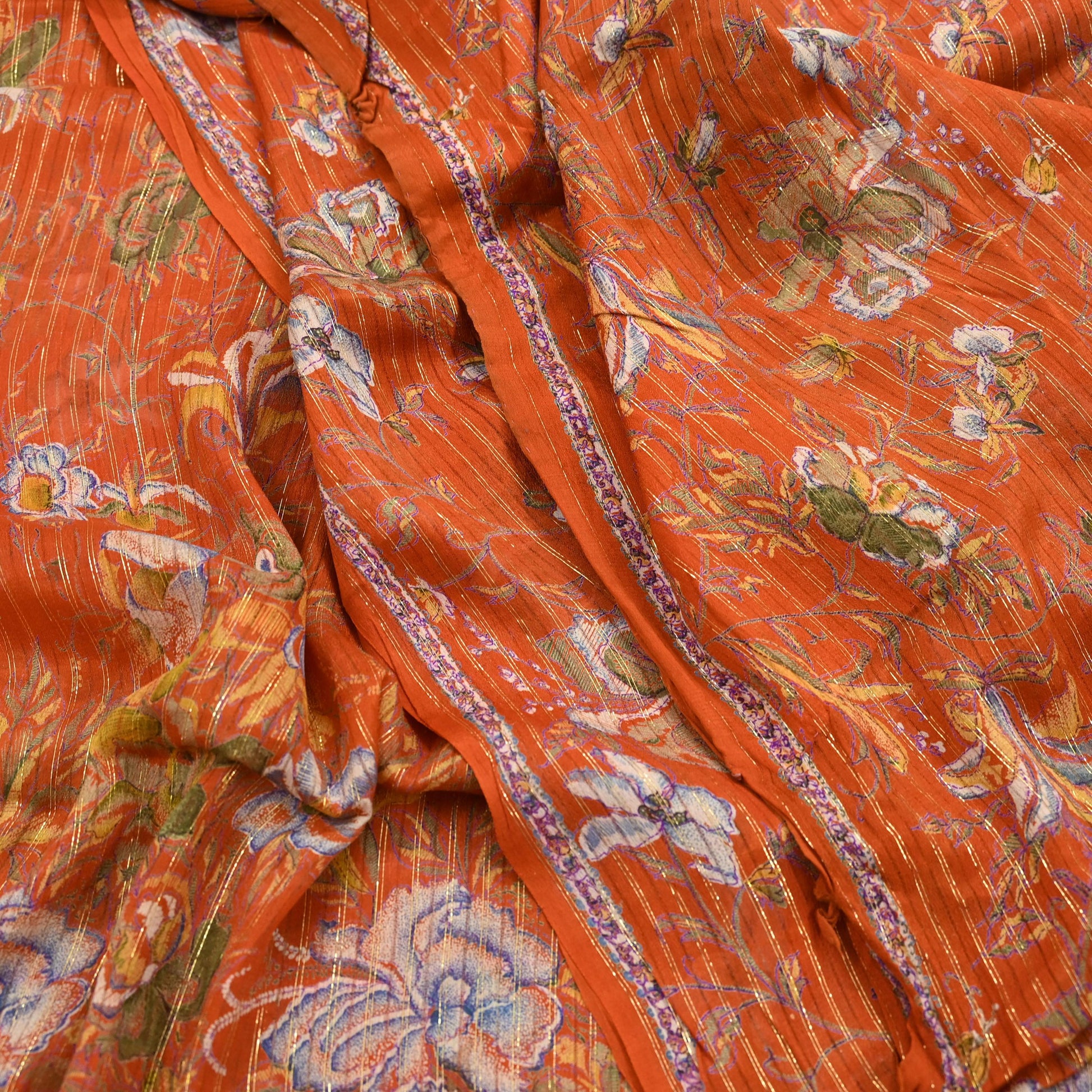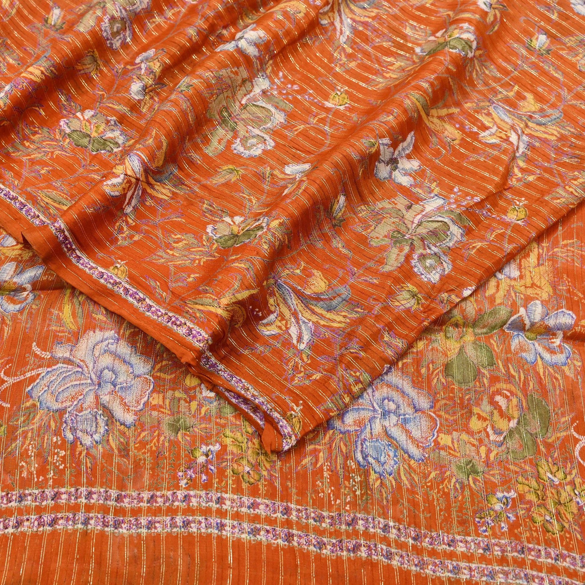 Indian Vintage Sari Orange 100% Pure Silk Printed Sarees 6yd Sewing Craft Fabric Zari Dress Making Soft Wrap Quilting Used Crafting Upcycle