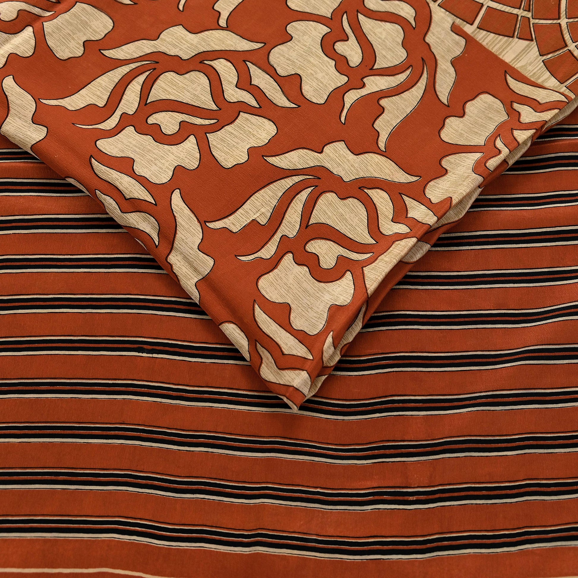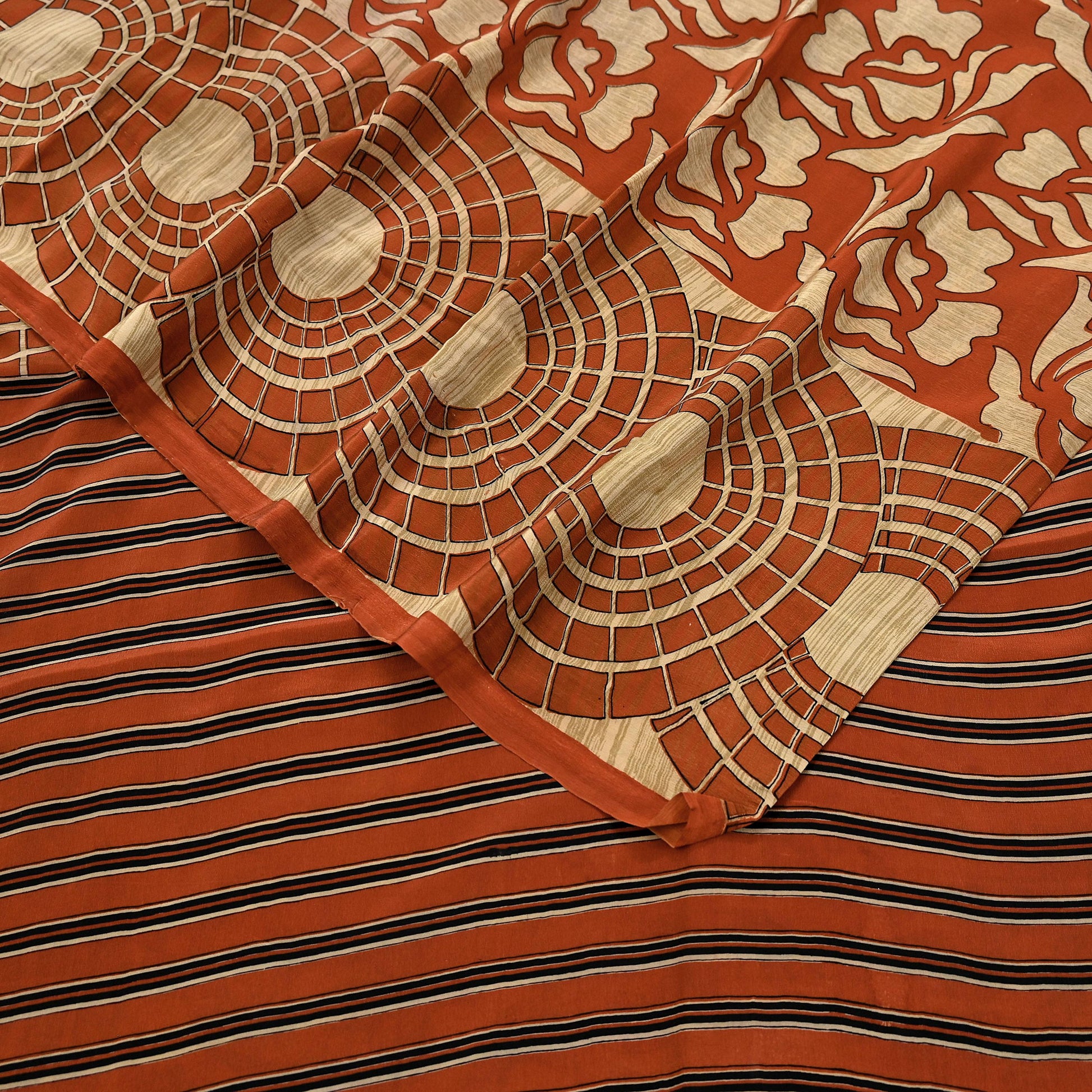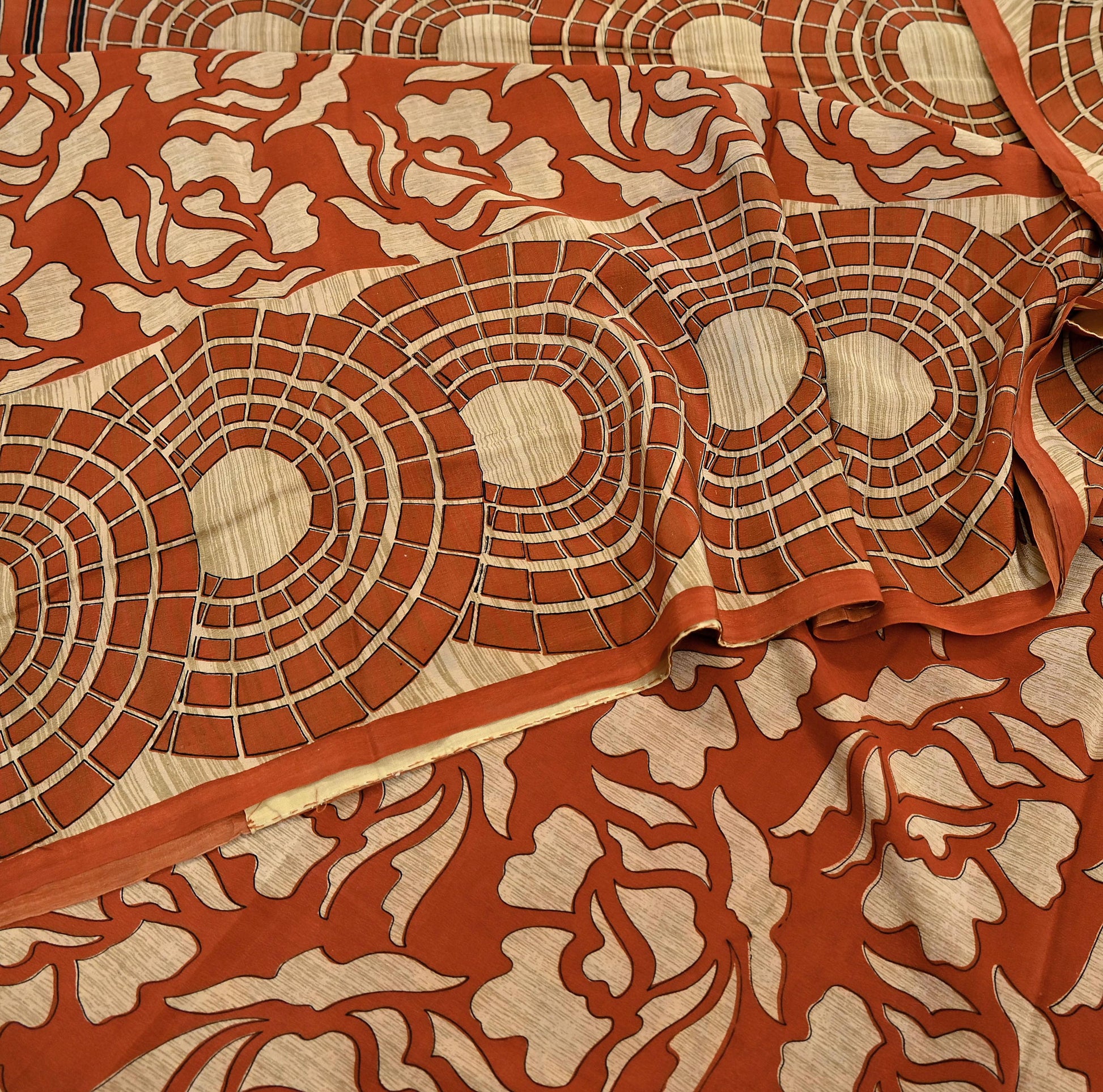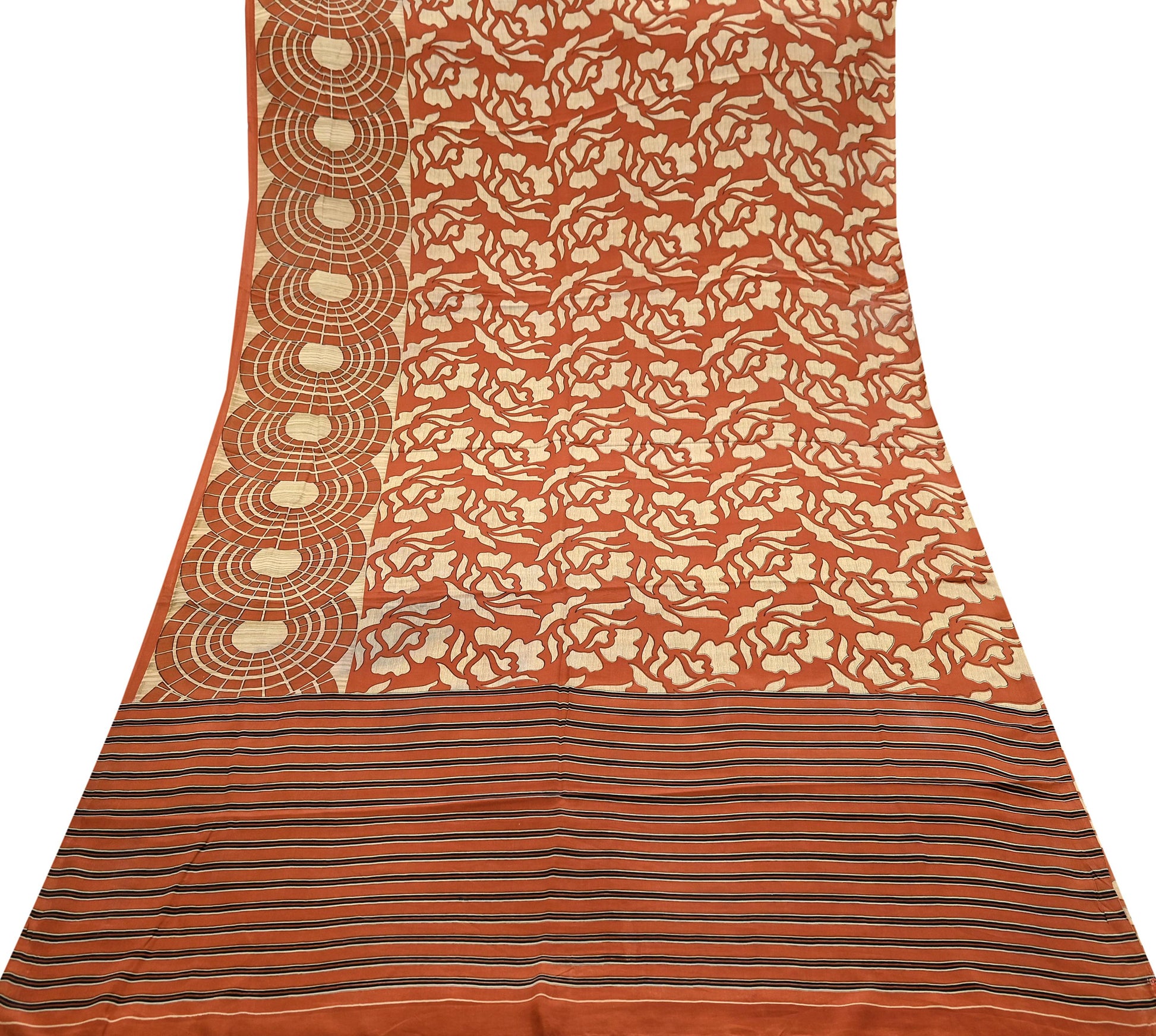 Indian Vintage Sari Orange & Beige Pure Crepe Silk Hand Woven Sarees 6yd Sewing Craft Fabric Dress making Crafting Quilting