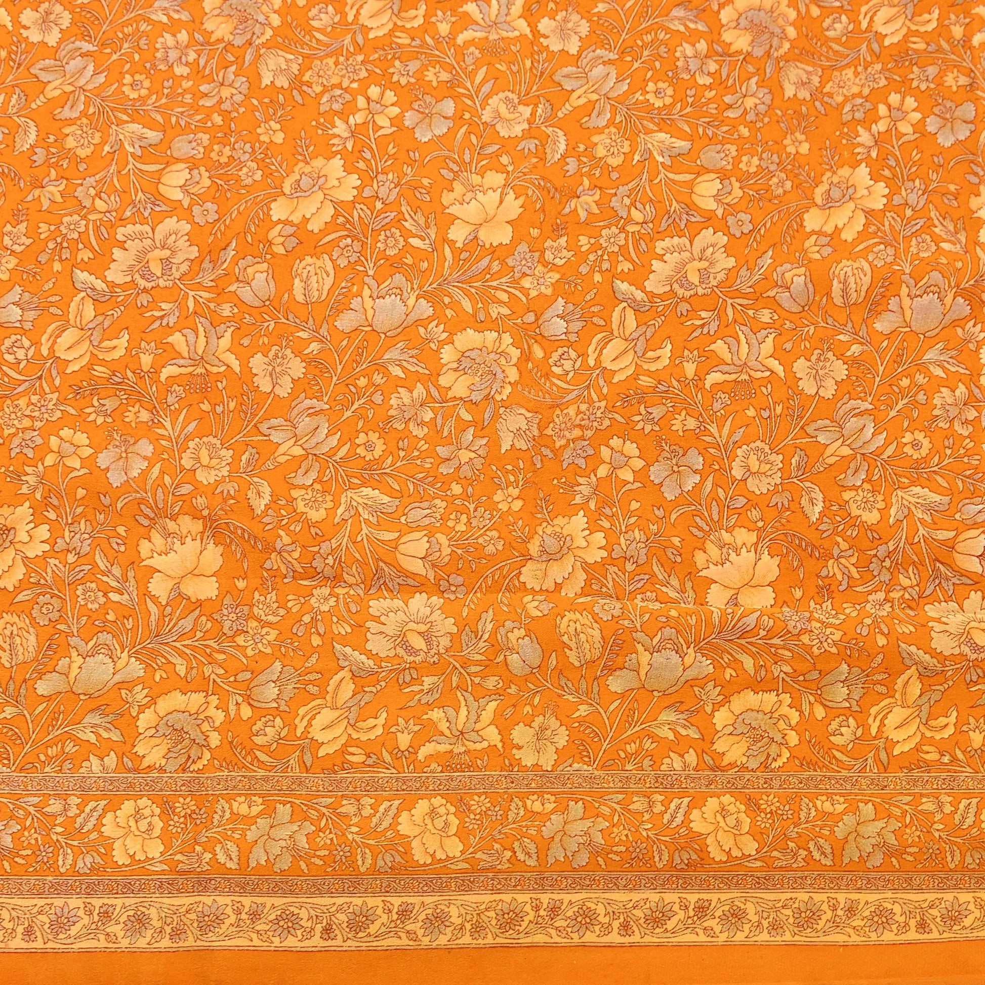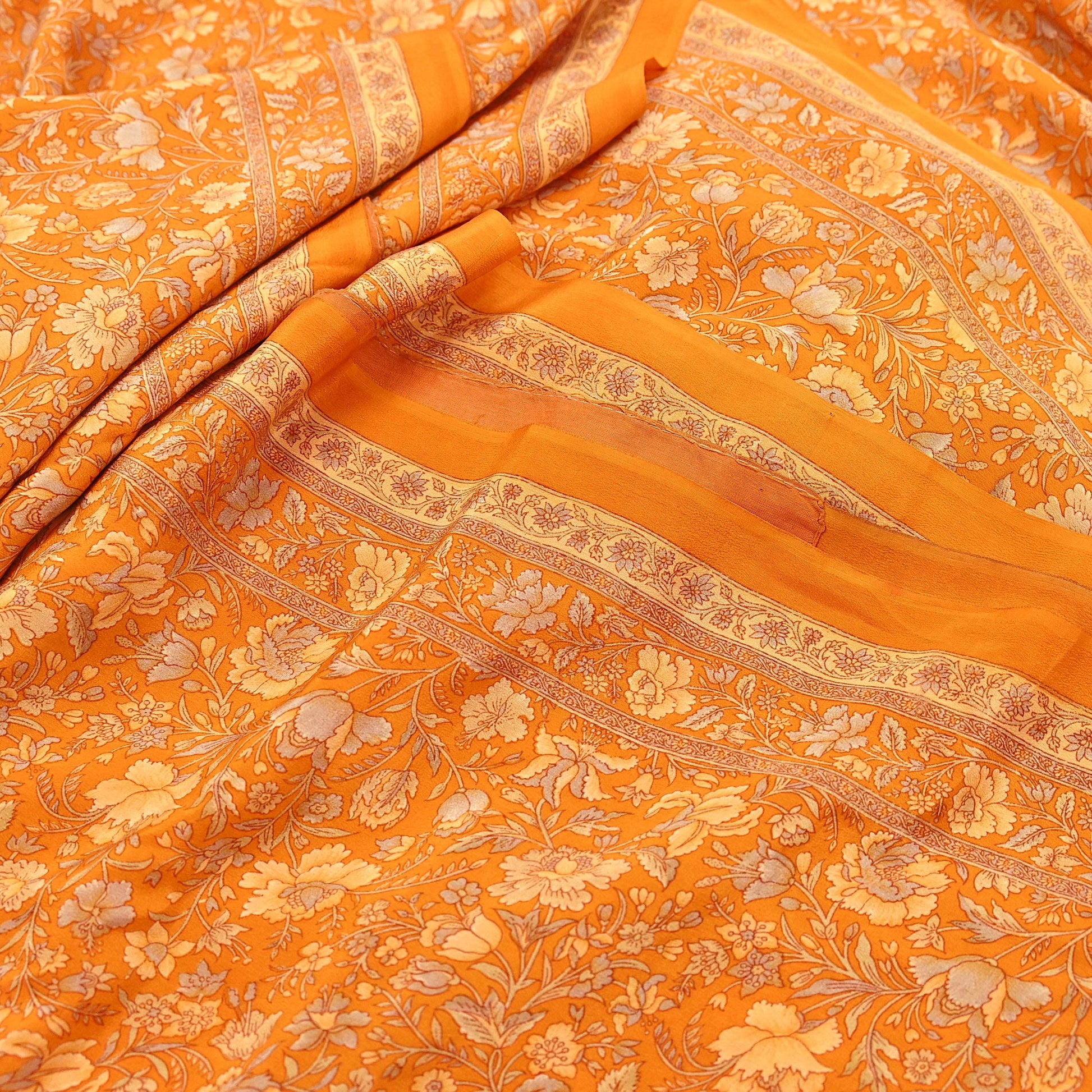 🔹This unique vintage Orange Colored Printed Pure Crepe Silk Saree Fabric.