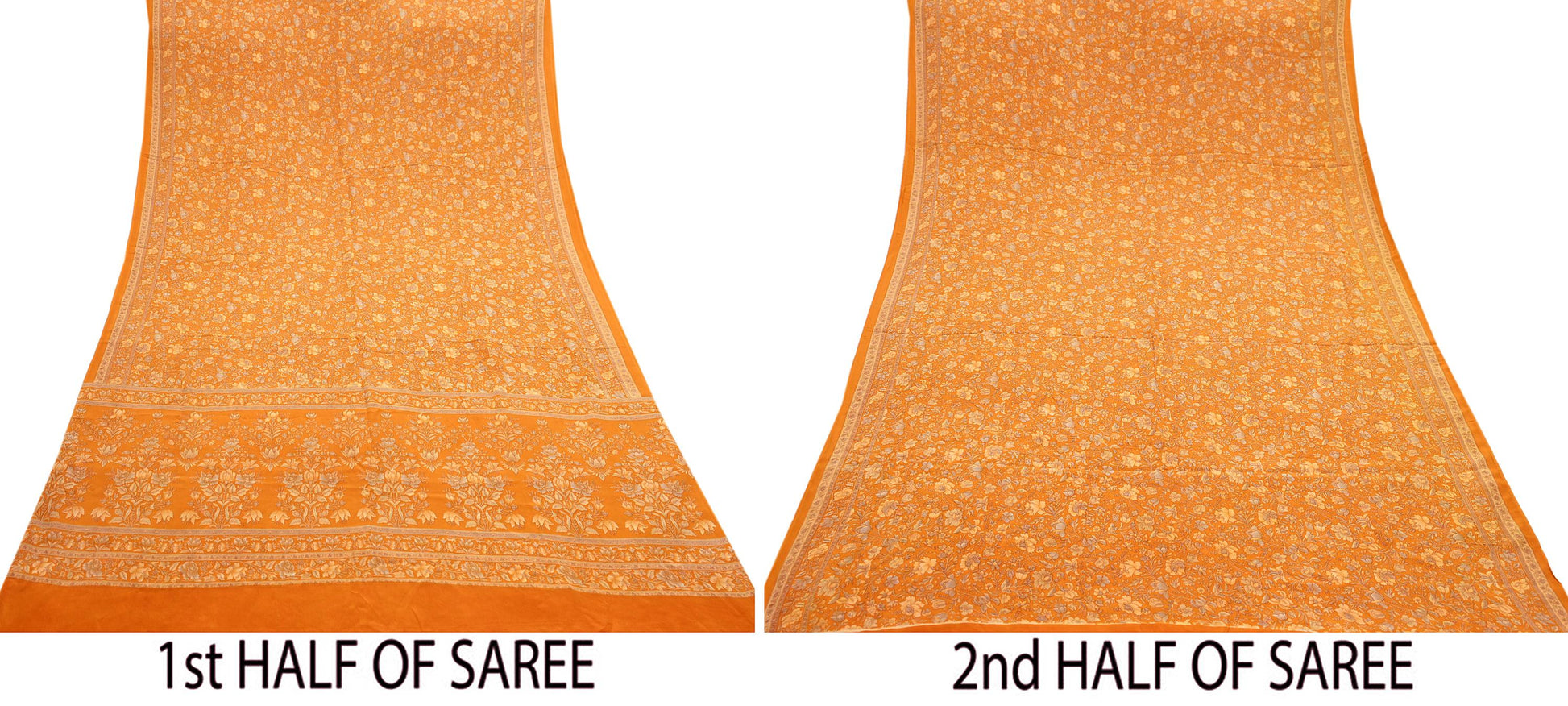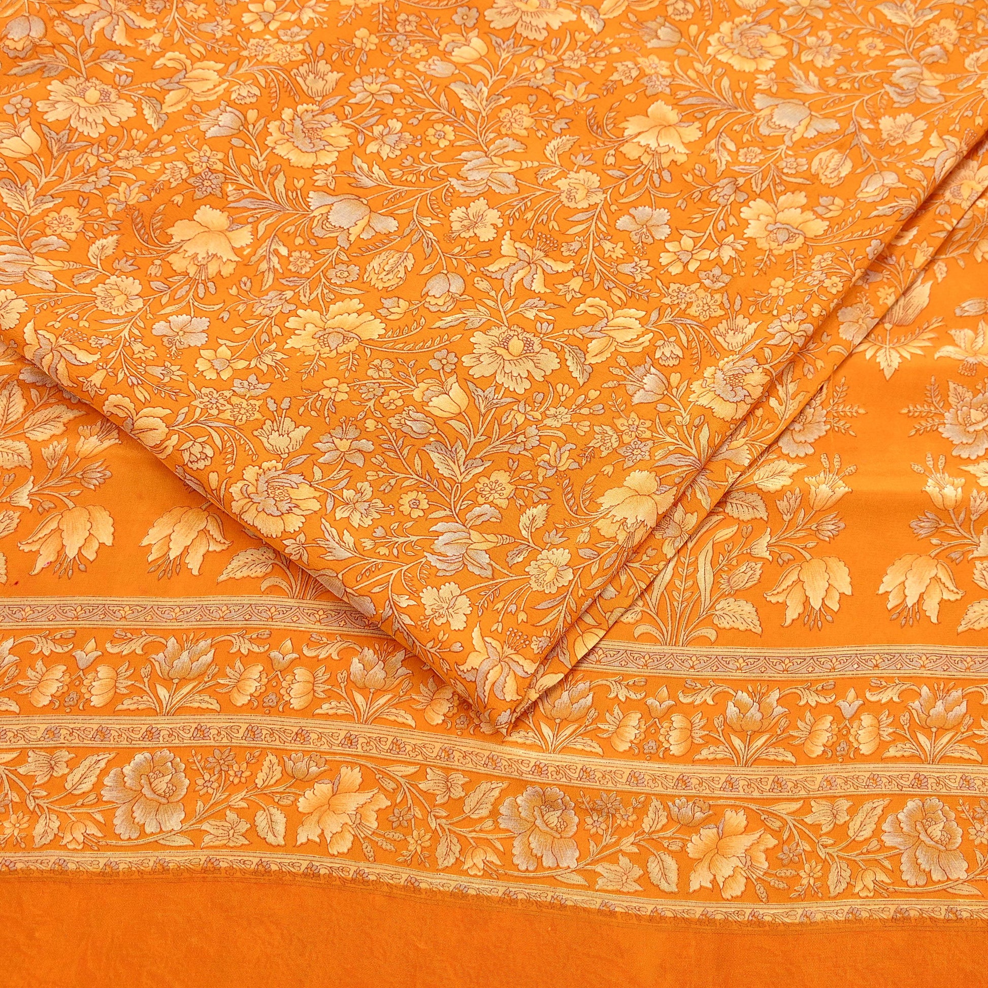 Indian Vintage Sari Orange Pure Crepe Silk Printed Saree 5yard Sewing Quilting Floral Soft Craft Fabric Wrap