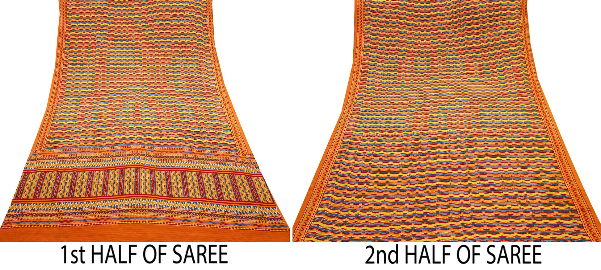 Indian Vintage Sari Orange Pure Crepe Silk Printed Saree 5yd Sewing Floral Soft Craft Fabric Wrap Dress making Quilting Crafting Upcycle