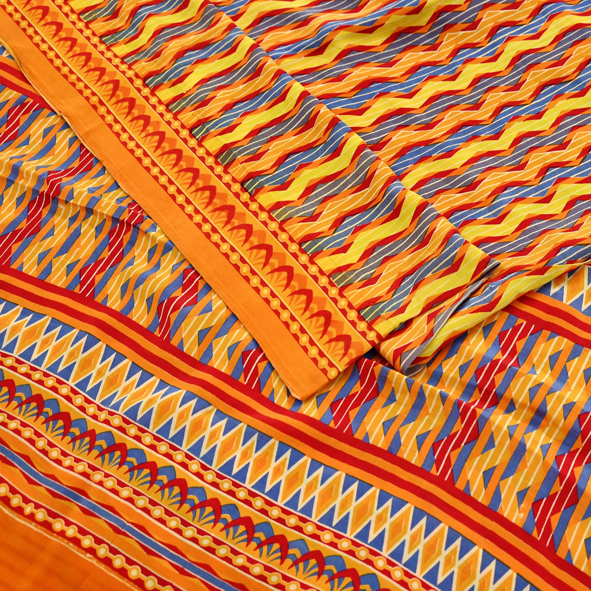 Nice Zigzag & Stripes Design With Printed Work On Orange Color Base Fabric Is Really Enhancing The Beauty Of The Saree.
